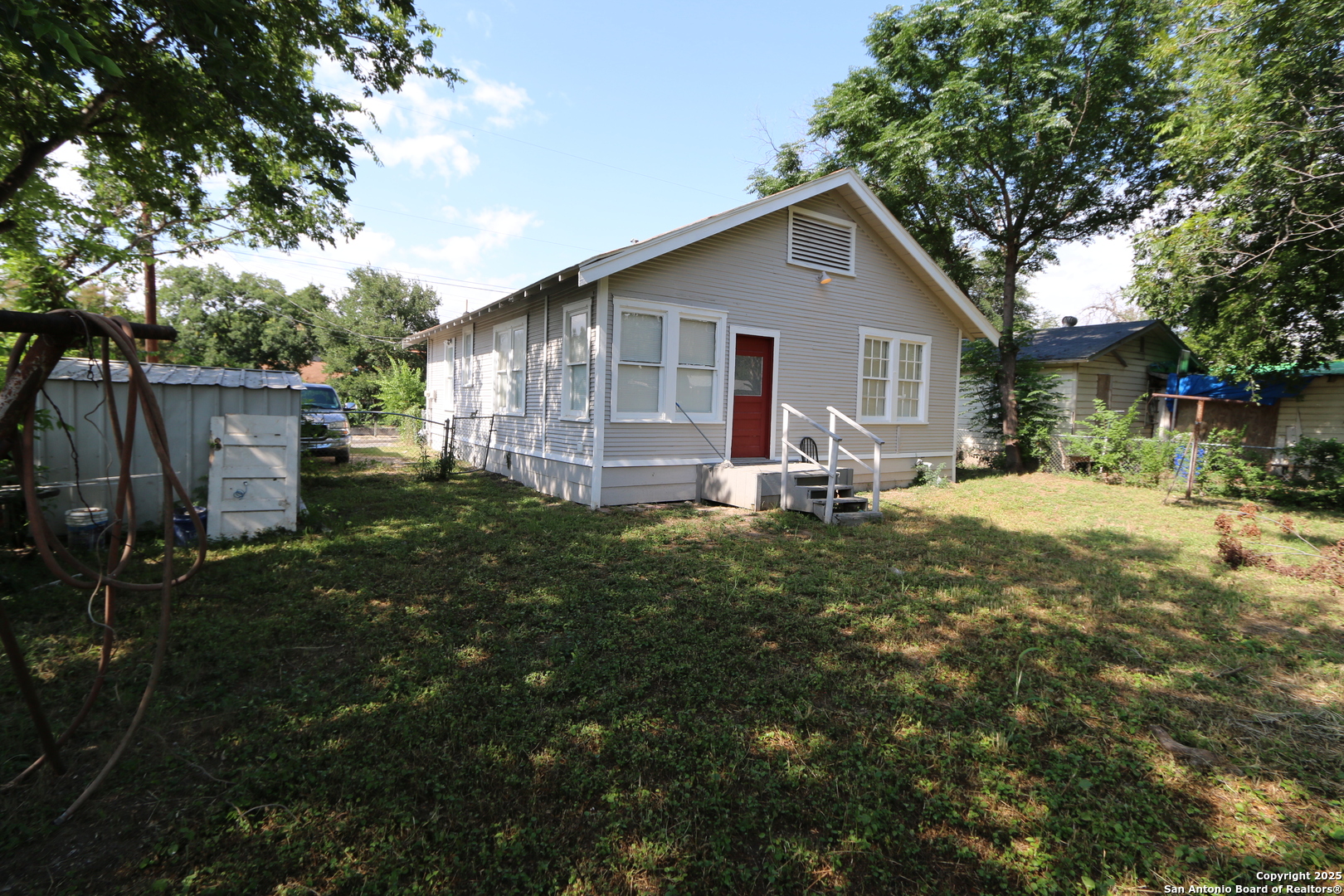 Great Single Story 2 bedroom home in South San Antonio * Spacious Living Room area for all the family fun * Kitchen includes black electric smooth top stove * Laminate wood flooring through out home * A/C Window Units * Backyard includes a small storage shed and side pad parking off the street * Minutes to Joint Base SA Kelly, Downtown San Antonio, Hwy 90 & IH35 * No Survey on File * All Buyers Submitting offers must make appointment to see property with Showingtime prior to making offer to have offer considered, all other offers will not be presented * Seller is not entertaining assignments or owner financing offers.