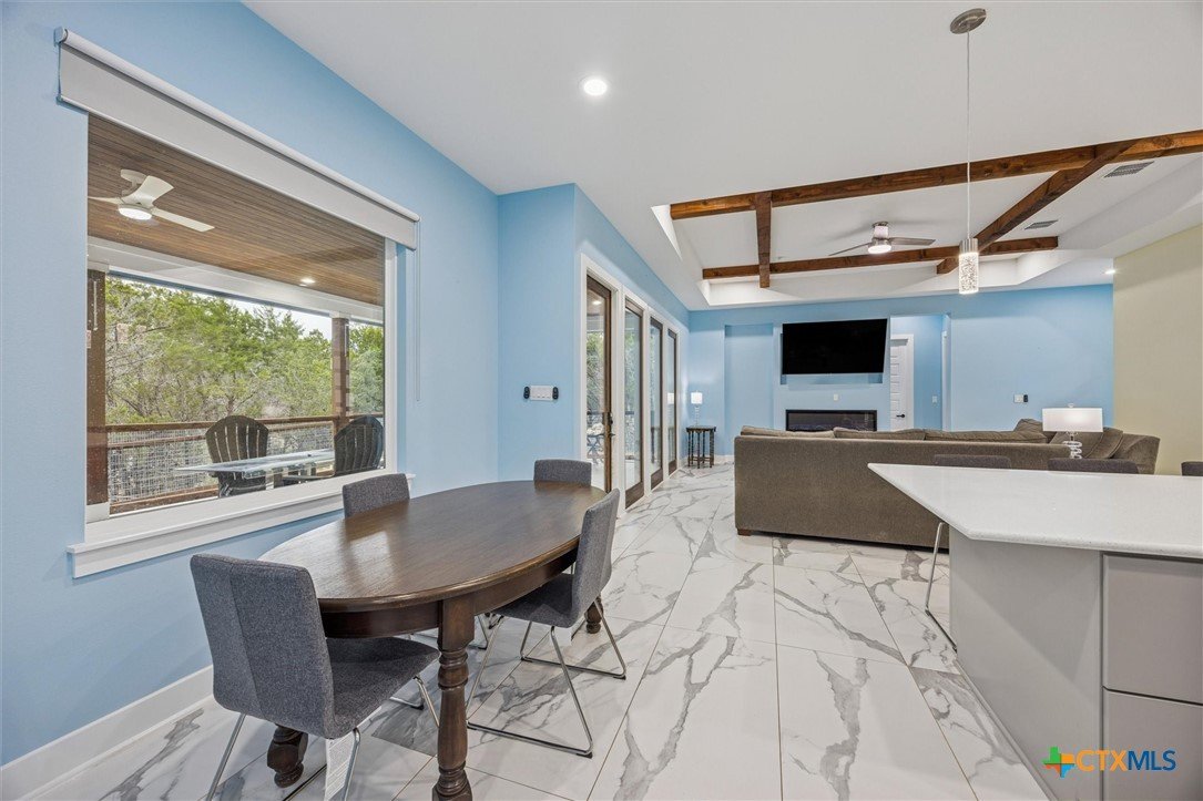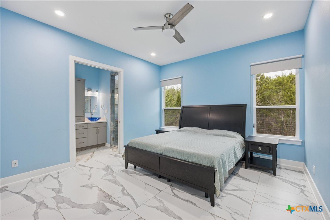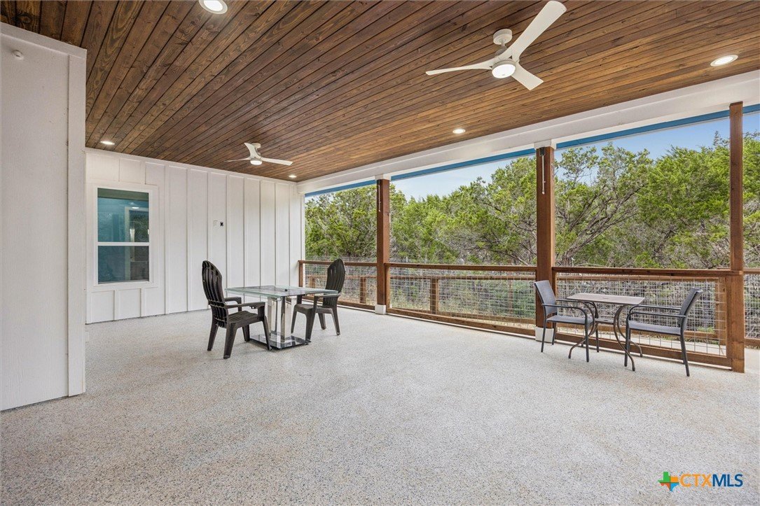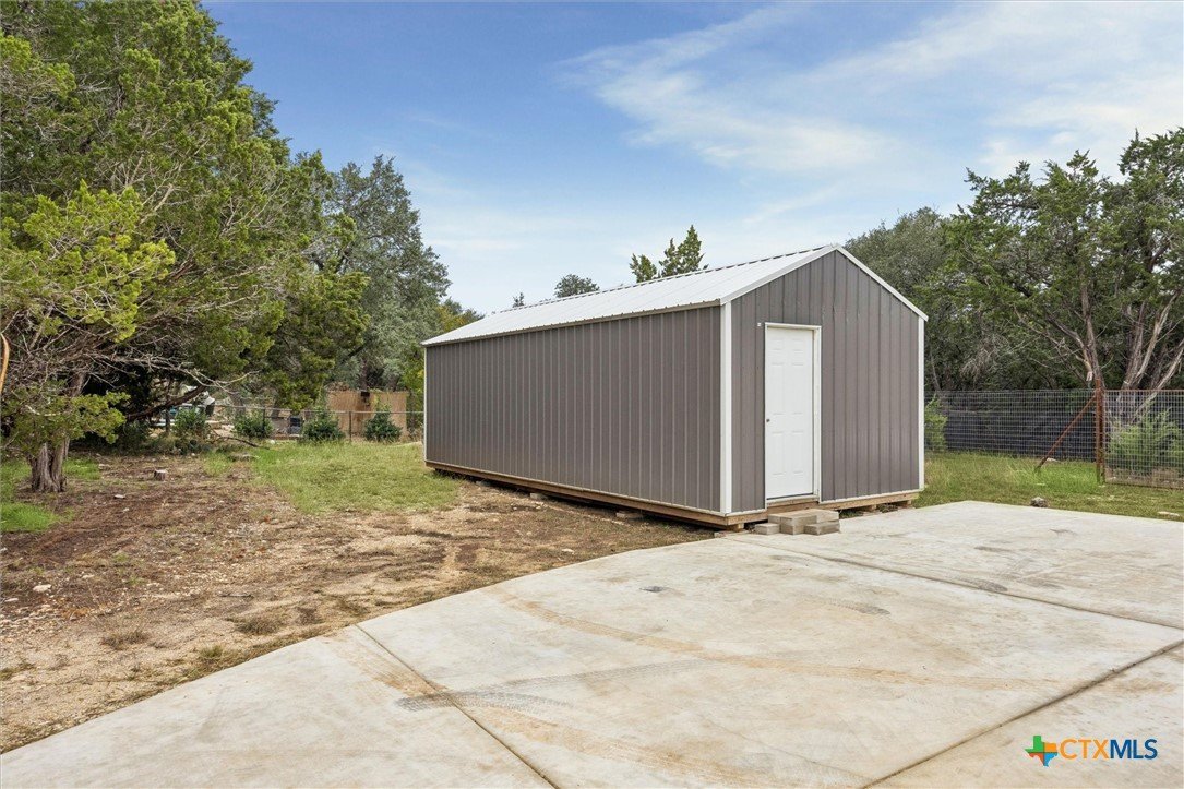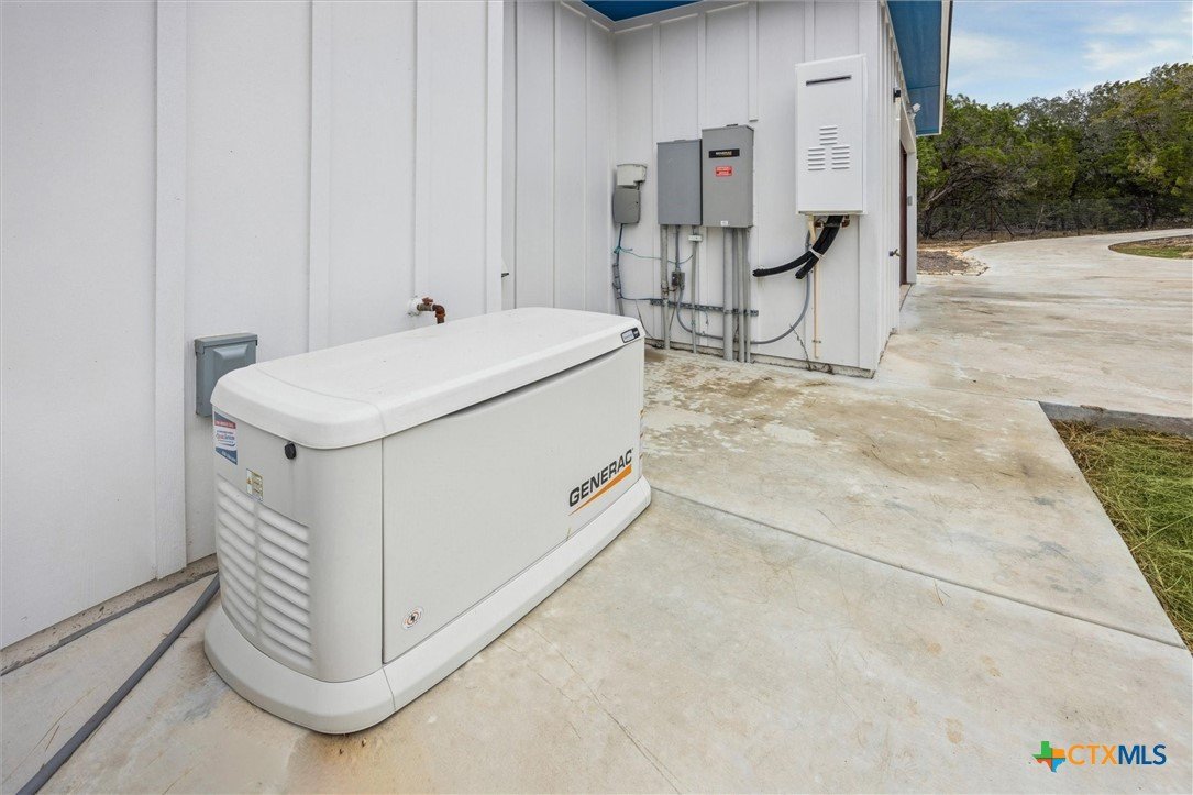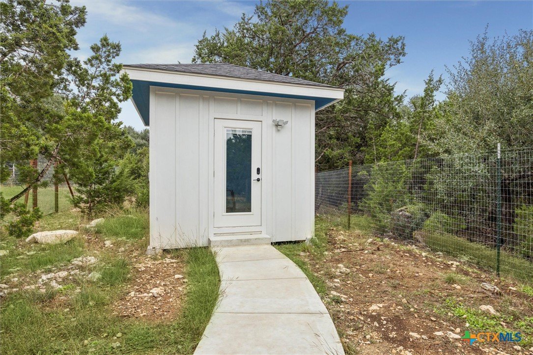 Welcome to a “forever home”. It’s a custom build easily adapted for work-at-home, play-athome, and multi-generational families. There are so many thoughtful features compacted into this 1.90 acres. Property is fenced with a smaller yard inside designed for pets (anyone else see a mini-cow in their future?). There is also a large exterior storage shed/shop and a “she shed” office space with pier/beam foundation, secure access, power and a window unit. All interior doors have secure access handles. The living room features seamless energy efficient floor to ceiling windows and overlooks a private, ADA accessible composite deck. The property features a 250-gallon propane tank, propane tankless waterheater and generator whole-home power backup. The 2-car garage also features epoxy flooring, and mini-split to keep it comfortable, along with the water softener and stairs leading to the decked attic. The whole home is spray foam insulated for comfort and energy efficiency. The lot is heavily treed, offering shade on those hot Texas days with a tall glass of tea, watching the deer free range in your backyard. The primary suite leads directly to full sized utility room and hidden bathroom. The epoxy garage also features a staircase that leads to a decked loft area above, perfect for storage. The kitchen offers so many modern touches including soft close custom cabinetry and a gas stove. There’s no HOA and the property currently backs up to a 200 acre private ranch. There is so much more to discover and you really need to see the space to fully appreciate and discover all it has to offer.