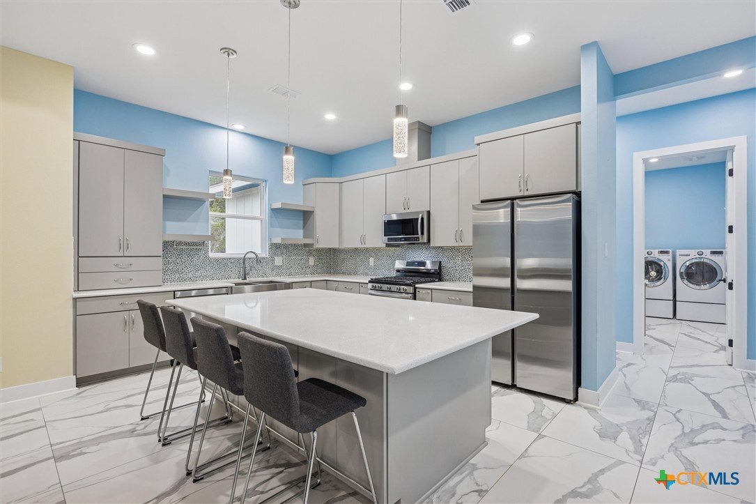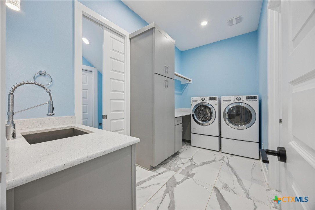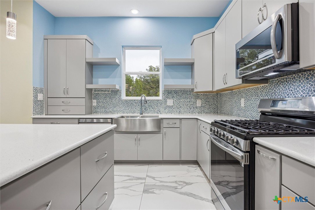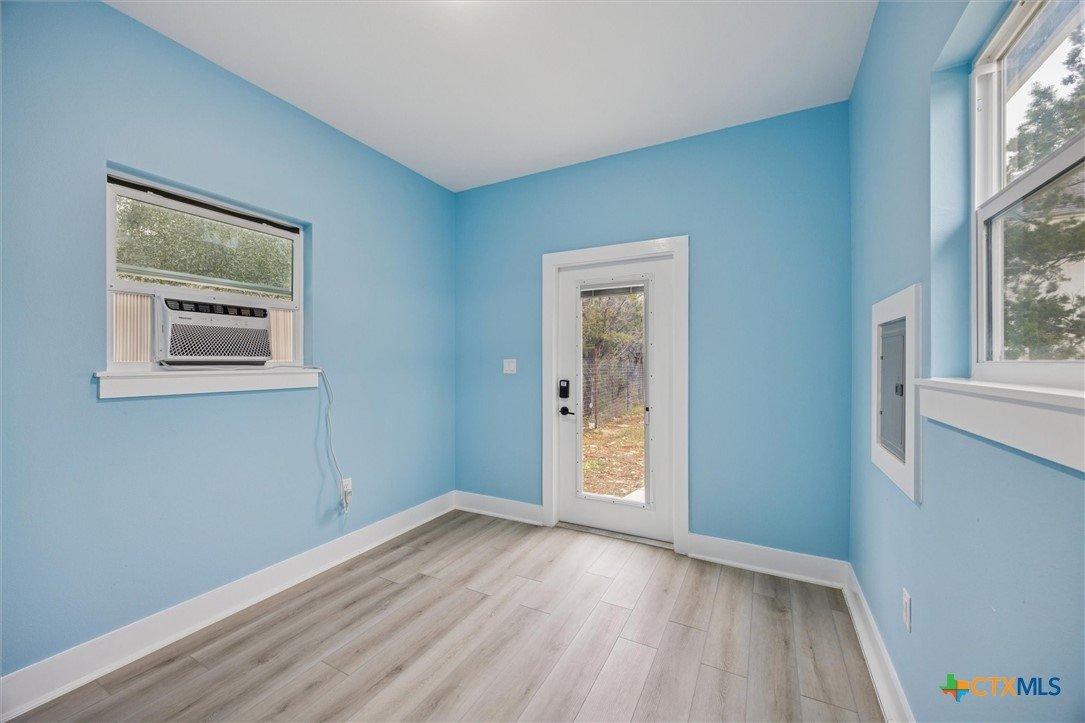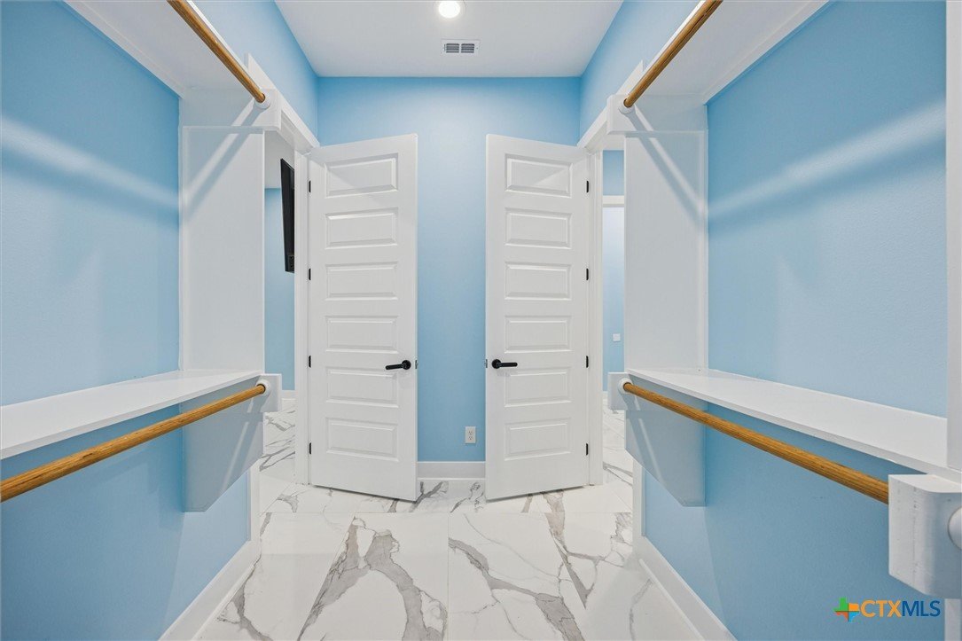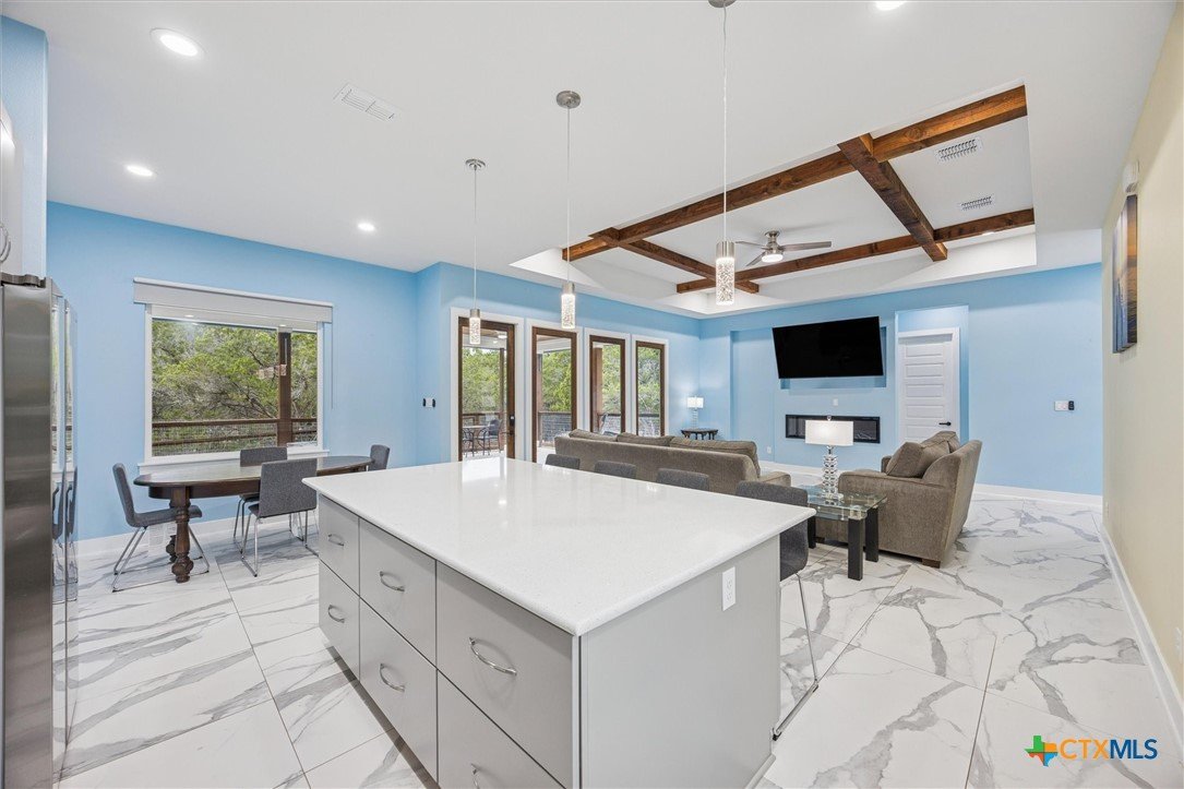 Welcome to a “forever home”. It’s a custom build easily adapted for work-at-home, play-athome, and multi-generational families. There are so many thoughtful features compacted into this 1.90 acres. Property is fenced with a smaller yard inside designed for pets (anyone else see a mini-cow in their future?). There is also a large exterior storage shed/shop and a “she shed” office space with pier/beam foundation, secure access, power and a window unit. All interior doors have secure access handles. The living room features seamless energy efficient floor to ceiling windows and overlooks a private, ADA accessible composite deck. The property features a 250-gallon propane tank, propane tankless waterheater and generator whole-home power backup. The 2-car garage also features epoxy flooring, and mini-split to keep it comfortable, along with the water softener and stairs leading to the decked attic. The whole home is spray foam insulated for comfort and energy efficiency. The lot is heavily treed, offering shade on those hot Texas days with a tall glass of tea, watching the deer free range in your backyard. The primary suite leads directly to full sized utility room and hidden bathroom. The epoxy garage also features a staircase that leads to a decked loft area above, perfect for storage. The kitchen offers so many modern touches including soft close custom cabinetry and a gas stove. There’s no HOA and the property currently backs up to a 200 acre private ranch. There is so much more to discover and you really need to see the space to fully appreciate and discover all it has to offer.