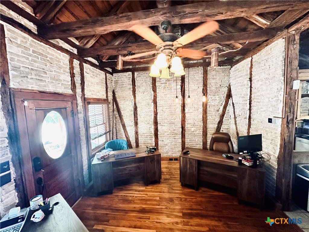 Step into a world of timeless charm and history with this exquisite 1845 single-family home located in the heart of downtown New Braunfels. This one-of-a-kind property is a true gem, showcasing the beauty and craftsmanship of a bygone era while offering the modern conveniences of today. As you approach the home, you'll be captivated by its stunning exterior, featuring original brick and cedar post walls that have stood the test of time. Step inside, and you'll be greeted by the warm embrace of hardwood floors and shiplap interior walls, creating an inviting and cozy atmosphere that pays homage to its historical roots. 750 sq ft of livable space and a 0.09-acre lot, this charming abode offers the perfect blend of comfort and convenience. The single bedroom and bathroom provide a comfortable living space, while the open kitchen/family room combo creates a seamless flow ideal for entertaining guests or enjoying quality family time. Beyond its captivating interior, this property boasts an unbeatable location, situated just a half-mile from the vibrant downtown area. Imagine strolling along the renowned Comal River, exploring the famous Schlitterbahn waterpark, or indulging in the local culinary scene, all within a short walking distance from your doorstep. But what truly sets this property apart is its rich history. As the original home of New Braunfels, this property holds the distinction of being one of the first homes built in the area, with an original deed from Mexico to Texas dating back to 1845. Owning this home is not just an investment in real estate; it's an opportunity to become a part of the city's storied past and preserve a piece of living history. Don't miss your chance to own a true masterpiece that seamlessly blends historical significance with modern comforts. With its copper A/C vents, solid wood cabinets, ceiling fans, and high ceilings, this home offers a unique blend of beauty and functionality that will leave you in awe, New Braunfels history.