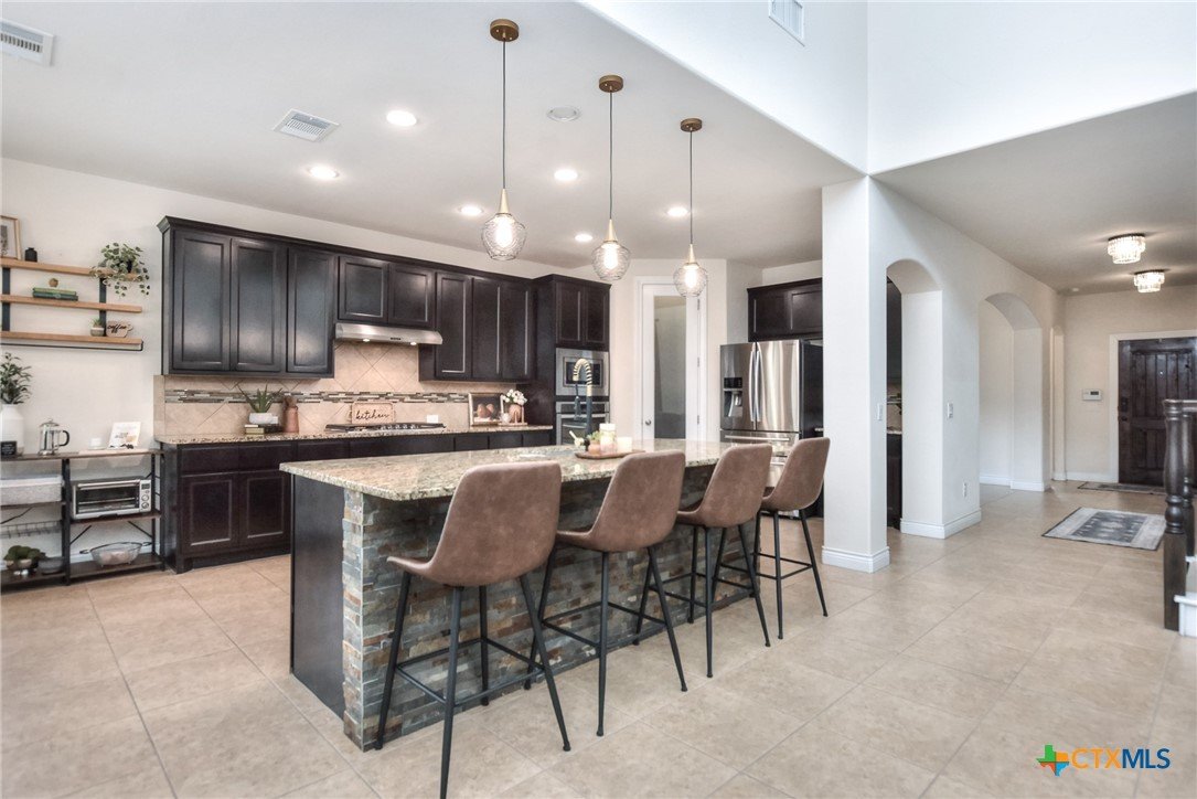 *FABULOUS LOCATION, OWNED SOLAR PANELS & TONS OF UPGRADES!* CLOSE TO TESLA, SAMSUNG, VISA, BAYLOR SCOTT & WHITE, SETON, COSTCO, BLACKHAWK GOLF COURSE, LAKE PFLUGERVILLE & MORE! This SPACIOUS, Light, Bright & Airy OPEN CONCEPT Home is an ENTERTAINERS DREAM w/ multiple Living & Dining Areas PLUS 4 dedicated Bedrooms (2 Up & 2 Down), a STUNNING Stone Extended Patio & Pergola, & Screened in Covered Back Patio to enjoy the outdoors without the bugs! Downstairs Flex Room (shown as a Spa Room) can be a Formal Dining/Office/Craft Room/Game Room/Library/Bar-Lounge or turned into a 5th Bedroom, while the upstairs Game Room can double as a Media Room &/or Office! SAY GOODBYE to "boring builder beige"! You'll LOVE the warm & inviting OVERSIZED Gourmet Kitchen w/ TRENDING 2026 Espresso/Brown Cabinets & Elegant Accent walls throughout! This Chef's Gourmet Kitchen is open to the Great Room, Dining Area, & Breakfast Bar & features Stainless Appliances, tons of Cabinets & Custom Shelving, a HUGE Island/Breakfast Bar, Custom Pendant Lighting, a Walk-in Pantry & even room to add a 2nd Rolling Island/Prep Table! The Great Room boasts Soaring Ceilings & upgraded Sliding Glass Doors w/ LUXURIOUS Custom Curtains allowing tons of natural light & the best view! You'll be WOWED when you see the TEXAS SIZED Master Shower w/ Dual Shower Head Set & 2-Way Diverter Shower Head Arm, the Luxurious Soaker Garden Tub & TONS of storage in the Master Closet! You'll LOVE the extra Storage Closets throughout, Mud Room/Drop Zone off the Foyer/Garage, Smart Home Security Lighting, Cameras, & Ring Doorbell, Model Home like Custom Uplighting, SOLAR PANELS, Automatic In-Ground Sprinkler System, Water Softener, New Water Heater in 2025, New Garage Door in 2025, & New Shingles in 2021! YOUR NEW HOME is located approx. 21 miles from Tesla, 2.7 miles to 45 Toll & 130 Toll & Stone Hill Shopping w/ Target, Home Depot, Best Buy, Bath & Body Works, At Home, Dick's Sporting Goods, Cinemark Movies, Restaurants & MORE!