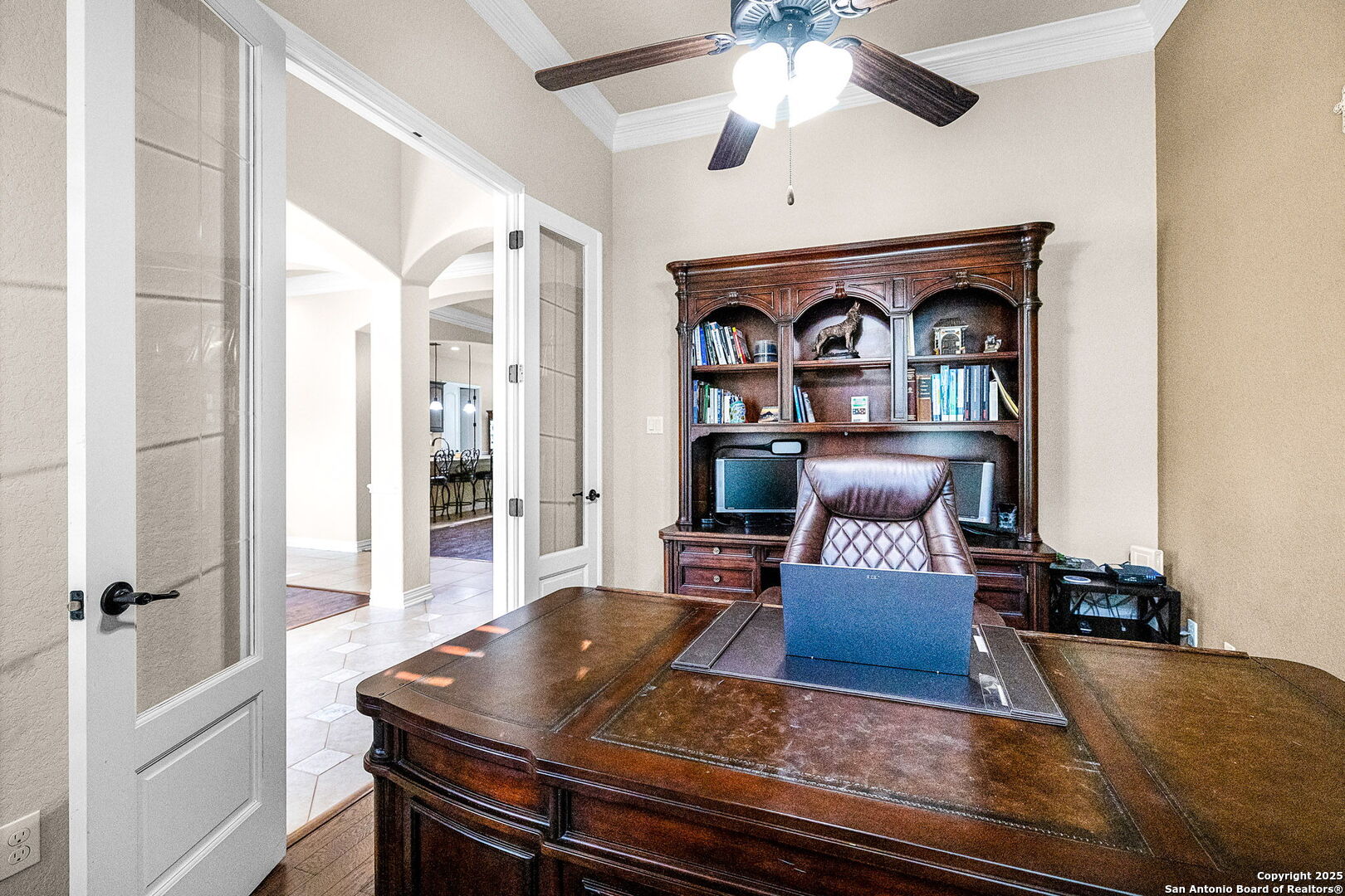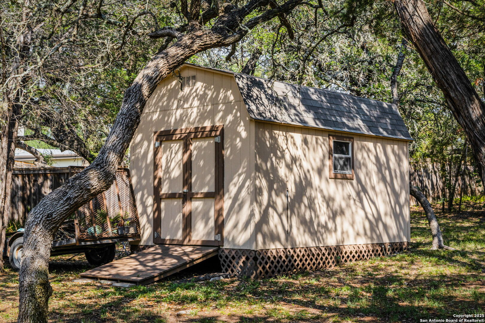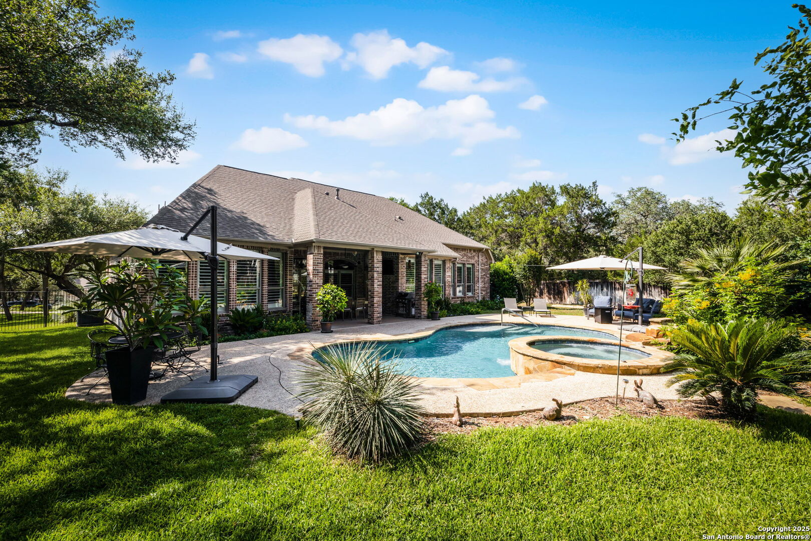 This exceptional single-story residence nestled within the exclusive gated enclave of The Park at Garden Ridge. With only 12 homesites in this private community, opportunities to live here are truly rare. This beautifully maintained 4-bedroom, 3.5-bath home offers a thoughtful open-concept layout filled with natural light, generous room sizes, and timeless finishes. Plantation shutters, tall ceilings, and abundant storage throughout-including a dedicated office and versatile game room-create a comfortable yet elevated living experience. Step outside to your private backyard retreat, where a sparkling pool and hot tub invite you to relax or entertain in style. The pool area is shaded in the evening, perfect for endless hours of enjoyment. An exterior storage building provides extra space for tools, hobbies, or seasonal items. If you're looking for privacy, charm, and quality in a gated setting, this home is truly one you don't want to miss. Come discover why The Park at Garden Ridge is one of the area's hidden gems.