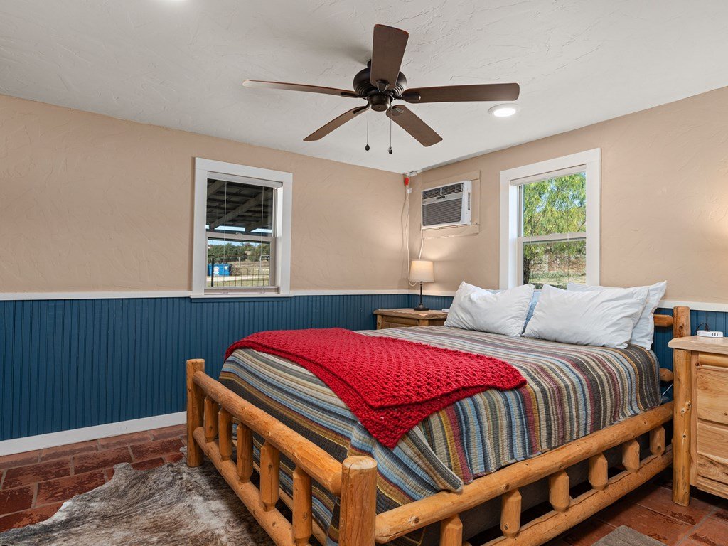 Set in a prime location less than 15 minutes from Main Street, Hermit Hill Ranch offers a rare blend of Hill Country privacy, elevation, and proximity in the very heart of the Texas Wine & Hill Country. The ranch spans 91 acres of classic Gillespie County terrain, featuring rolling topography, long-range views, and elevations approaching 1,950 feet. Native hardwoods including live oaks, red oaks, elm, and native cherry are scattered throughout, providing excellent cover for wildlife and a scenic, park-like setting. Open pastureland along the eastern portion of the property lends itself to horses or livestock, while the balance of the ranch offers gently rolling hills and a pond that fronts the cabin and casita. The property has been thoughtfully improved with the addition of a 3-bedroom, 3-bath cabin (1,400 sq ft, built in 2022)—a comfortable and well-appointed residence ideal for weekend use, full-time living, or entertaining family and guests. Complementing the main cabin is a 576 sq ft, 1-bedroom, 1-bath casita, currently utilized as a short-term rental or flexible guest space, offering immediate income potential or private accommodations for visitors. Infrastructure includes electricity on site, perimeter fencing with cross fencing, and a 37 GPM water well. The property fronts FM 1631 and is located near the historic Cave Creek community, one of Gillespie County's most desirable rural corridors. Rarely does a property of this size, character, and location come available so close to Fredericksburg's renowned dining, wineries, boutiques, and cultural attractions. Hermit Hill Ranch represents a compelling Hill Country opportunity—equally suited for recreation, retreat, or legacy ownership. For the nature lover, Hermit Hill Ranch supports abundant wildlife, including whitetail deer, wild turkey, and the occasional axis deer, all drawn to the property's mix of native cover, open pasture, and water. Whether enjoyed from the porch, explored on foot, or simply observed in their natural habitat, the land offers a peaceful connection to the outdoors that defines Hill Country living.