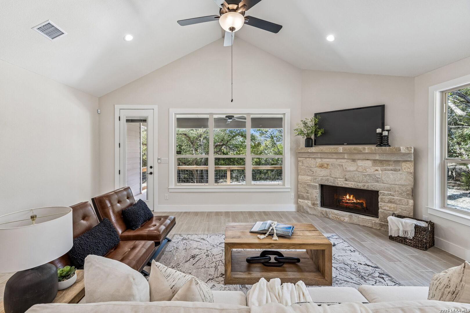 Welcome to this thoughtfully designed single story new construction by DB Builder LLC, set on over half an acre in the peaceful Rocky Creek Ranch in Canyon Lake. Offering 1,841 square feet, this 3 bedroom, 2 bathroom home features an open, light filled layout with a seamless connection between the kitchen, dining, and living areas, ideal for both everyday living and entertaining. The split bedroom floor plan provides added privacy, with the primary suite tucked away as a comfortable retreat featuring a spacious bathroom and generous closet. Outside, the oversized lot offers endless possibilities to add a pool, create an outdoor entertaining space, or simply enjoy the quiet beauty of the Hill Country. Located near Canyon Lake and abundant outdoor recreation, this home is well suited as a full time residence or a weekend escape in a growing lake area community that continues to attract attention.