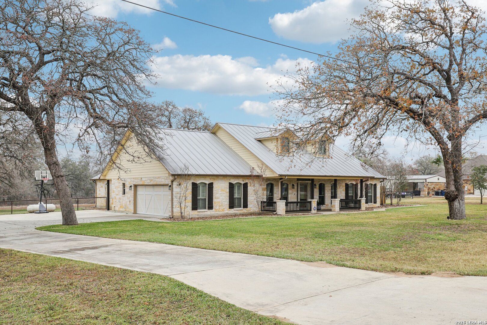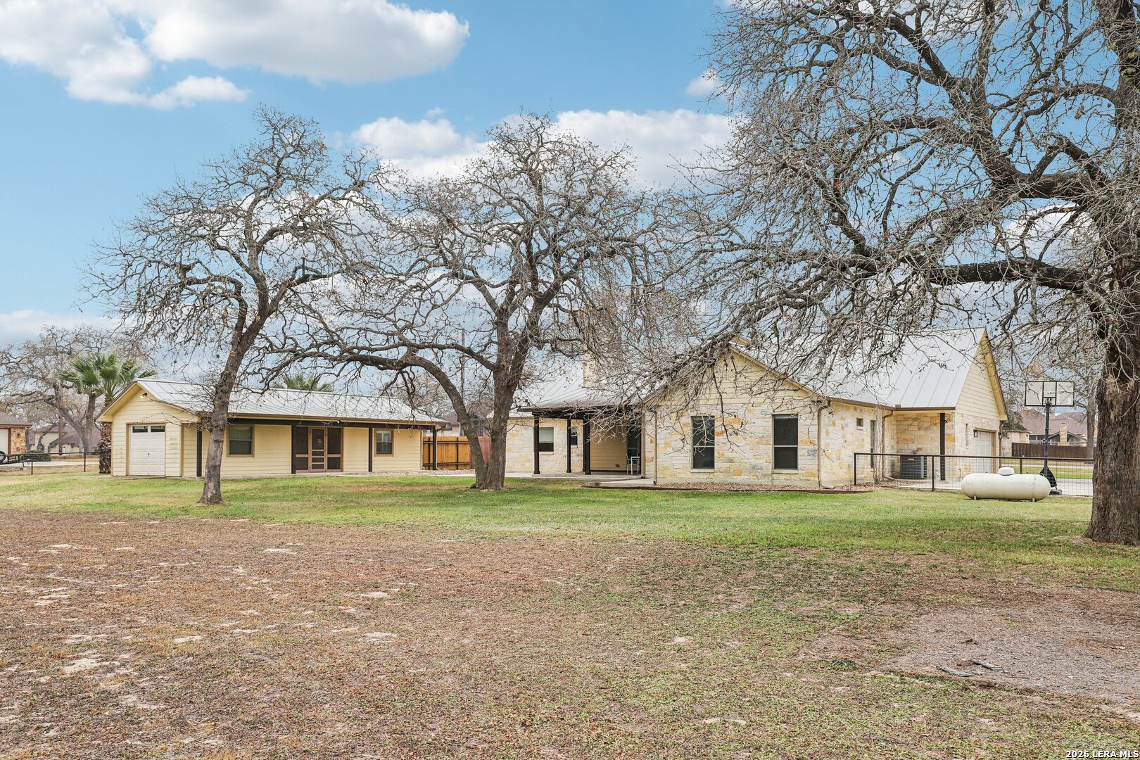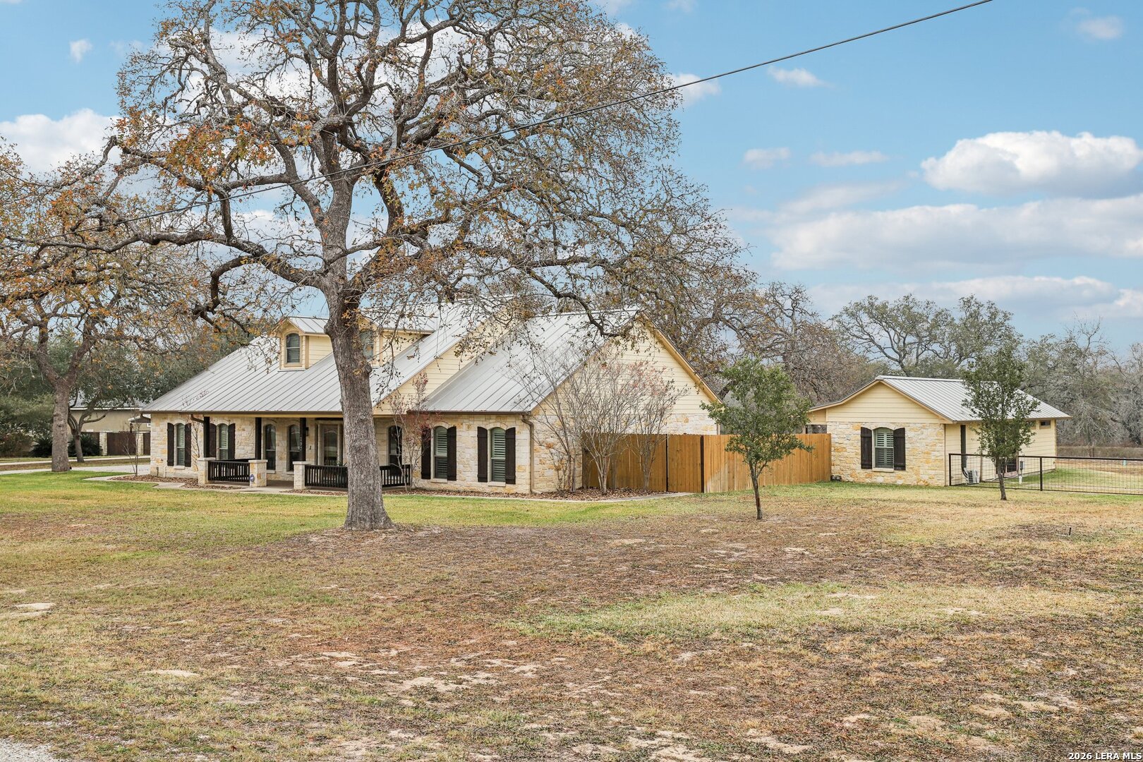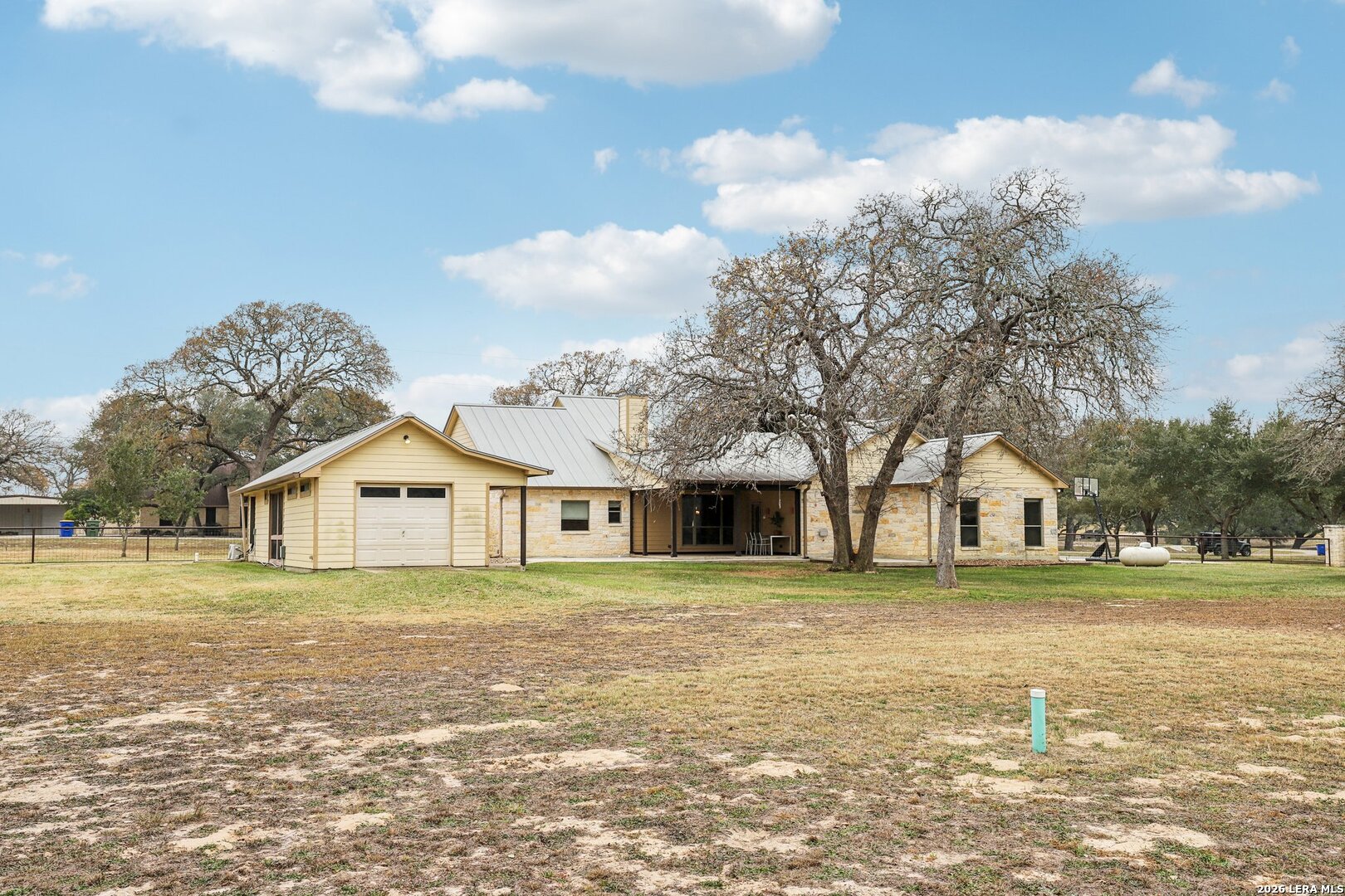 Beautiful Texas Ranch-Style Rock Home on Over an Acre! This custom-built home sits on a quiet street in the highly sought-after Vintage Oaks Ranch subdivision. The 2,752 sq ft main residence offers 3 bedrooms, 2 full baths, 2 half baths, and a dedicated home office, all designed with high ceilings and an open-concept layout. The spacious living area flows seamlessly into two dining spaces, highlighted by custom cabinetry and granite countertops. A walk-in pantry and thoughtful finishes throughout add both style and functionality. A detached 266 sq ft flex space provides endless possibilities-perfect for a game room, home gym, or private retreat. Backing to wooded acreage, the home offers exceptional privacy and peaceful country views, best enjoyed from the fabulous covered back porch. Well maintained and truly move-in ready, this home delivers the best of country living while remaining less than 30 minutes from San Antonio. Schedule your showing today!