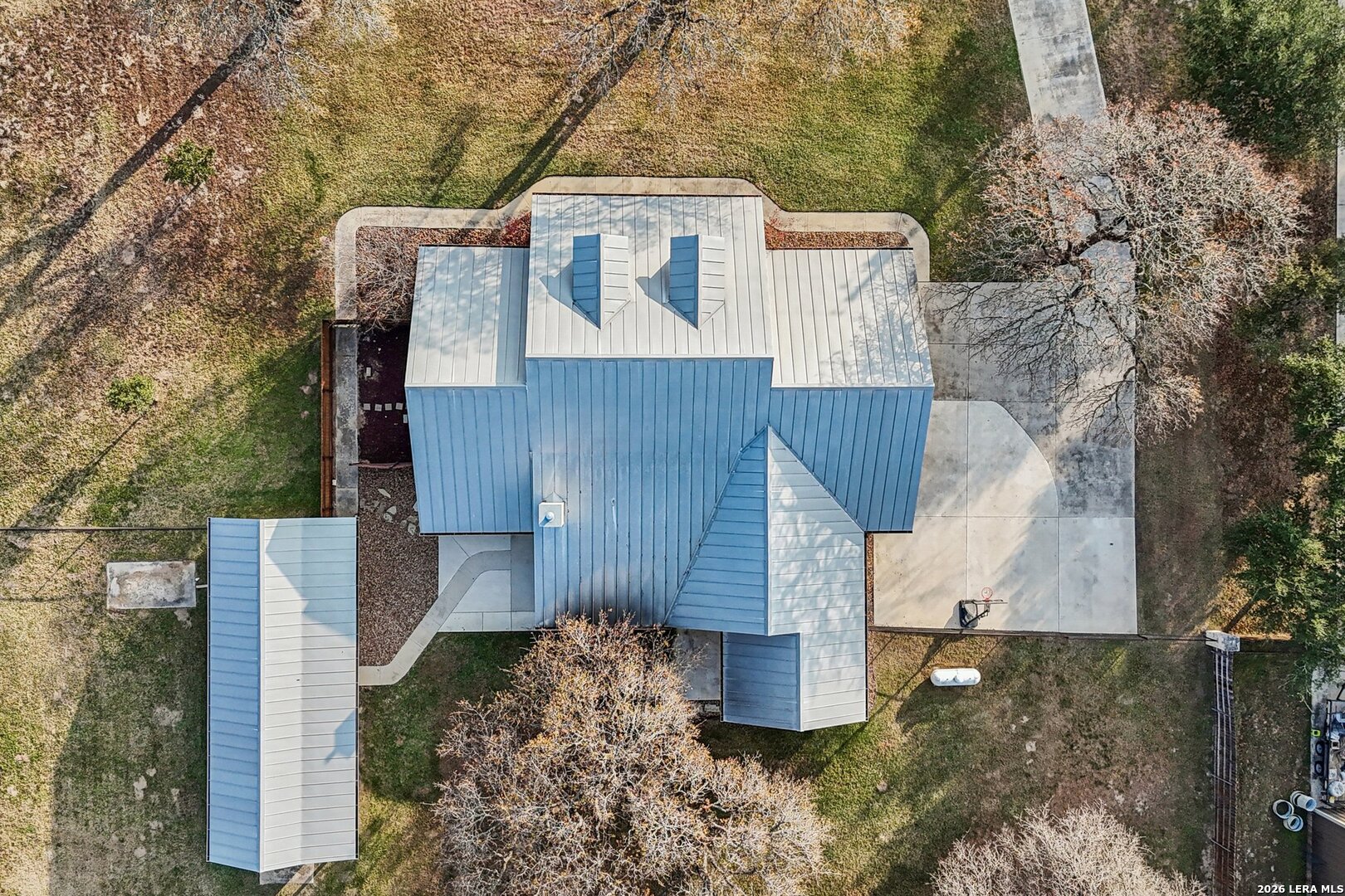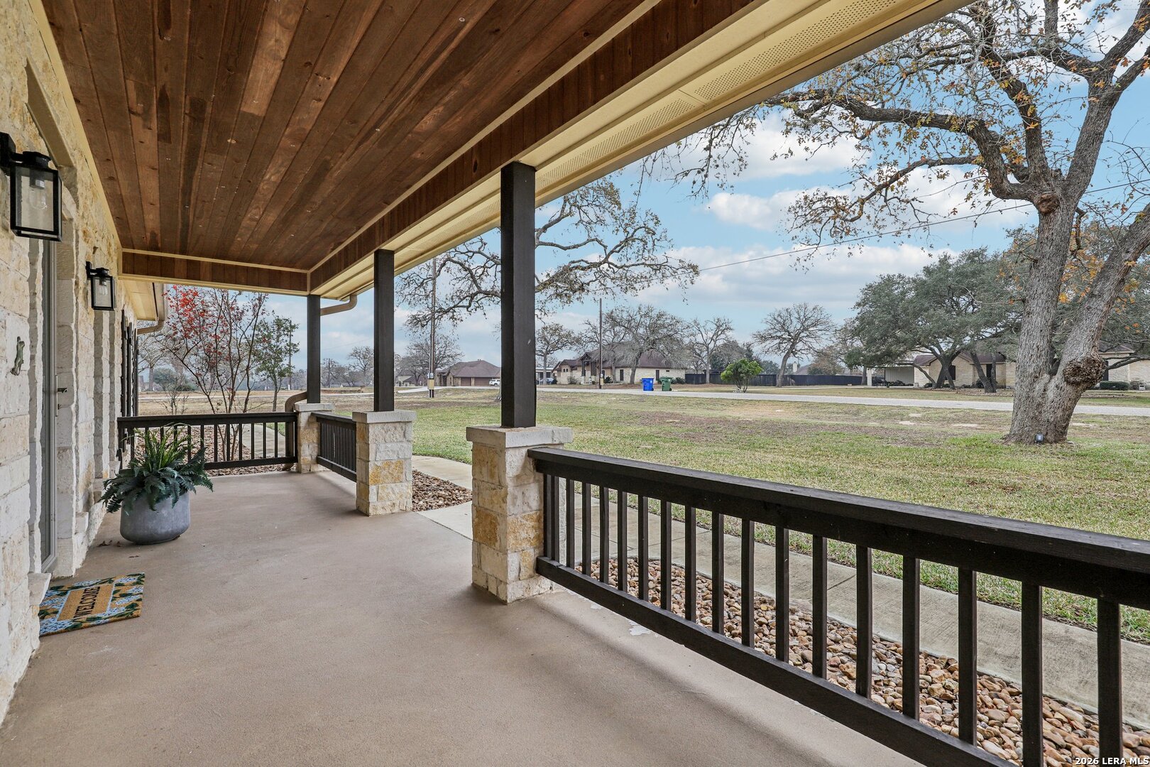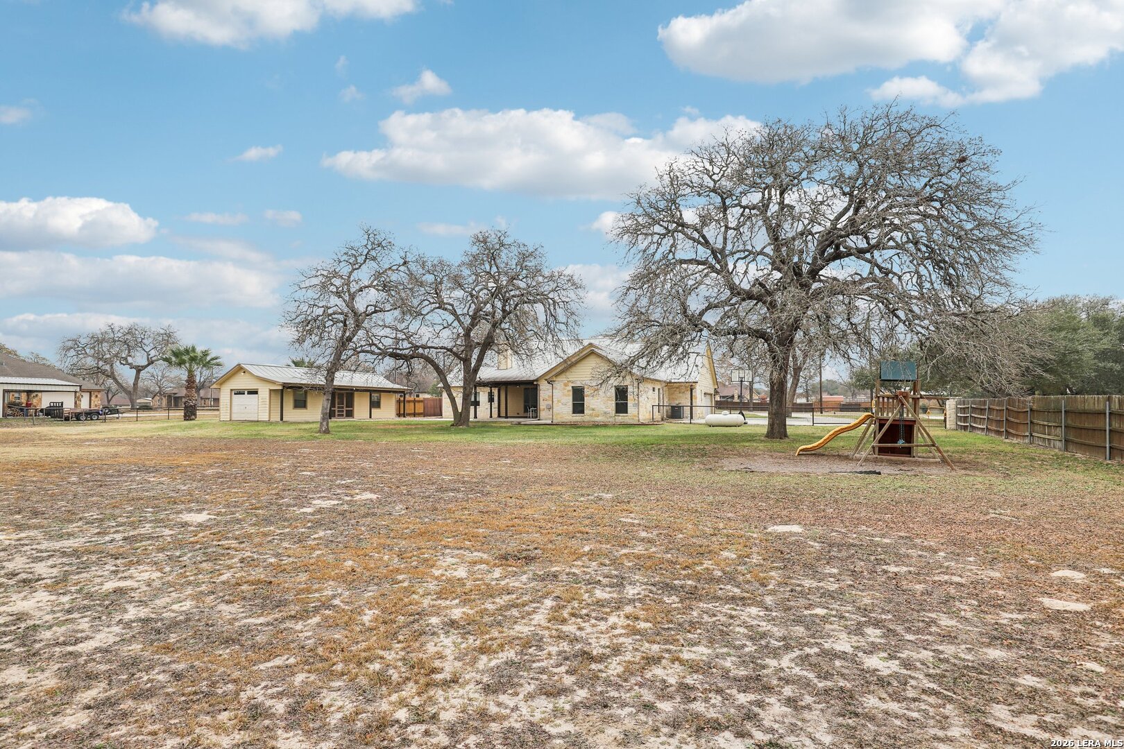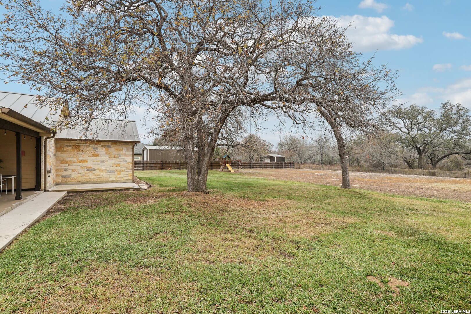Beautiful Texas Ranch-Style Rock Home on Over an Acre! This custom-built home sits on a quiet street in the highly sought-after Vintage Oaks Ranch subdivision. The 2,752 sq ft main residence offers 3 bedrooms, 2 full baths, 2 half baths, and a dedicated home office, all designed with high ceilings and an open-concept layout. The spacious living area flows seamlessly into two dining spaces, highlighted by custom cabinetry and granite countertops. A walk-in pantry and thoughtful finishes throughout add both style and functionality. A detached 266 sq ft flex space provides endless possibilities-perfect for a game room, home gym, or private retreat. Backing to wooded acreage, the home offers exceptional privacy and peaceful country views, best enjoyed from the fabulous covered back porch. Well maintained and truly move-in ready, this home delivers the best of country living while remaining less than 30 minutes from San Antonio. Schedule your showing today!