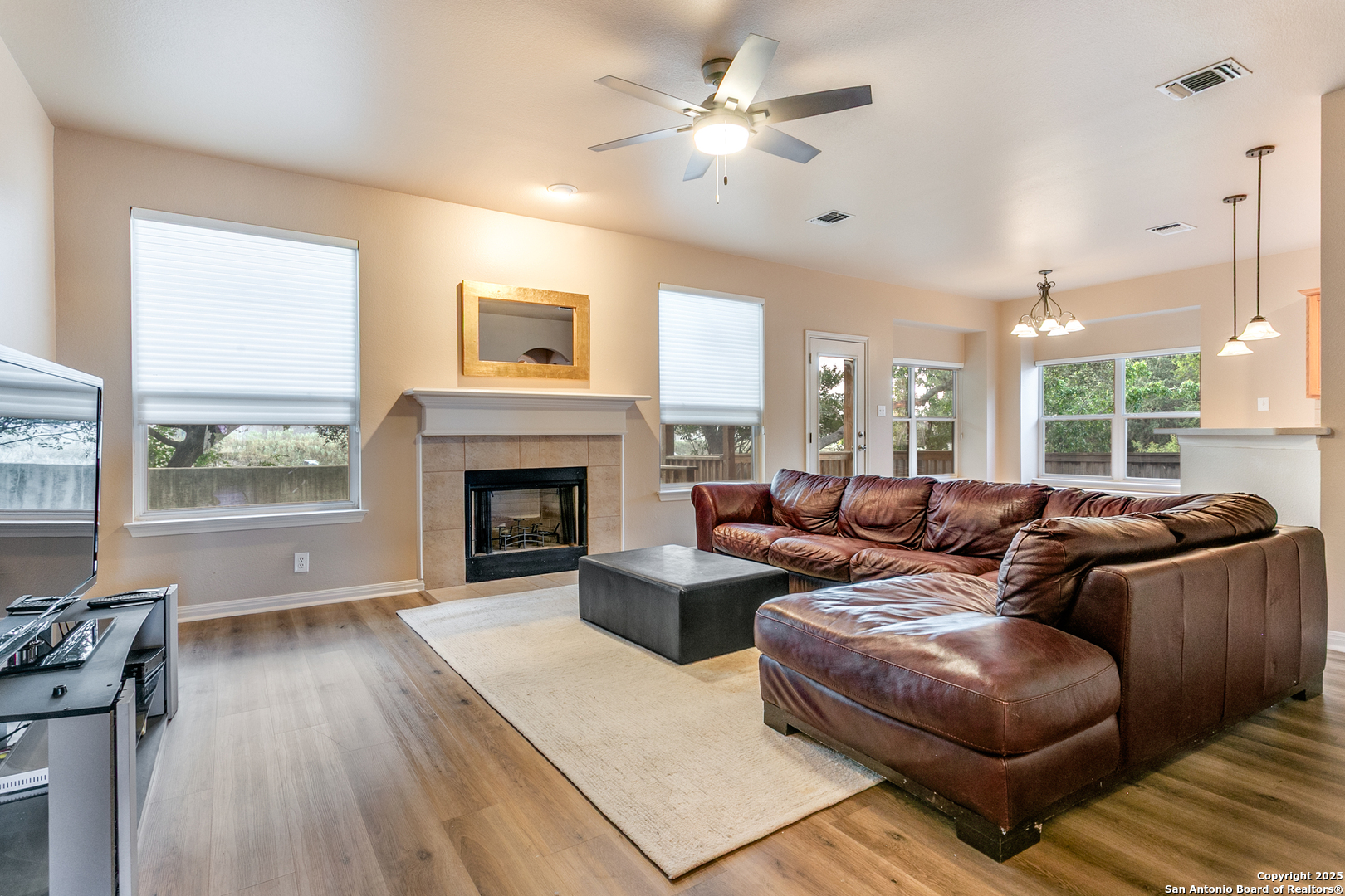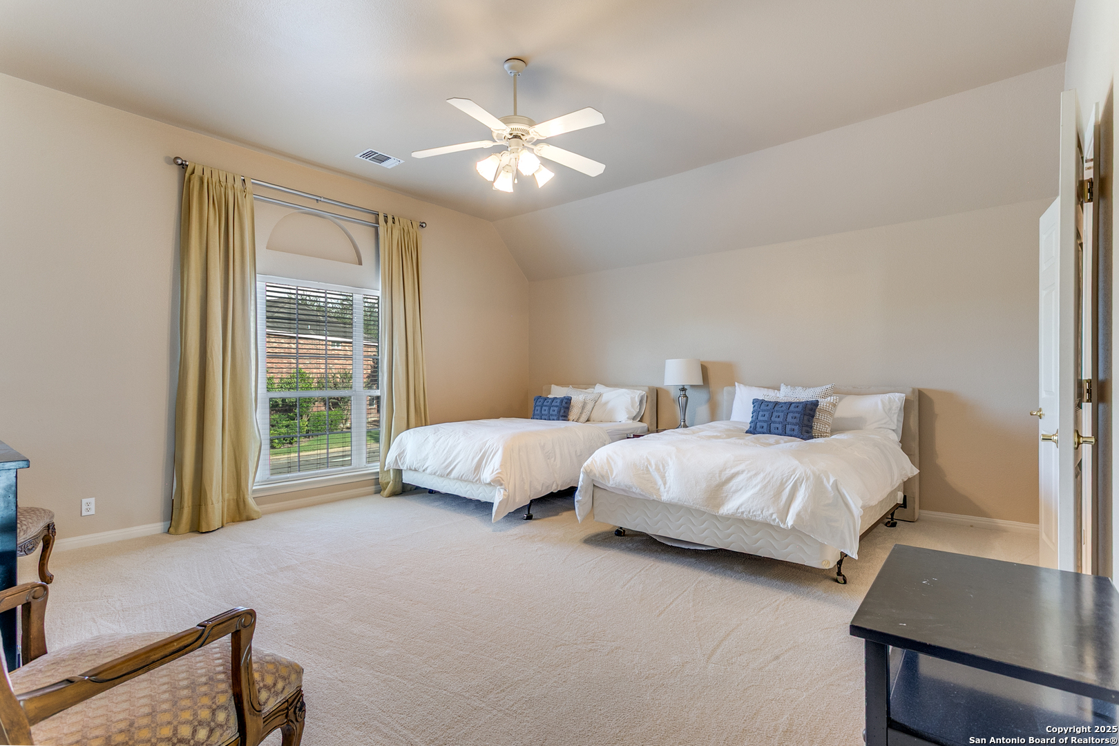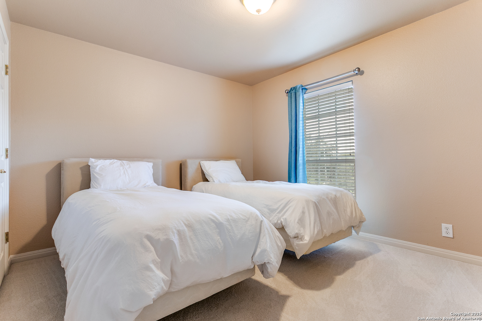 Welcome to your new home in the beautiful, gated Meadows of Sonterra! This spacious 5-bedroom, 3.5-bath home is freshly painted with new carpet throughout and offers plenty of room for everyone to spread out. You'll love the two large living areas, perfect for entertaining or movie nights by the cozy fireplace. The home features a primary bedroom downstairs and another upstairs-perfect for guests, teens, or multi-generational living. Step outside to enjoy the private backyard with no neighbors behind you for added peace and quiet. Located in the highly rated North East ISD, feeding into Reagan High School, this home combines comfort, convenience, and community in one of San Antonio's most desirable neighborhoods.