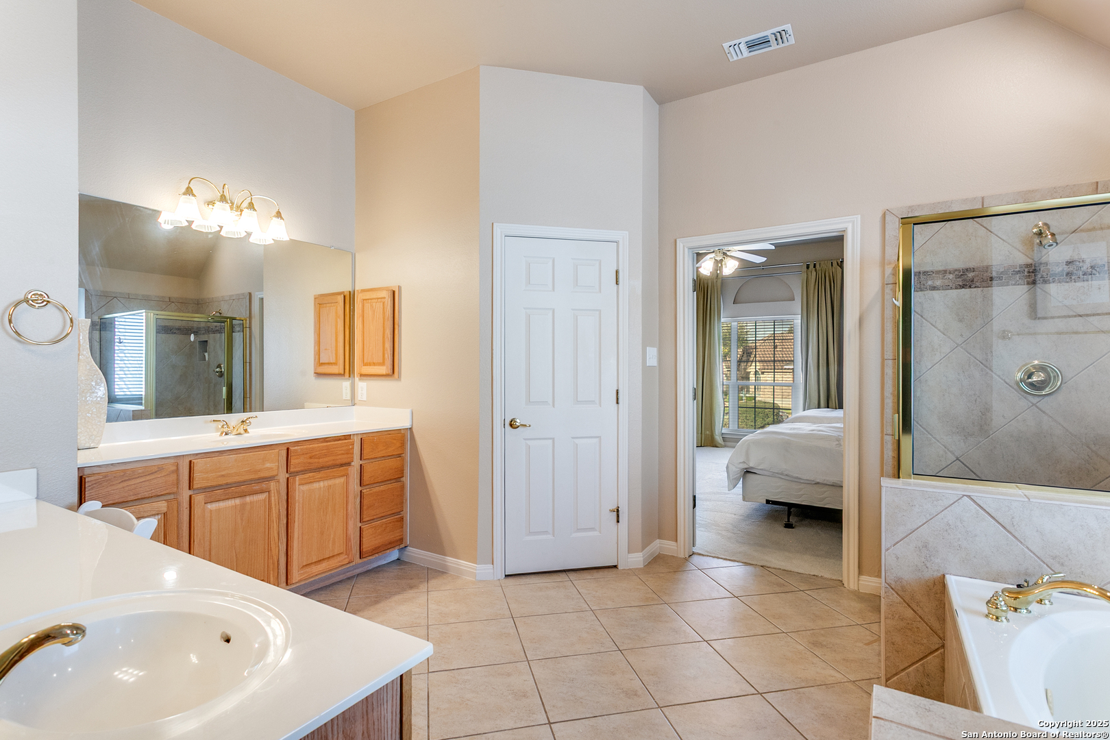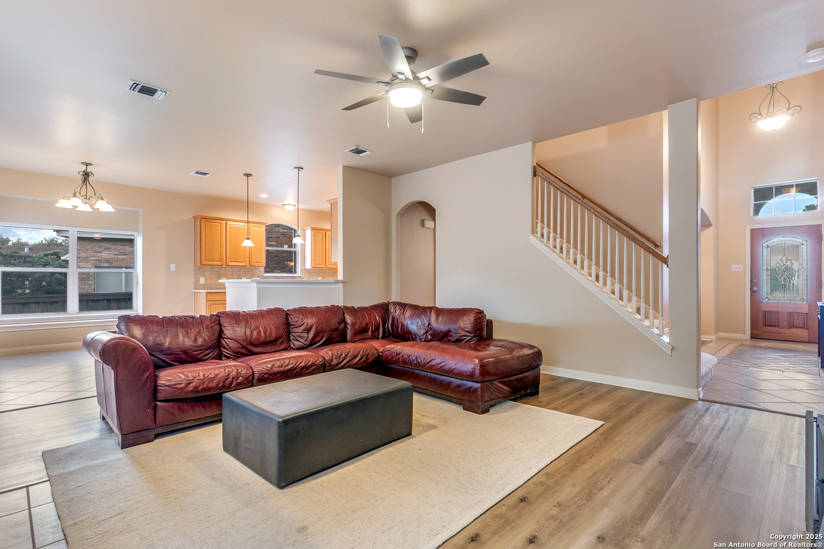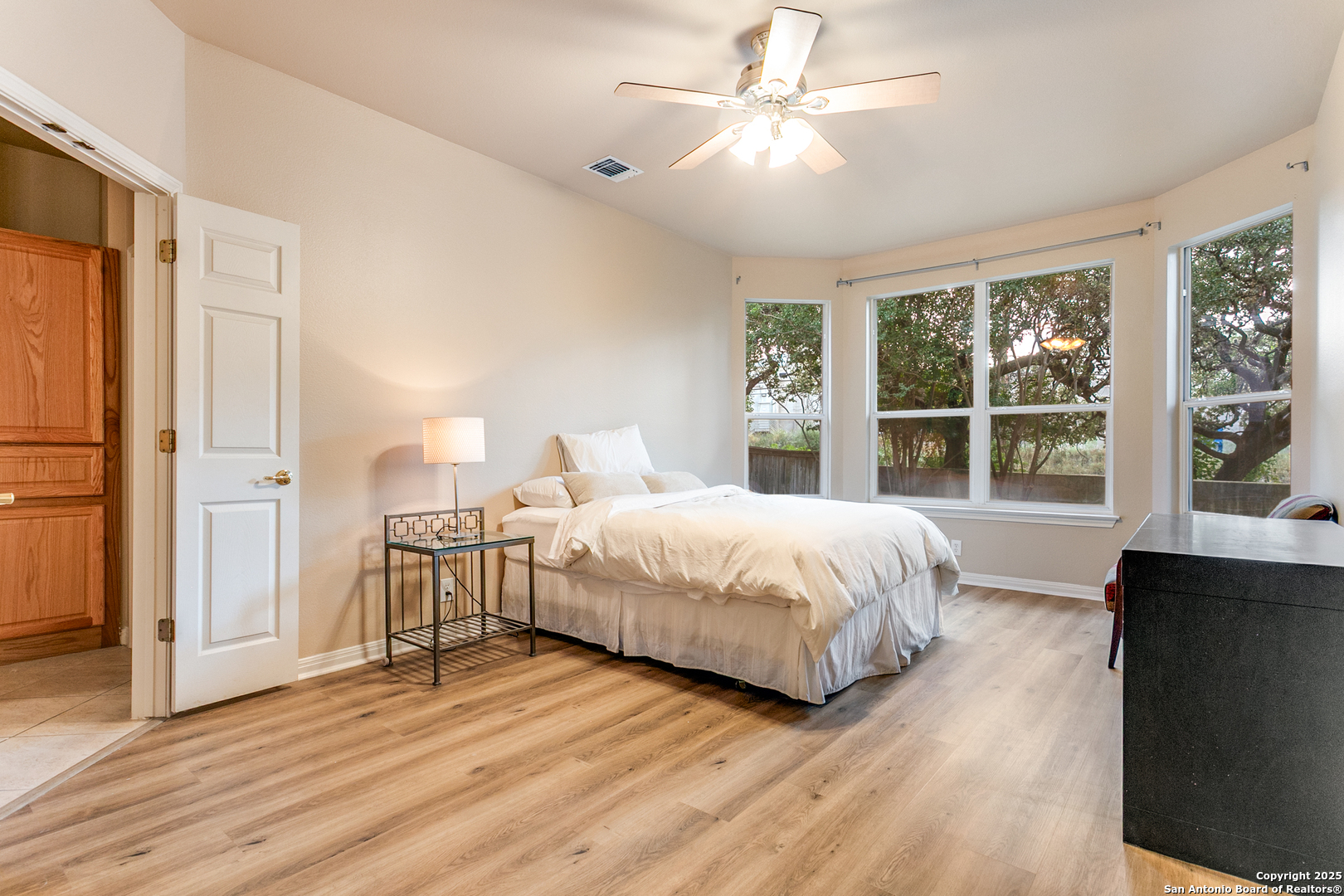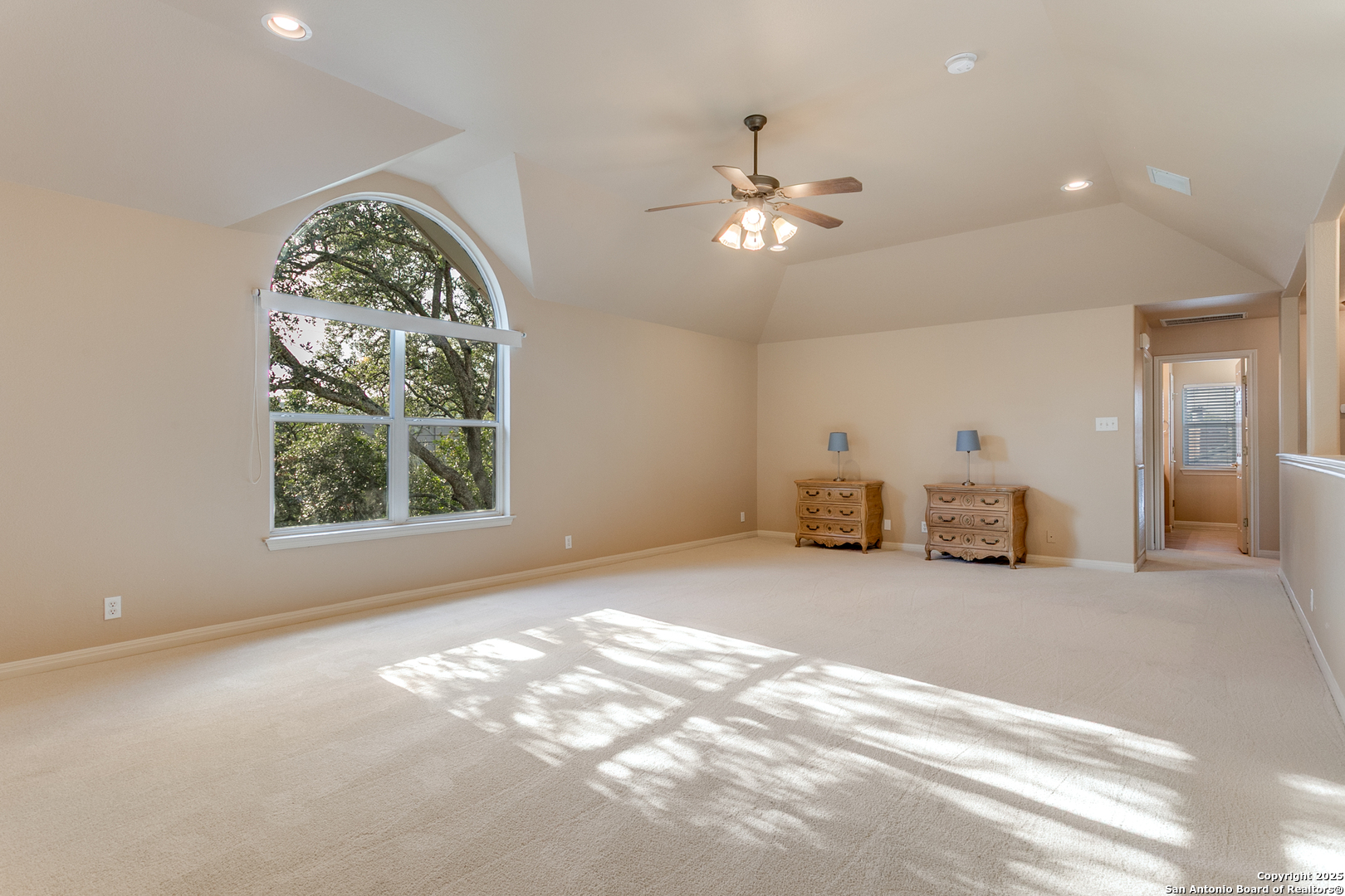 Welcome to your new home in the beautiful, gated Meadows of Sonterra! This spacious 5-bedroom, 3.5-bath home is freshly painted with new carpet throughout and offers plenty of room for everyone to spread out. You'll love the two large living areas, perfect for entertaining or movie nights by the cozy fireplace. The home features a primary bedroom downstairs and another upstairs-perfect for guests, teens, or multi-generational living. Step outside to enjoy the private backyard with no neighbors behind you for added peace and quiet. Located in the highly rated North East ISD, feeding into Reagan High School, this home combines comfort, convenience, and community in one of San Antonio's most desirable neighborhoods.