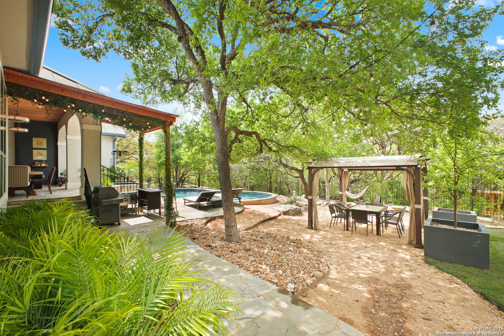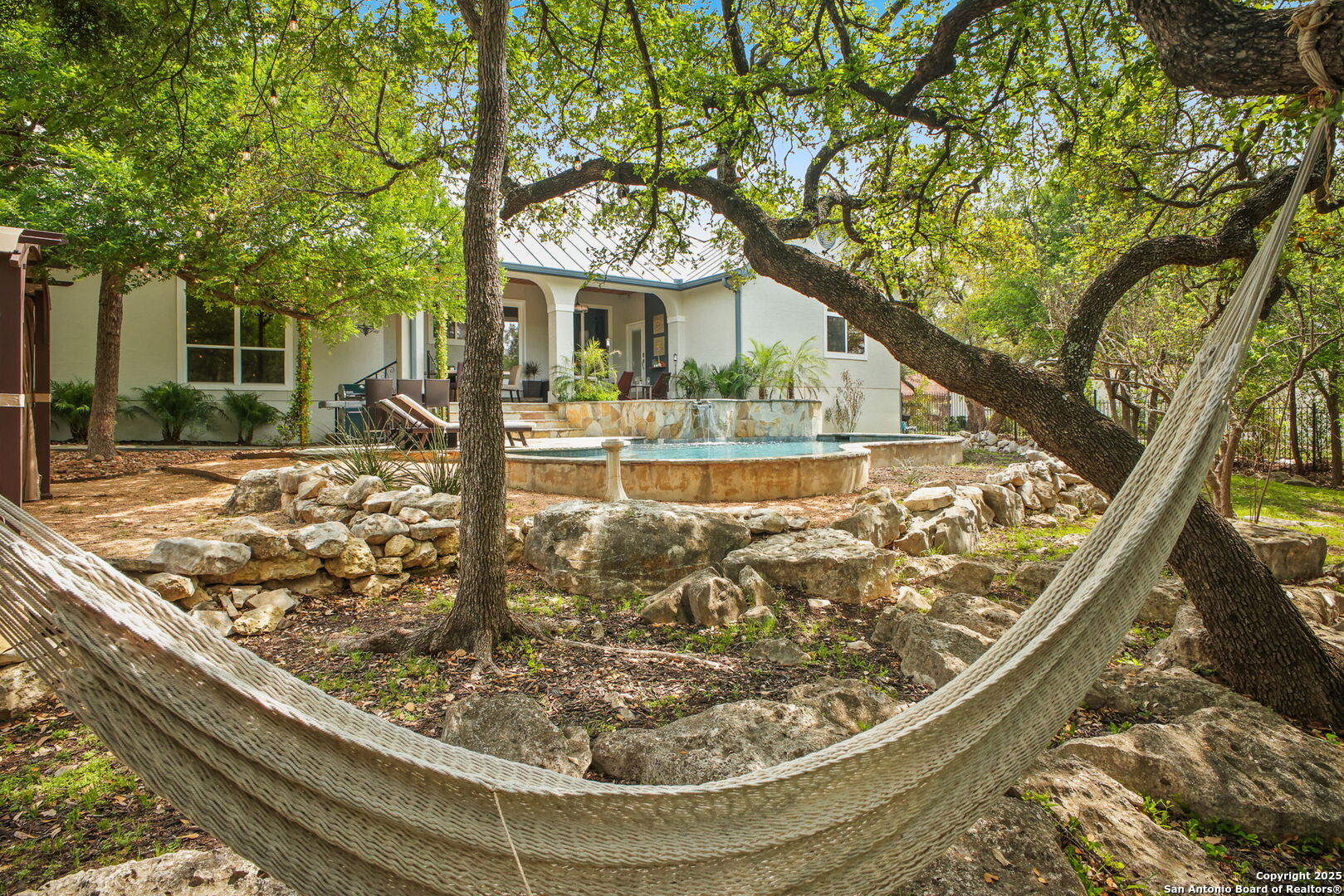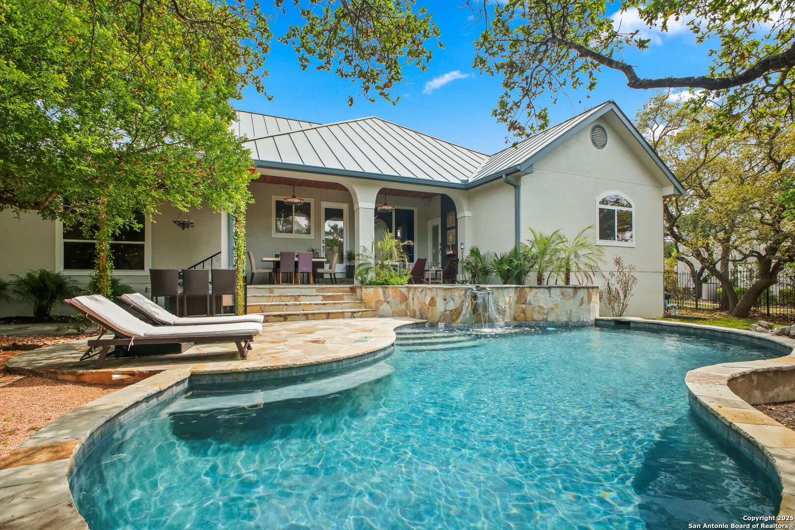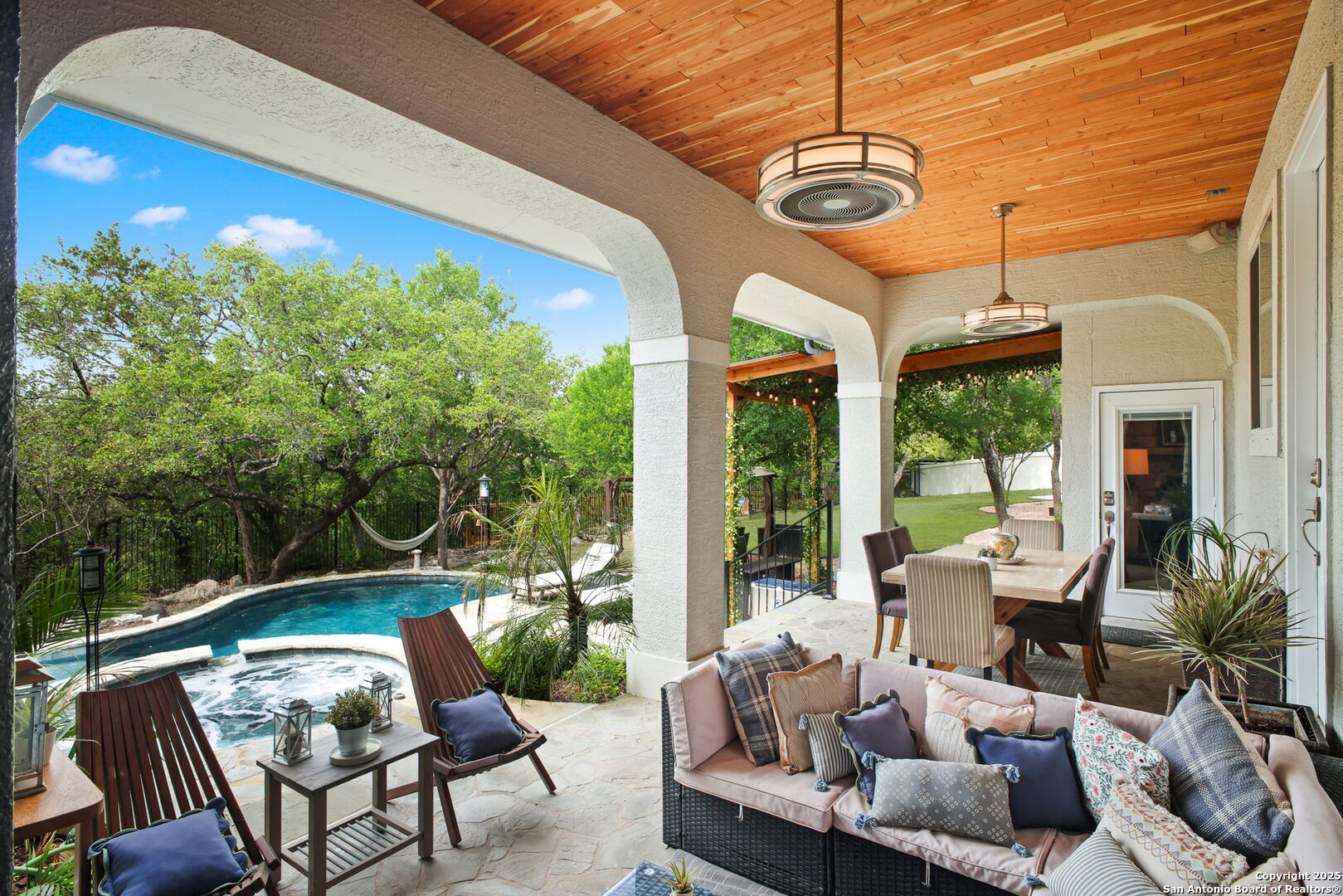 Extra 1,396 sqft living space including a brand new Casita. Welcome to The Pinnacle, a prestigious gated community in the heart of Stone Oak, San Antonio, TX. Conveniently located in a cul-de-sac at The Pinnacle subdivision, near Blanco Road, just minutes from 1604 and 281, and close to Stone Oak's premier shopping, dining, and entertainment options. Nestled on a 3/4-acre wooded lot, this stunning Single-Story residence boasts mature oak trees and a serene atmosphere, making the backyard a true oasis. The beautifully designed Keith Zars pool and Spa are perfect for hot summer days, while the expansive terraces offer unobstructed views of the private forest backyard. Main Residence Features: Open floor plan with large living and dining areas filled with natural lights, expansive game room/media room, gourmet kitchen with Jennair appliances and central island. 5 spacious bedrooms, with 3 en-suite bathrooms, 1 full bath and 1 additional half bathroom. Carefree, high-end flooring throughout, including luxury ceramic, modern vinyl planks, and premium hardwood flooring, with no carpet and no stairs, built-in gas fireplaces in living and family room, premium wireless audio connectivity and built-in speakers in living, dining, media room, and pool terrace. Water softener, and new efficient lighting throughout the entire house. The main house was fully remodeled and upgraded in 2023, with a brand-new addition completed in 2025, detached Casita/Guest House and Garage; Casita with master bedroom, full bathroom, efficient built-in kitchen, and bar-coffee station. Spacious living area with fireplace, perfect for entertaining, extra-large, flexible 3-car garage with ample storage space, premium lighting and wireless audio/speakers in living room. Additional features on Casita; highly efficient spray-foam insulation throughout, new HVAC and water heater, new plumbing and electricity, new metal roof. Upcoming Community Upgrade; Google Fiber is coming soon to the neighborhood!