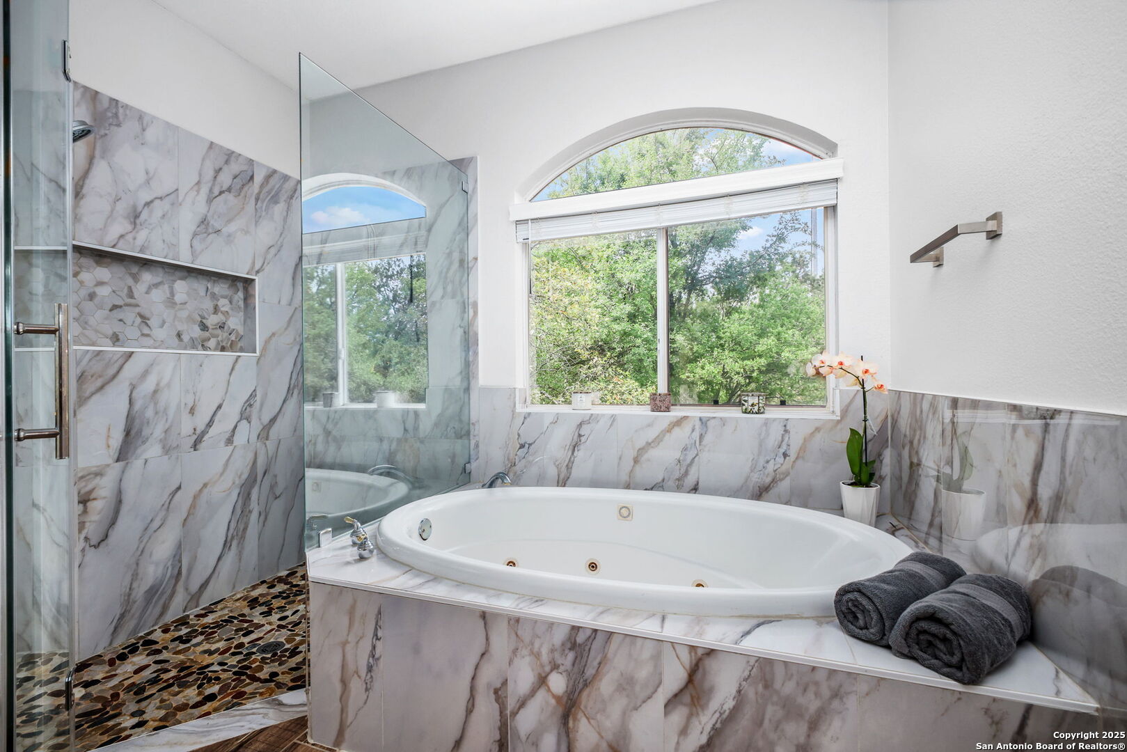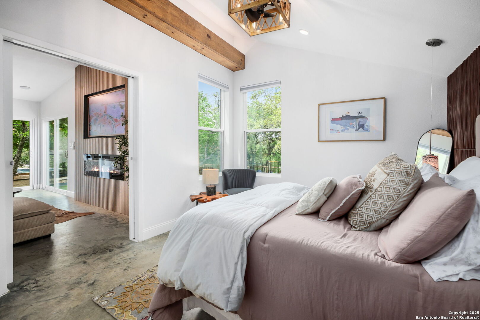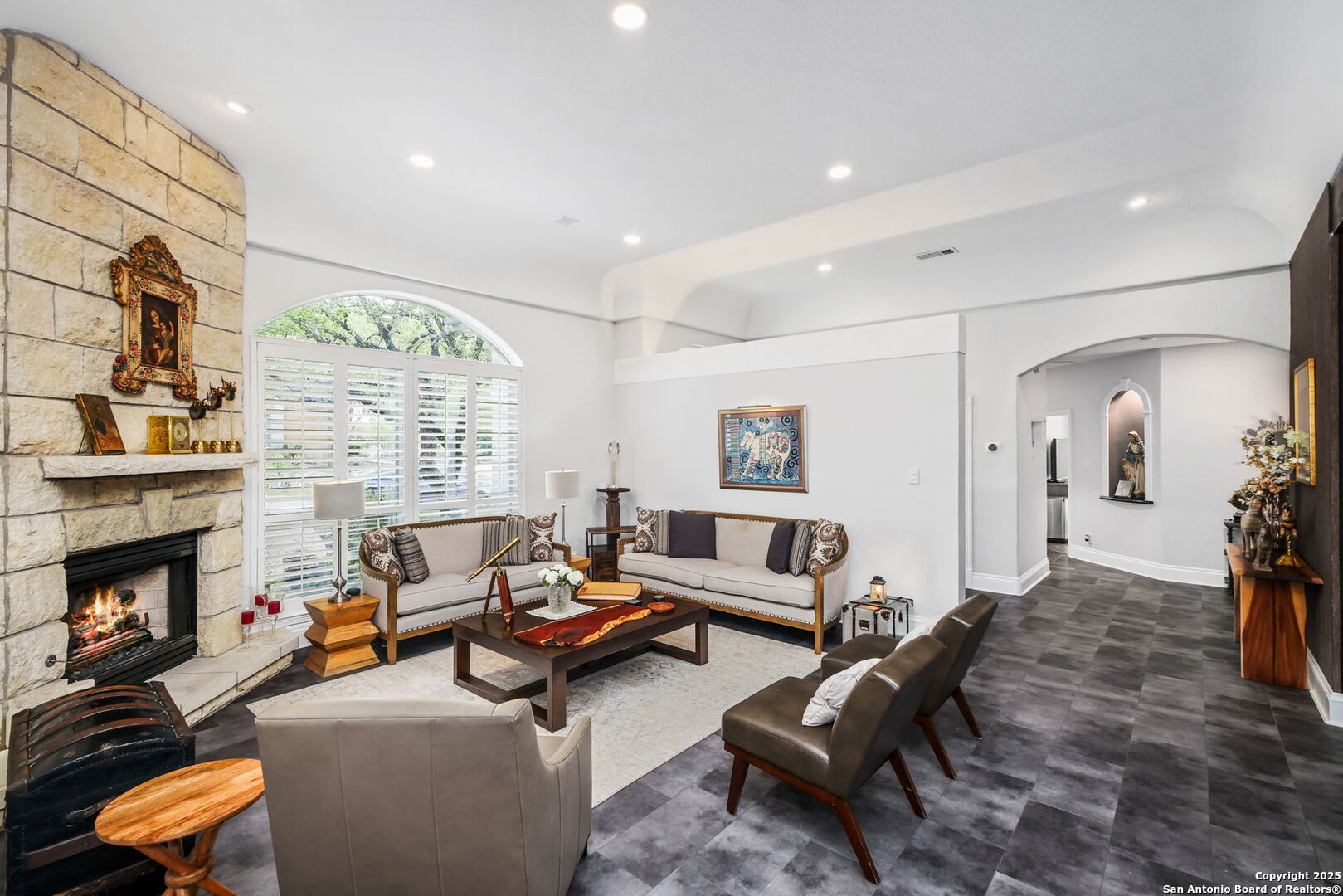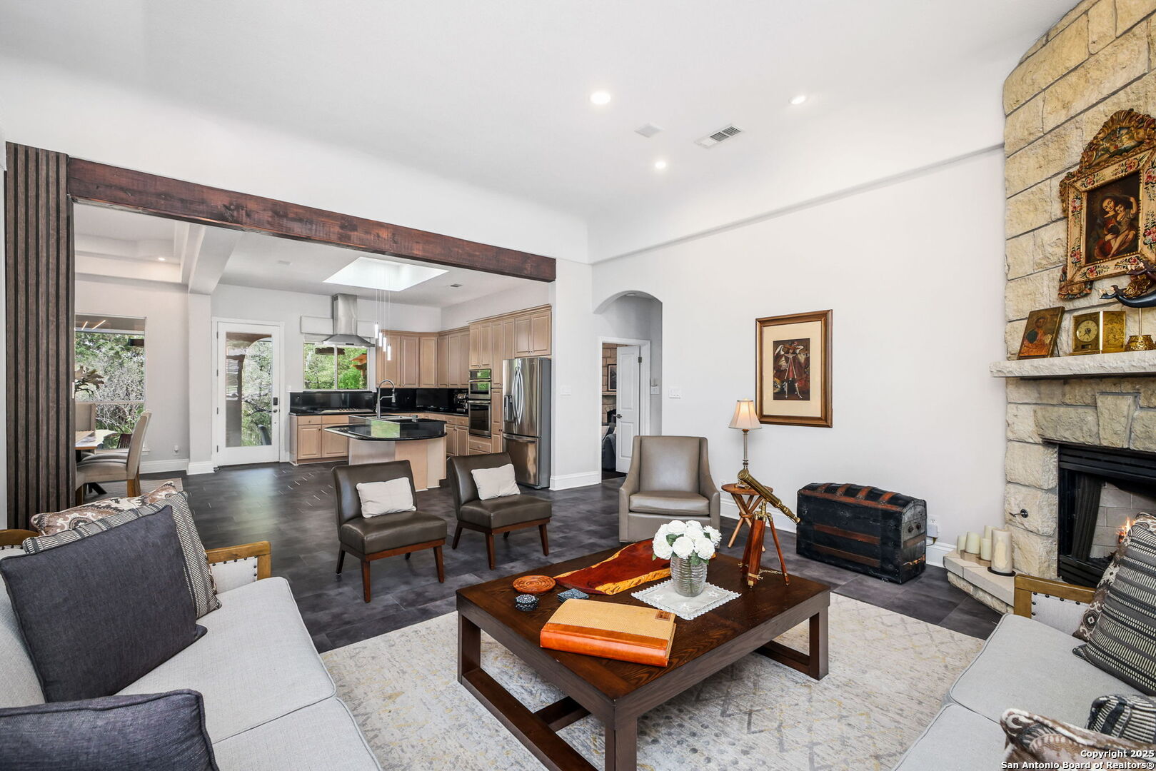 Extra 1,396 sqft living space including a brand new Casita. Welcome to The Pinnacle, a prestigious gated community in the heart of Stone Oak, San Antonio, TX. Conveniently located in a cul-de-sac at The Pinnacle subdivision, near Blanco Road, just minutes from 1604 and 281, and close to Stone Oak's premier shopping, dining, and entertainment options. Nestled on a 3/4-acre wooded lot, this stunning Single-Story residence boasts mature oak trees and a serene atmosphere, making the backyard a true oasis. The beautifully designed Keith Zars pool and Spa are perfect for hot summer days, while the expansive terraces offer unobstructed views of the private forest backyard. Main Residence Features: Open floor plan with large living and dining areas filled with natural lights, expansive game room/media room, gourmet kitchen with Jennair appliances and central island. 5 spacious bedrooms, with 3 en-suite bathrooms, 1 full bath and 1 additional half bathroom. Carefree, high-end flooring throughout, including luxury ceramic, modern vinyl planks, and premium hardwood flooring, with no carpet and no stairs, built-in gas fireplaces in living and family room, premium wireless audio connectivity and built-in speakers in living, dining, media room, and pool terrace. Water softener, and new efficient lighting throughout the entire house. The main house was fully remodeled and upgraded in 2023, with a brand-new addition completed in 2025, detached Casita/Guest House and Garage; Casita with master bedroom, full bathroom, efficient built-in kitchen, and bar-coffee station. Spacious living area with fireplace, perfect for entertaining, extra-large, flexible 3-car garage with ample storage space, premium lighting and wireless audio/speakers in living room. Additional features on Casita; highly efficient spray-foam insulation throughout, new HVAC and water heater, new plumbing and electricity, new metal roof. Upcoming Community Upgrade; Google Fiber is coming soon to the neighborhood!
