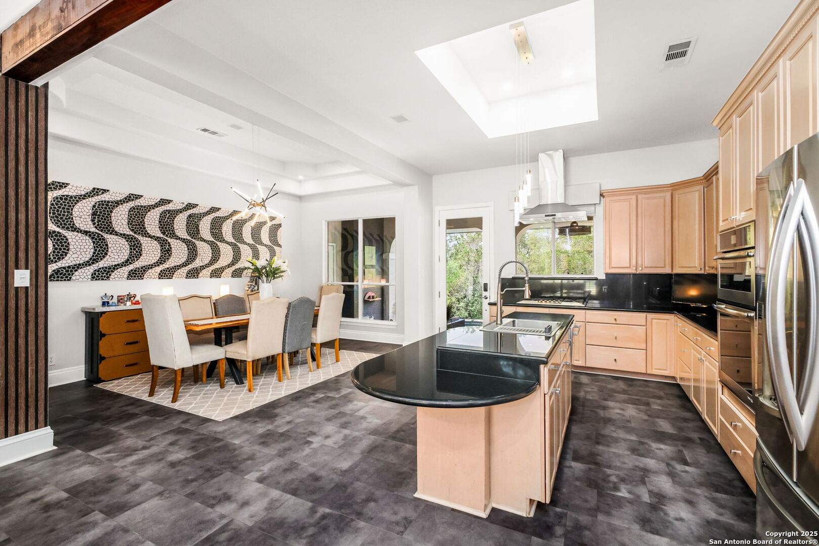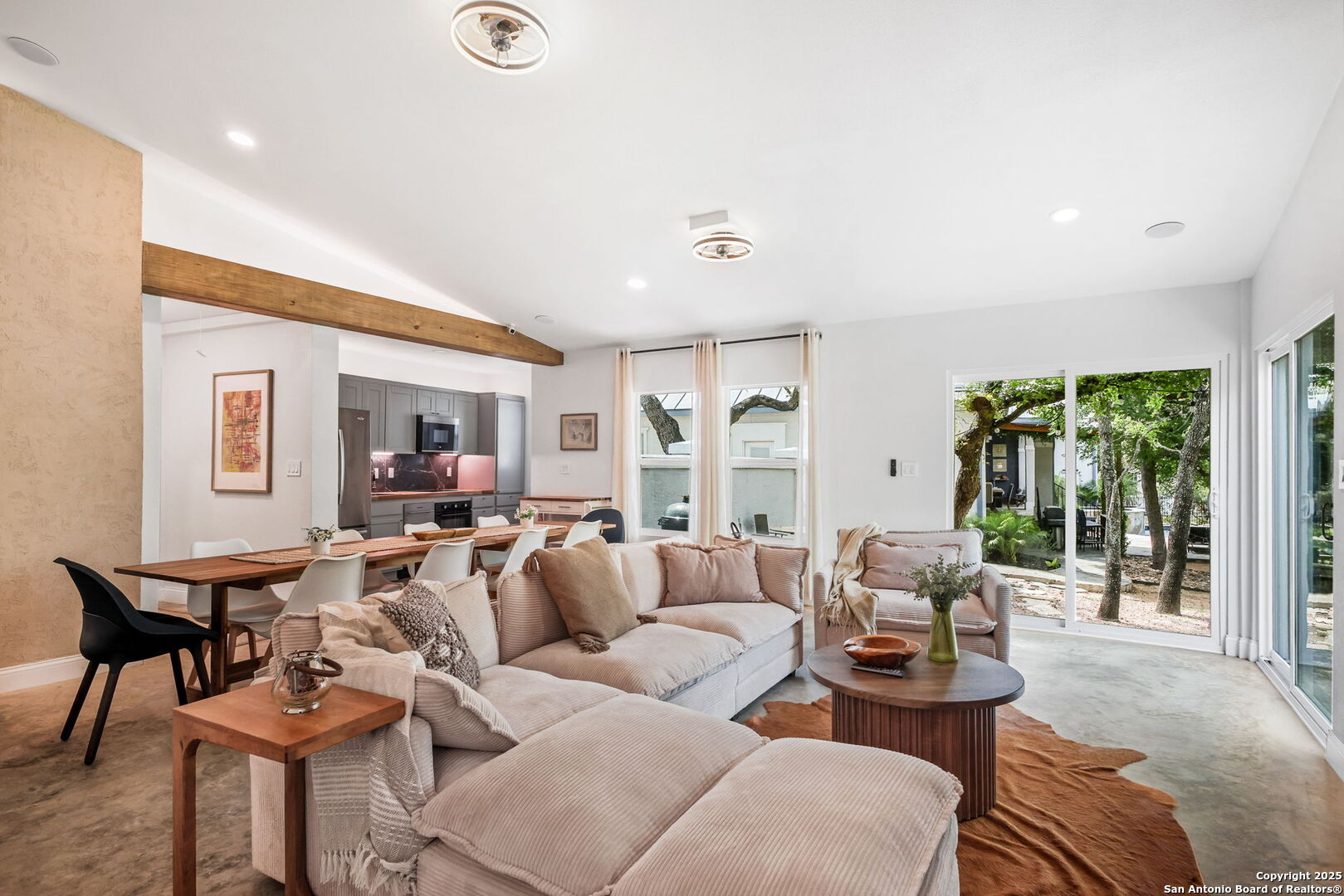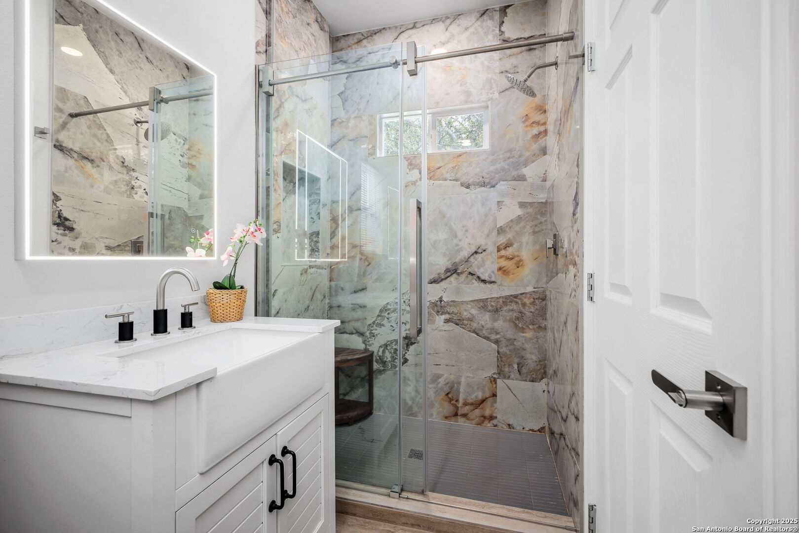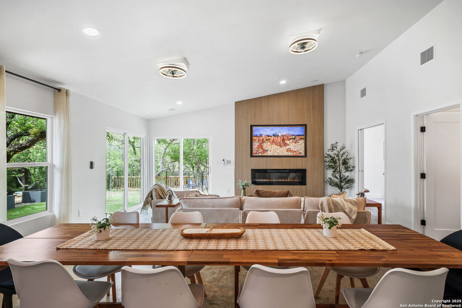 Extra 1,396 sqft living space including a brand new Casita. Welcome to The Pinnacle, a prestigious gated community in the heart of Stone Oak, San Antonio, TX. Conveniently located in a cul-de-sac at The Pinnacle subdivision, near Blanco Road, just minutes from 1604 and 281, and close to Stone Oak's premier shopping, dining, and entertainment options. Nestled on a 3/4-acre wooded lot, this stunning Single-Story residence boasts mature oak trees and a serene atmosphere, making the backyard a true oasis. The beautifully designed Keith Zars pool and Spa are perfect for hot summer days, while the expansive terraces offer unobstructed views of the private forest backyard. Main Residence Features: Open floor plan with large living and dining areas filled with natural lights, expansive game room/media room, gourmet kitchen with Jennair appliances and central island. 5 spacious bedrooms, with 3 en-suite bathrooms, 1 full bath and 1 additional half bathroom. Carefree, high-end flooring throughout, including luxury ceramic, modern vinyl planks, and premium hardwood flooring, with no carpet and no stairs, built-in gas fireplaces in living and family room, premium wireless audio connectivity and built-in speakers in living, dining, media room, and pool terrace. Water softener, and new efficient lighting throughout the entire house. The main house was fully remodeled and upgraded in 2023, with a brand-new addition completed in 2025, detached Casita/Guest House and Garage; Casita with master bedroom, full bathroom, efficient built-in kitchen, and bar-coffee station. Spacious living area with fireplace, perfect for entertaining, extra-large, flexible 3-car garage with ample storage space, premium lighting and wireless audio/speakers in living room. Additional features on Casita; highly efficient spray-foam insulation throughout, new HVAC and water heater, new plumbing and electricity, new metal roof. Upcoming Community Upgrade; Google Fiber is coming soon to the neighborhood!