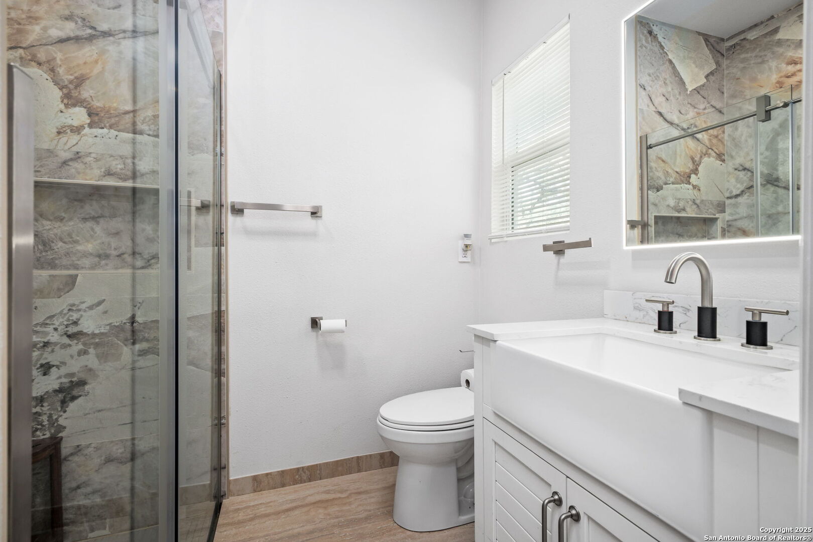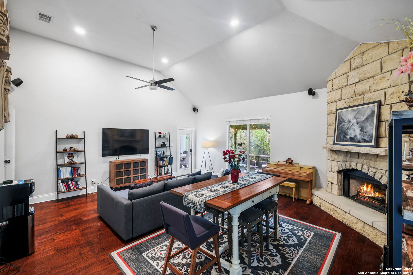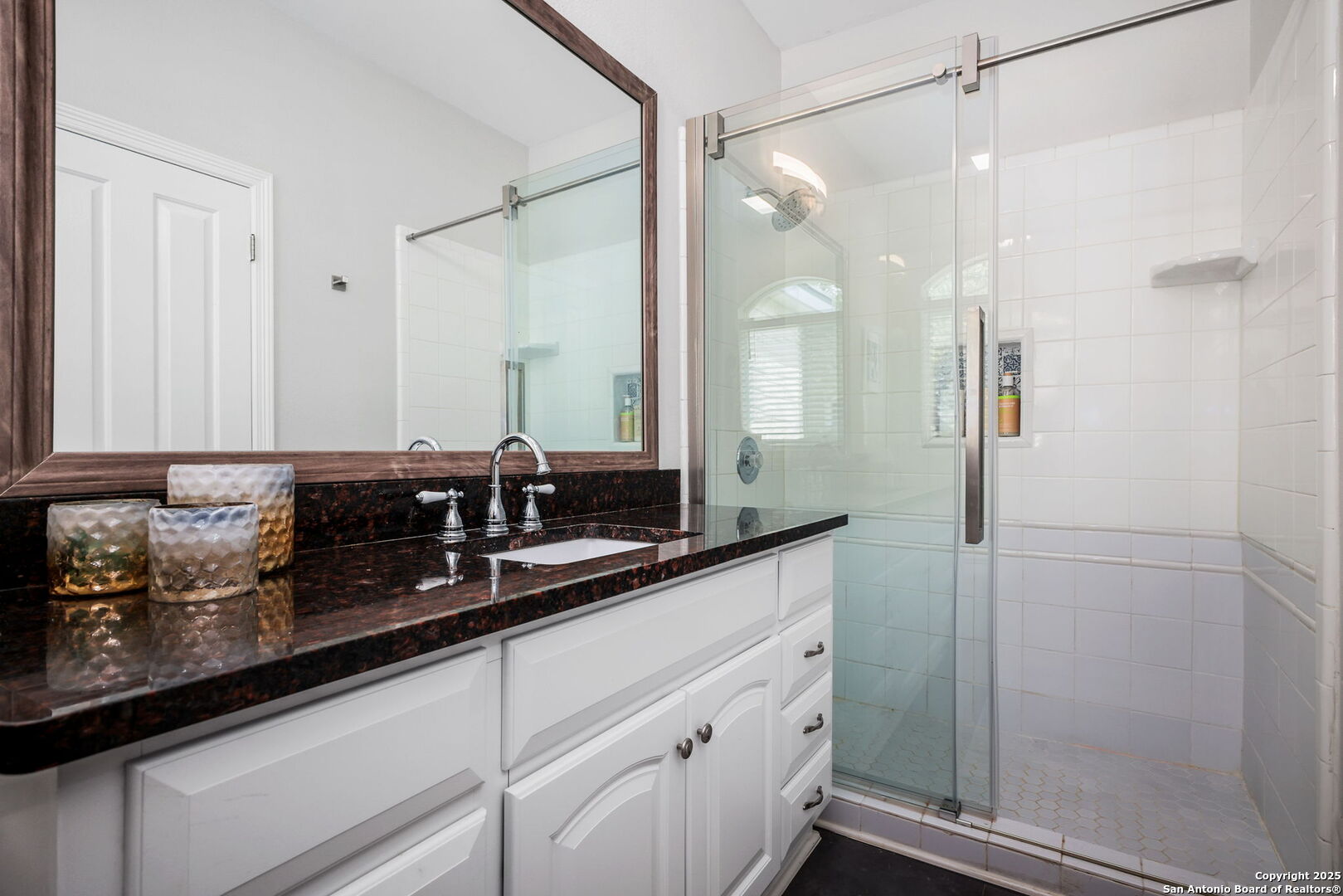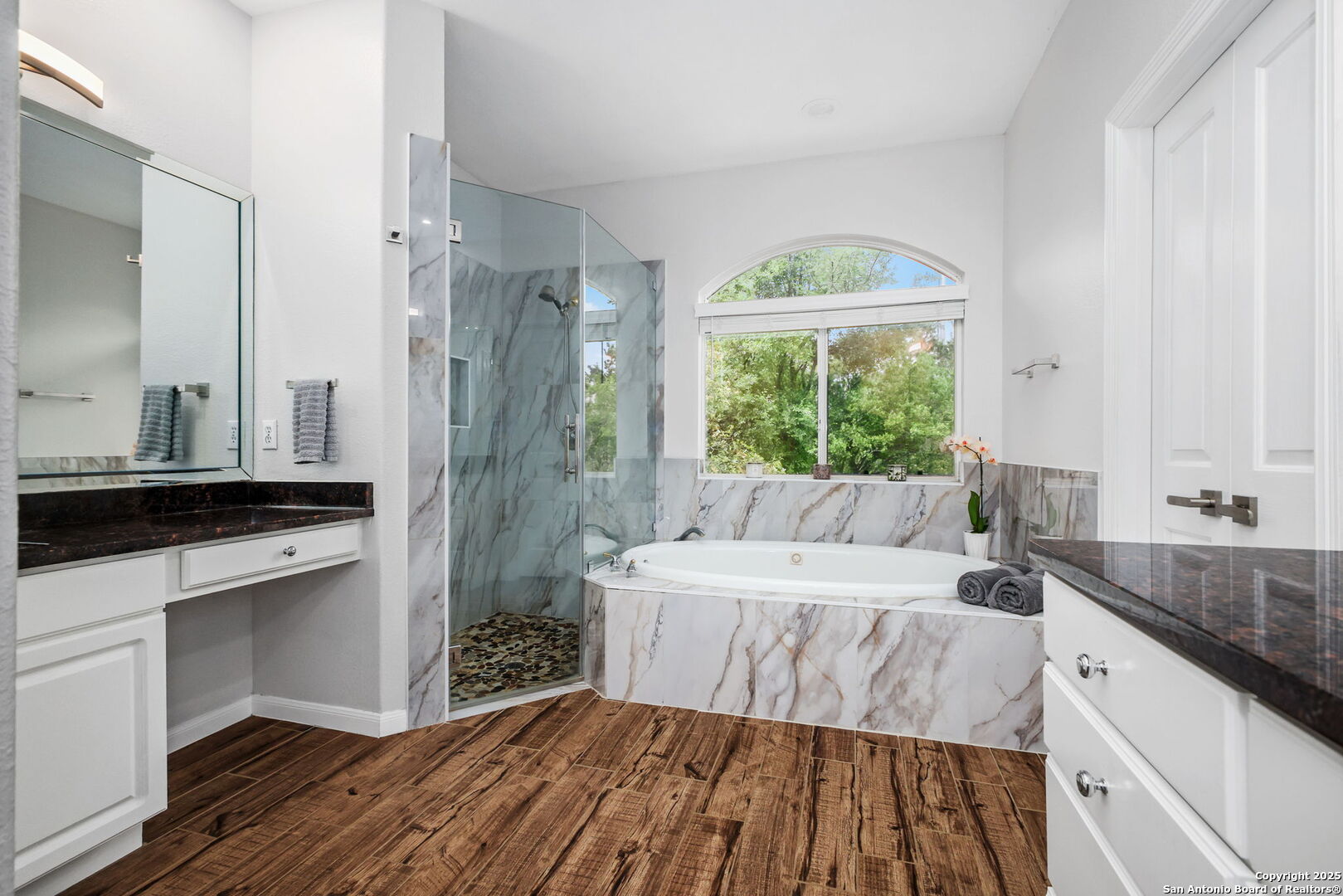Extra 1,396 sqft living space including a brand new Casita. Welcome to The Pinnacle, a prestigious gated community in the heart of Stone Oak, San Antonio, TX. Conveniently located in a cul-de-sac at The Pinnacle subdivision, near Blanco Road, just minutes from 1604 and 281, and close to Stone Oak's premier shopping, dining, and entertainment options. Nestled on a 3/4-acre wooded lot, this stunning Single-Story residence boasts mature oak trees and a serene atmosphere, making the backyard a true oasis. The beautifully designed Keith Zars pool and Spa are perfect for hot summer days, while the expansive terraces offer unobstructed views of the private forest backyard. Main Residence Features: Open floor plan with large living and dining areas filled with natural lights, expansive game room/media room, gourmet kitchen with Jennair appliances and central island. 5 spacious bedrooms, with 3 en-suite bathrooms, 1 full bath and 1 additional half bathroom. Carefree, high-end flooring throughout, including luxury ceramic, modern vinyl planks, and premium hardwood flooring, with no carpet and no stairs, built-in gas fireplaces in living and family room, premium wireless audio connectivity and built-in speakers in living, dining, media room, and pool terrace. Water softener, and new efficient lighting throughout the entire house. The main house was fully remodeled and upgraded in 2023, with a brand-new addition completed in 2025, detached Casita/Guest House and Garage; Casita with master bedroom, full bathroom, efficient built-in kitchen, and bar-coffee station. Spacious living area with fireplace, perfect for entertaining, extra-large, flexible 3-car garage with ample storage space, premium lighting and wireless audio/speakers in living room. Additional features on Casita; highly efficient spray-foam insulation throughout, new HVAC and water heater, new plumbing and electricity, new metal roof. Upcoming Community Upgrade; Google Fiber is coming soon to the neighborhood!