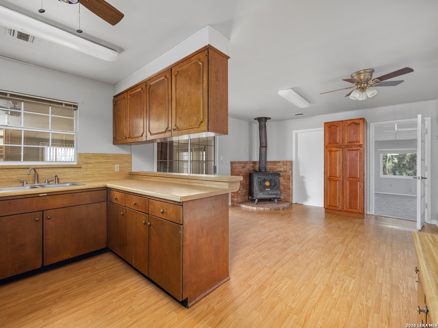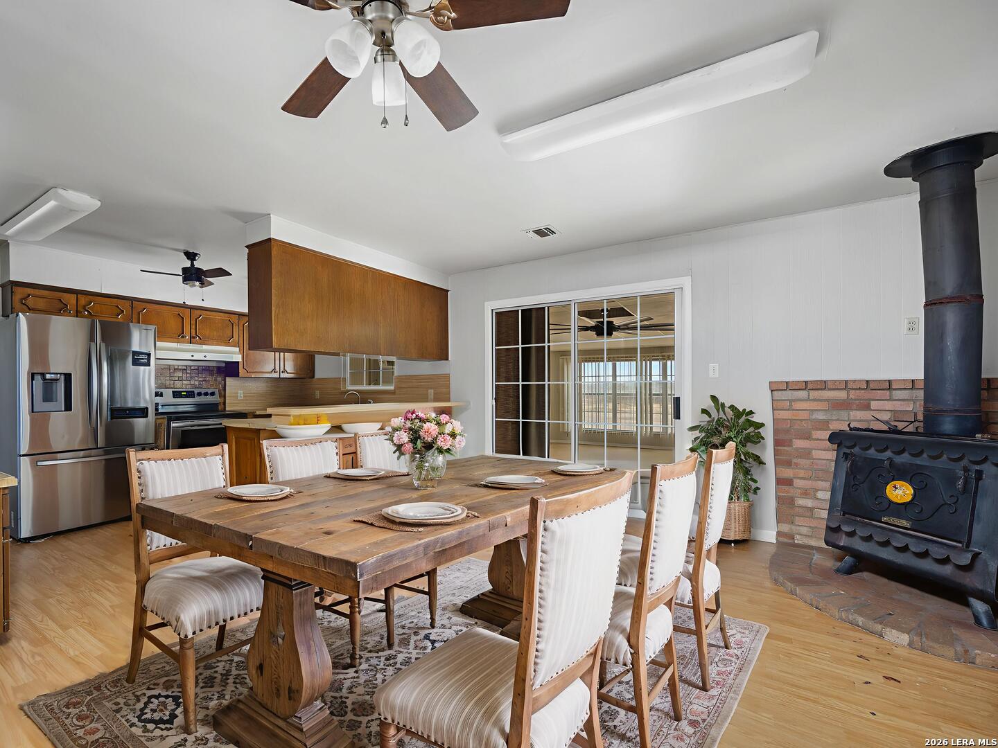 Spacious country living on over 12 acres in Von Ormy, TX, conveniently located off Highway 16 South. This property offers 3 bedrooms plus an additional flexible room that can be used as a 4th bedroom, office, or hobby space, with over 2,500 square feet of living area. The home features two living areas and two dining areas, providing ample space for everyday living and entertaining. Central air and heat are complemented by a vintage wood-burning stove for added character. Exterior features include a durable metal roof, a large workshop with carport, and a newly installed driveway extending from the entrance to the home. The fully fenced property is ready for livestock and offers plenty of open space and privacy. Located within Somerset ISD.