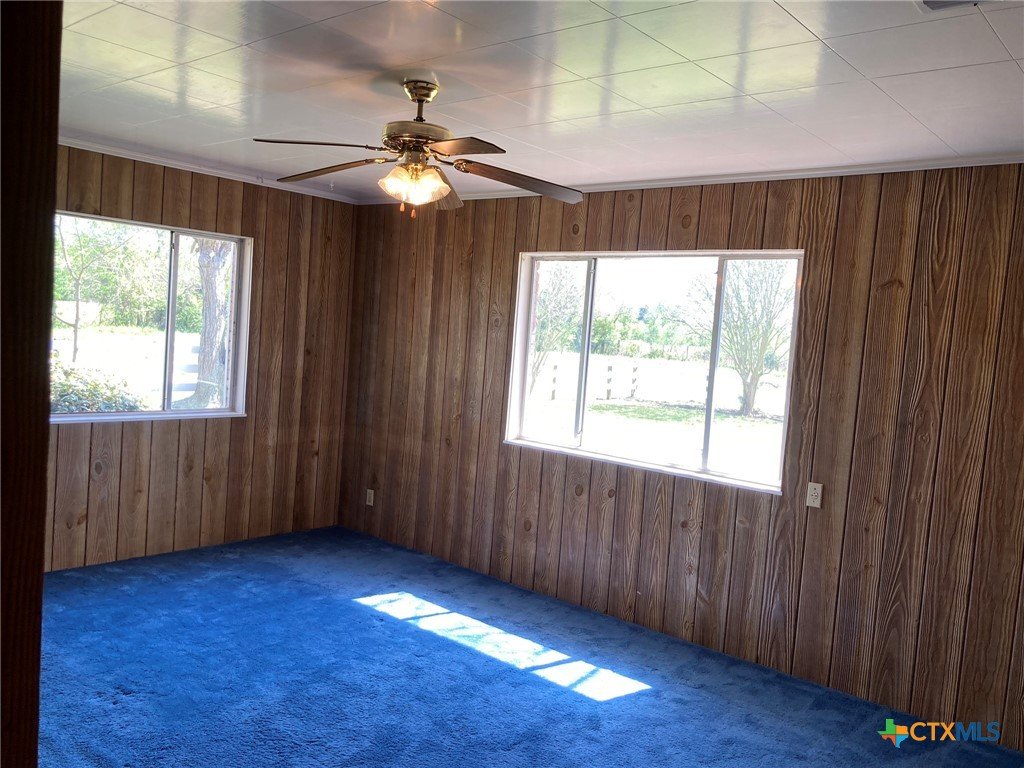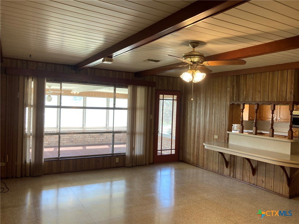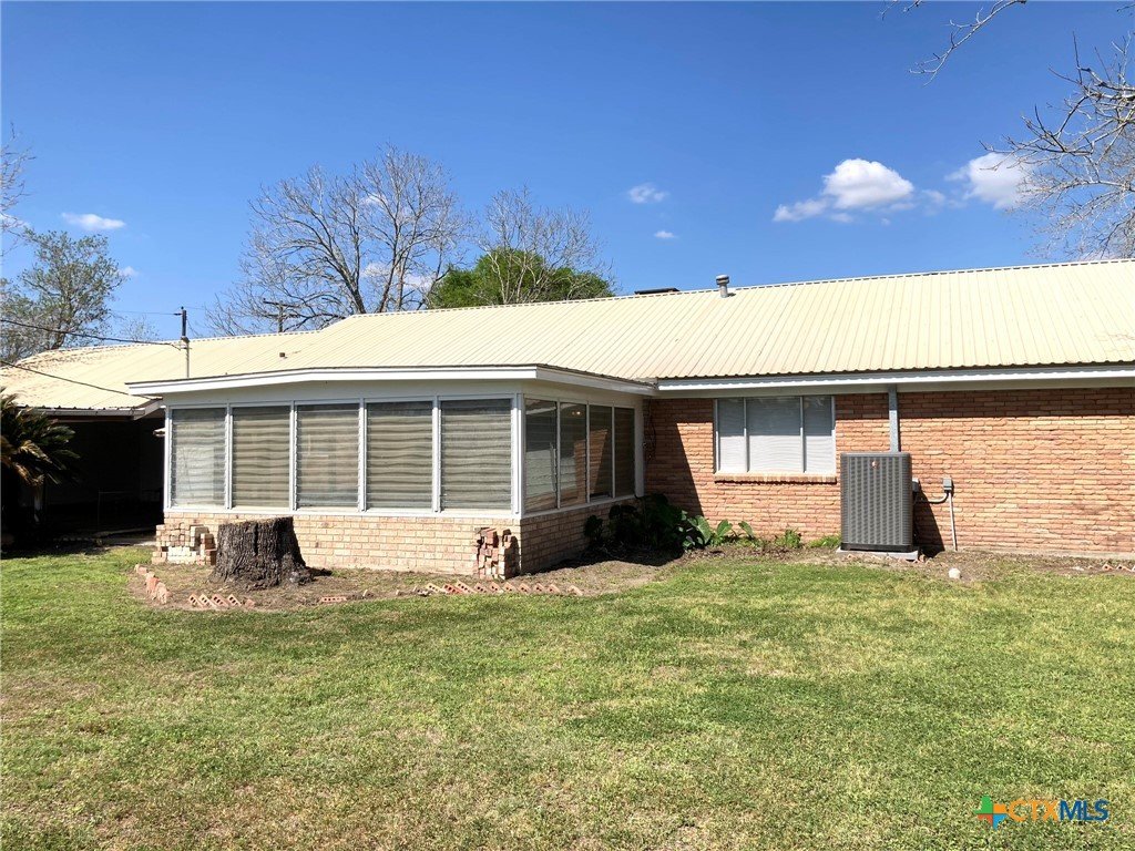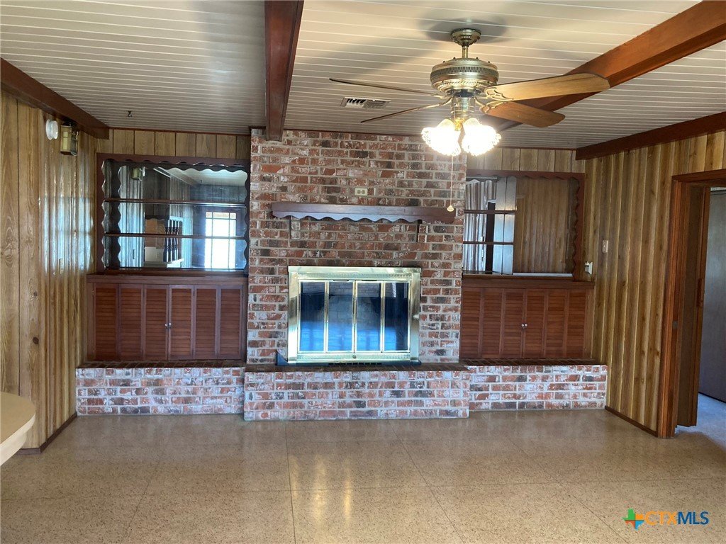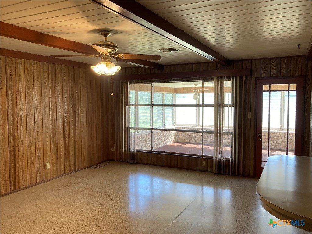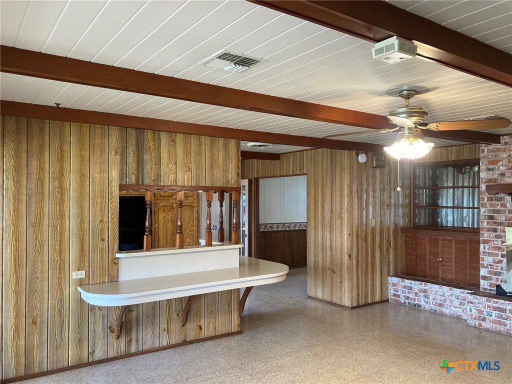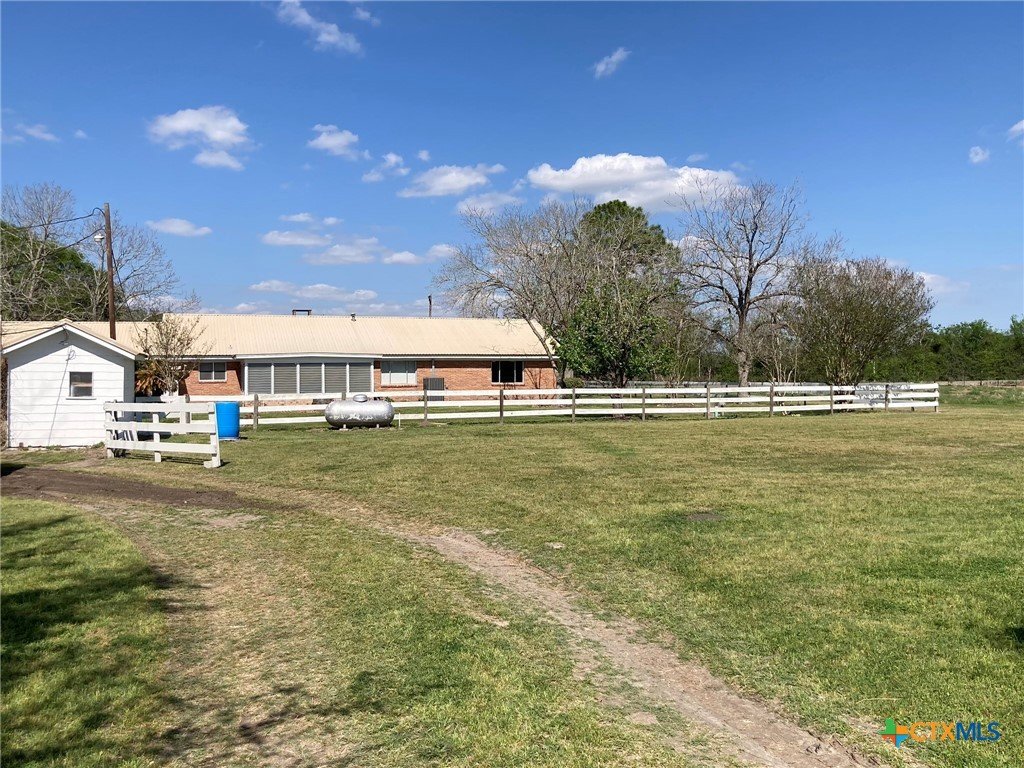 **Motivated Seller** Welcome to your own slice of country living in this 3 bedroom, 2 bath home on 4.9 acres, just outside the Edna city limits. This property offers endless opportunities for 4H projects or simply enjoying wide open spaces. This home was owned by one of Edna's most established builders, Louis Muschalek, who built the house for his family in 1963. Step inside this classic vintage home where you will find expertly crafted wood and Emerwood accent walls and custom ceilings that feature checkerboard designs, scored plywood, wood beams and tongue & groove treatments, bringing character to each room. Terrazzo tile floors and a brick fireplace flanked by custom cabinetry on each side elevate the space with texture and warmth. Recent updates include a new HVAC system and exterior paint in 2024 and a new hot water heater in 2025. A metal roof, a workshop with built in cabinets & workbench and an aerobic septic system complete the space. This well maintained home showcases the original design elements and is ready for your own personal touch. A recent appraisal shows the living area to be 2229 square feet.