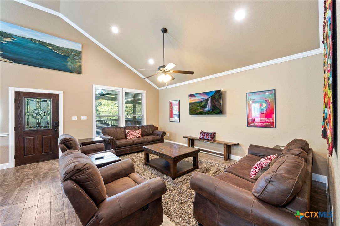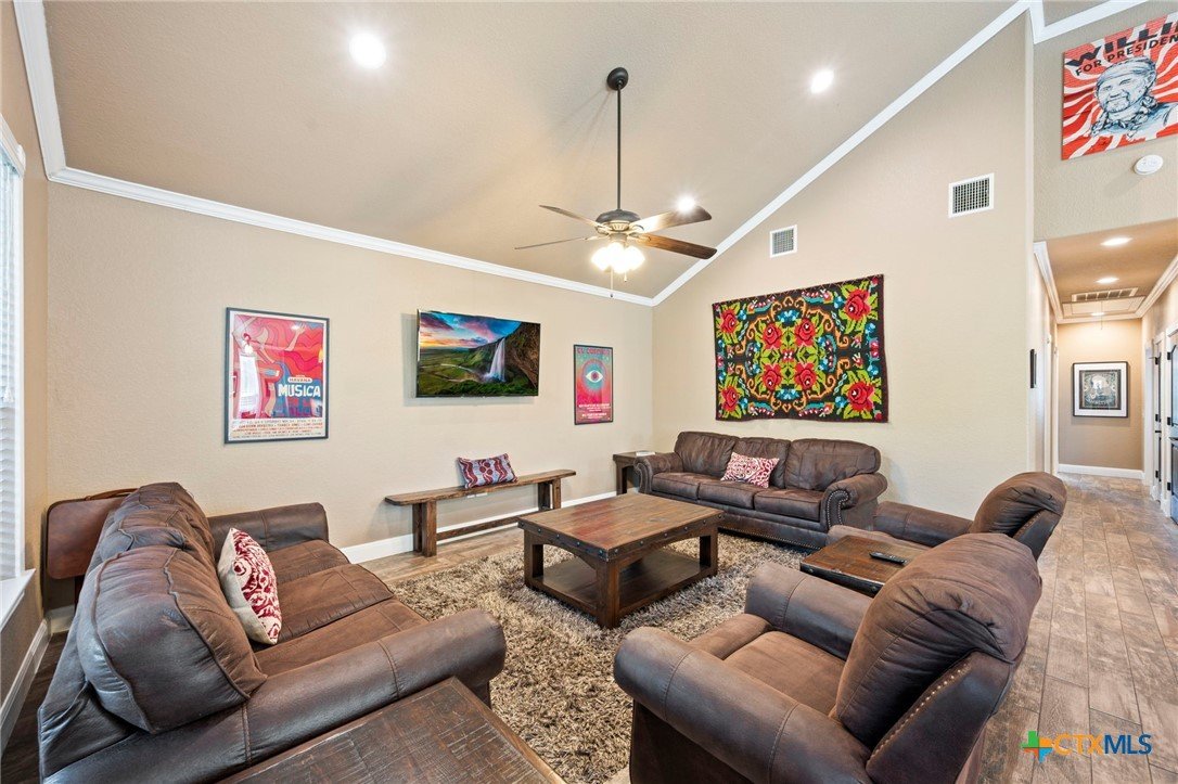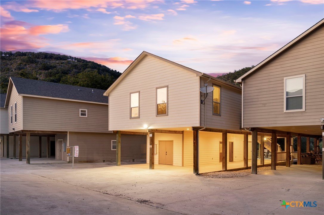 Tucked along the banks of the Guadalupe River, this beautifully designed 4-bedroom, 3-bath home offers the perfect blend of Hill Country relaxation and vacation rental opportunity. Located in a gated community with private river access, this detached condo is ideal for those who love the water, entertaining, and the laid-back charm of New Braunfels living. Step inside to an open-concept layout with soaring ceilings and a spacious kitchen featuring a large island that is perfect for gathering with friends and family. The home features two full kitchens, including one downstairs that is designed for outdoor entertaining and dining after a day on the river. Multiple decks on both the upper and lower levels extend the living space outdoors, creating a seamless connection between the home and its natural surroundings. Currently set up to comfortably sleep 14 guests, this property functions beautifully as a short-term rental or a personal getaway for weekends on the water. From tubing and live music at Whitewater Amphitheater to shopping and dining in Gruene, or family fun at Schlitterbahn, you are minutes from some of New Braunfels’ most loved attractions. Whether you are looking for an income-producing investment, a riverfront retreat, or a little bit of both, 198 River Villas Court delivers the ultimate river lifestyle in the heart of the Texas Hill Country.
