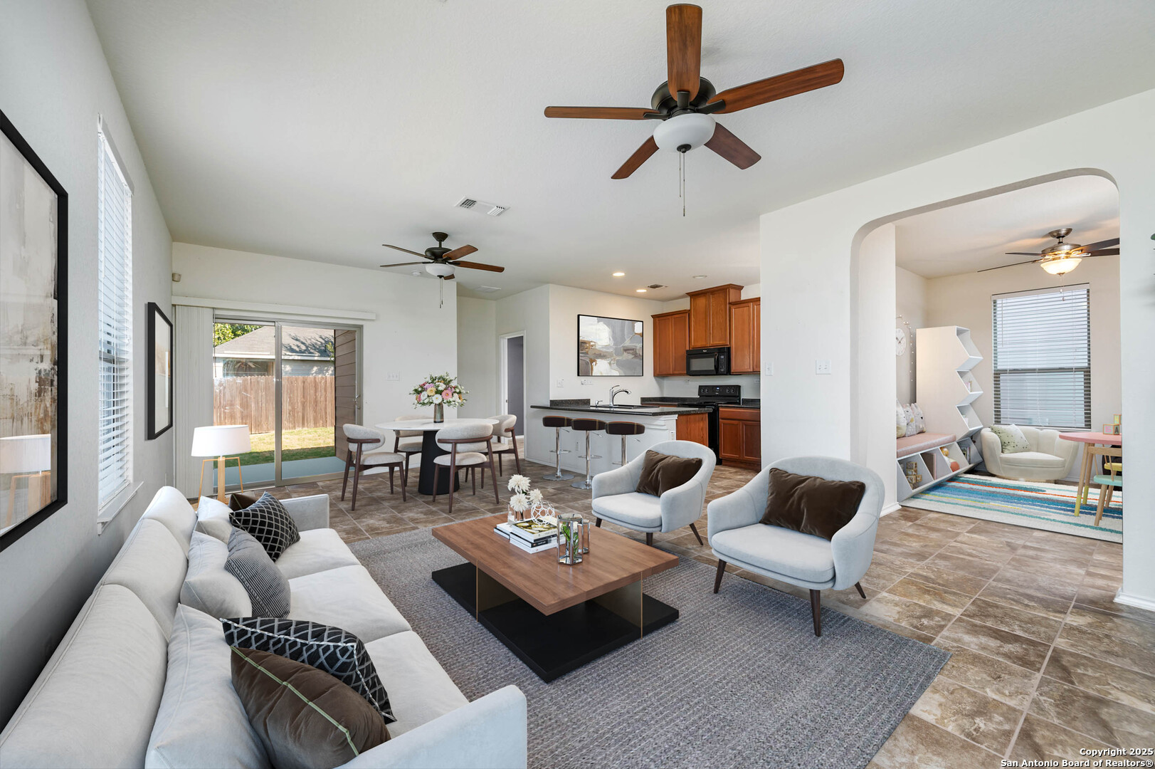 Welcome home to this sunlit 3 bedroom, 2 bathroom residence set on a generous corner lot directly across from the neighborhood pool. An open layout connects the living, dining, and kitchen spaces-perfect for everyday living or hosting. The private primary suite offers a relaxing retreat, while two secondary bedrooms provide flexible space for guests, work, or hobbies. Outside, a fenced yard and covered patio invite easy outdoor time. With a two-car garage and convenient access to community amenities, this home blends comfort and convenience in a fantastic location.