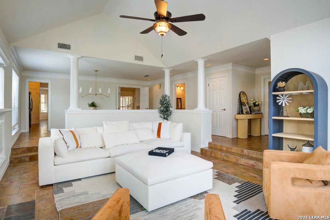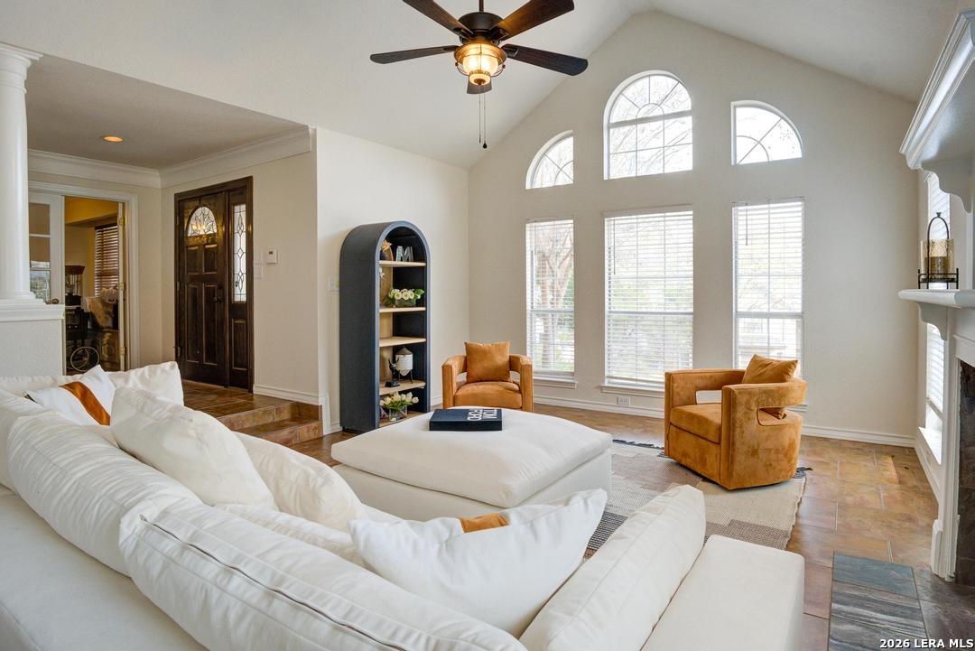 Welcome to this spacious 4-bedroom home offering over 3,000 square feet of thoughtfully designed living space. The open floor plan creates a seamless flow between the main living areas, making it perfect for both everyday living and entertaining. Generous living spaces and abundant natural light make this home feel both inviting and functional. Step outside and discover the true gem of the property-the expansive fenced backyard. Situated on nearly half an acre, this outdoor retreat offers plenty of room to relax, play, and entertain. Enjoy quiet mornings or evening gatherings on the lovely, screened porch, surrounded by gorgeous landscaping and a charming gazebo that brings the entire outdoor space together. Just around the corner is I10, Six Flags, The Rim, La Cantera, and Crownridge Canyon Park.