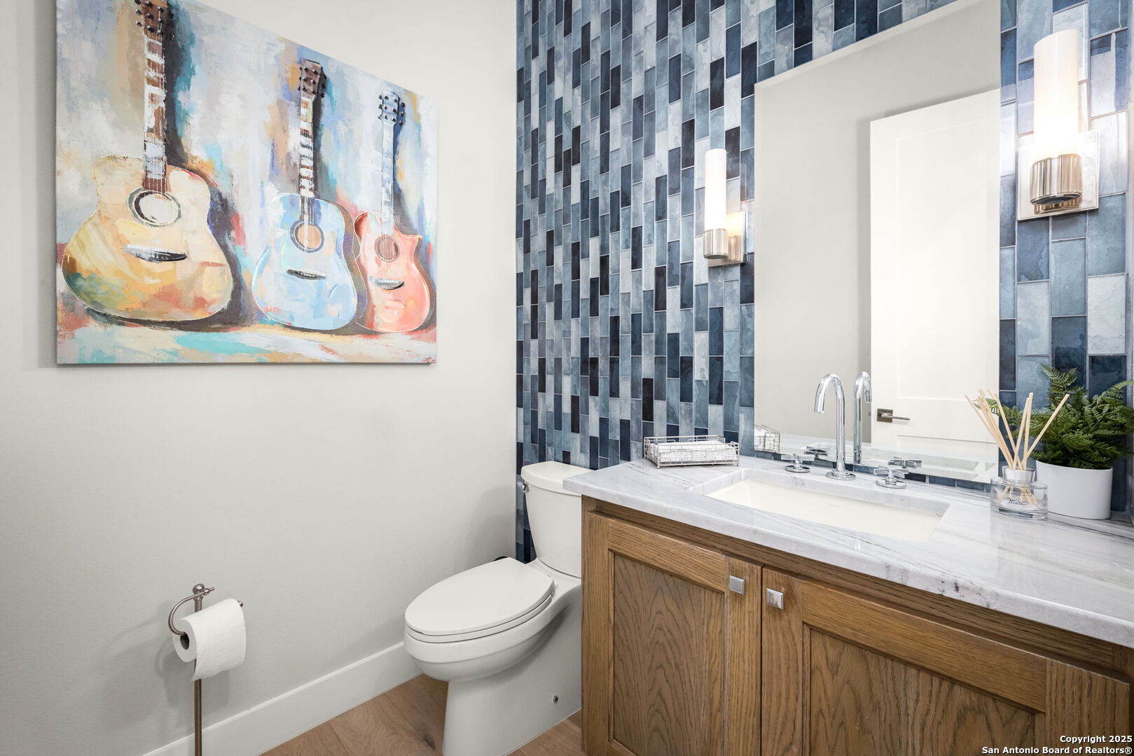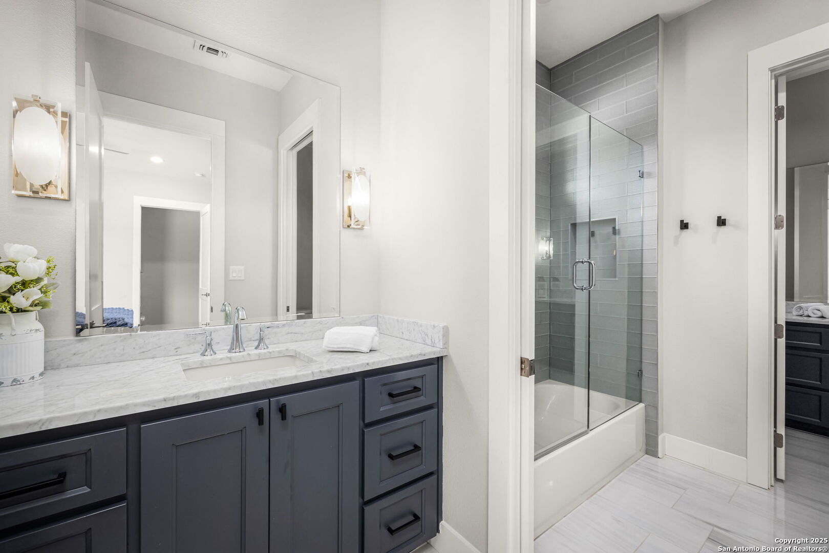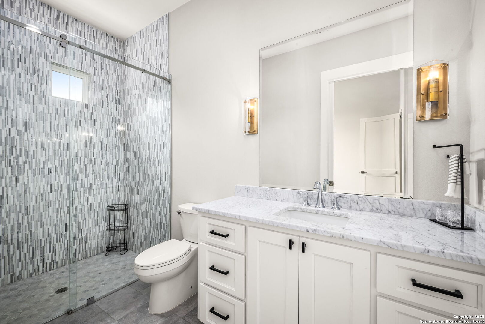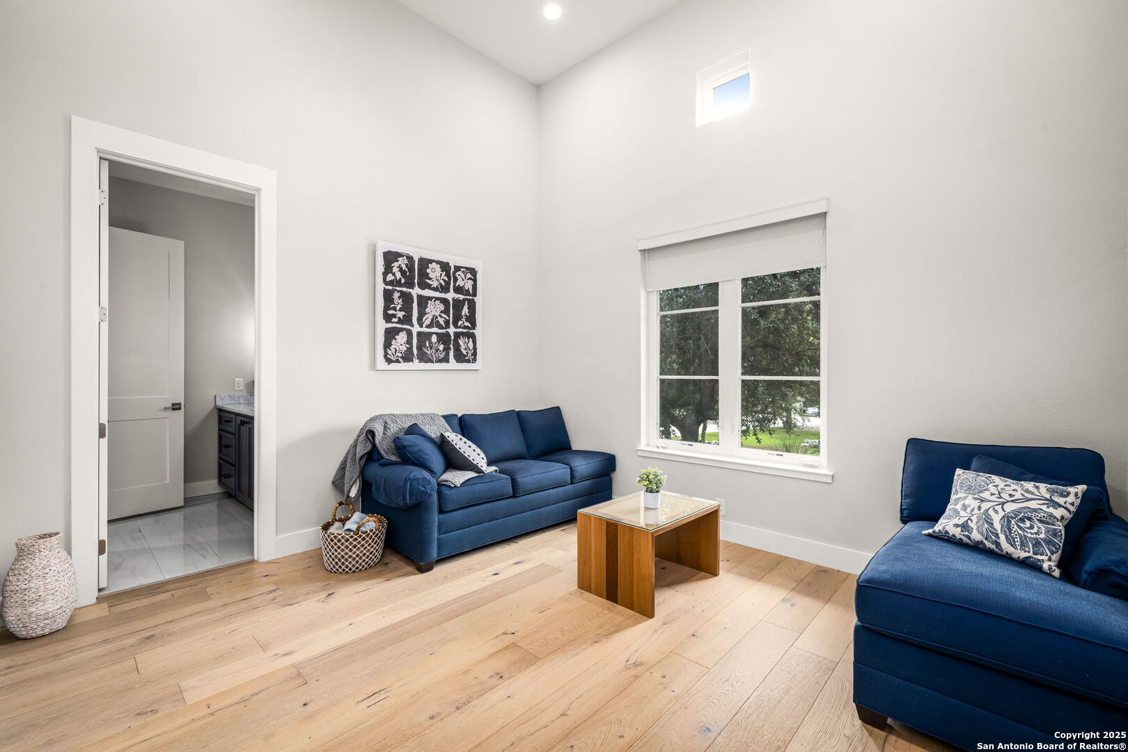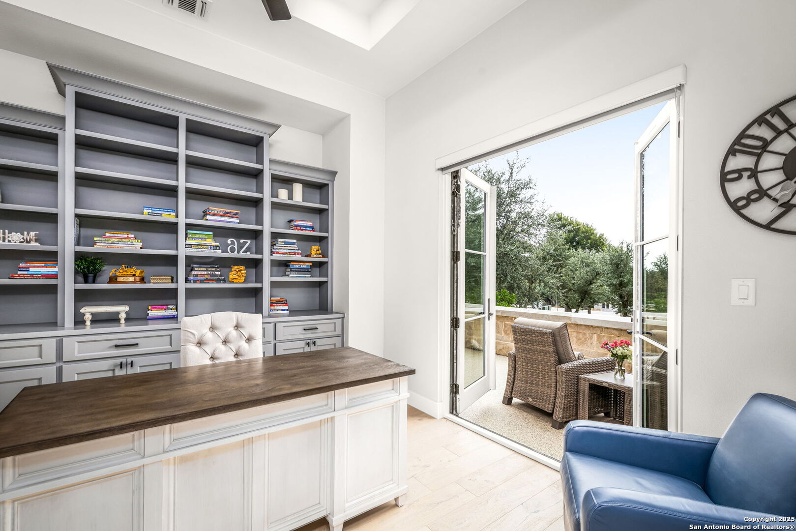 Hill Country Living, Elevated! Luxury and modern touches come together in this custom one-story home in Vintage Oaks. Behind the iron and glass pivot door, white oak floors flow through an open design where a stone fireplace, wood beams, and retractable glass doors create a seamless blend of indoor and outdoor living. The chef's kitchen impresses with Viking appliances, dual islands, and abundant cabinetry, while the master retreat offers private outdoor access and a spa-like bath featuring a walk-through shower, marble accents and soaking tub. A guest suite and Jack-and-Jill bedrooms ensure comfort for family and friends. Outdoors, enjoy a covered patio with fireplace and grill, a fully landscaped yard, and an oversized three-car garage. From quiet mornings to evenings under the Hill Country sky, this home invites you to embrace a lifestyle of beauty and ease.