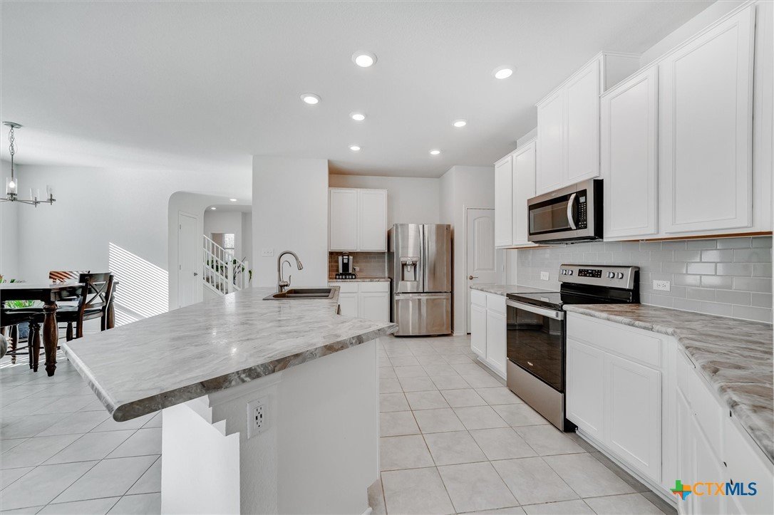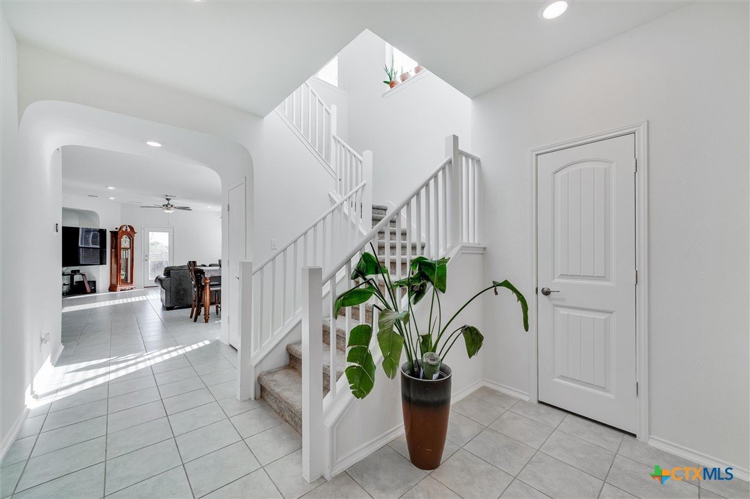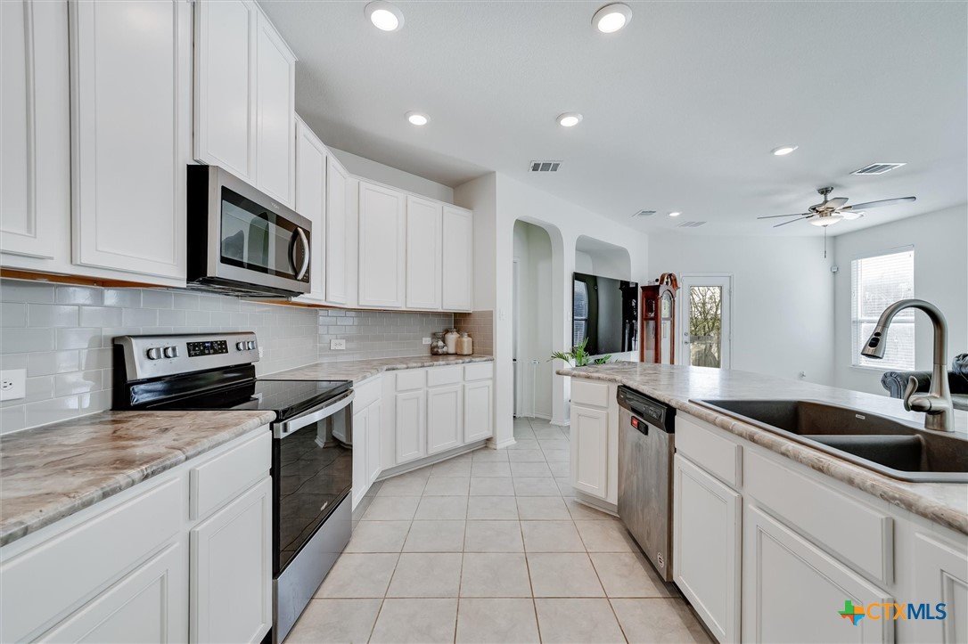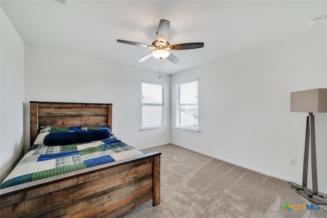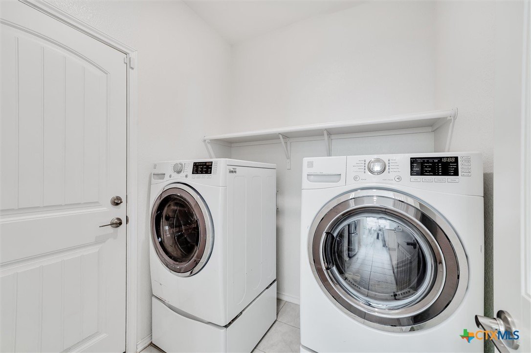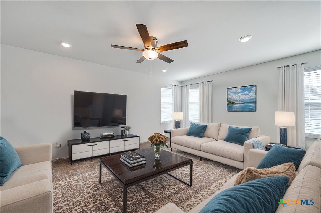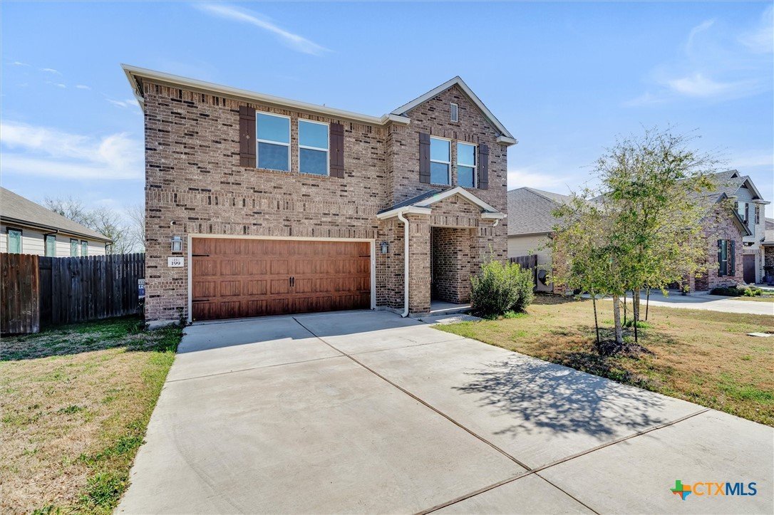 Welcome to 199 Ella Marie, a charming two-story home just outside Kyle, TX, offering a perfect blend of modern comfort and functional design. This spacious residence features 4 bedrooms, 2.5 bathrooms, and a layout designed for both everyday living and entertaining. Step inside to discover a bright and inviting interior with tile flooring throughout the main living areas, creating a durable and stylish foundation for your home. The kitchen is a standout, featuring white cabinets, high-definition laminate countertops, and a subway tile backsplash that adds a touch of timeless elegance. A walk-in pantry provides ample storage, while the open-concept design seamlessly connects the kitchen to the living and dining areas, making it perfect for gatherings. The primary bedroom is conveniently located on the main floor, offering a peaceful retreat with a large en-suite bathroom. The bathroom includes dual vanities with granite counters, a spacious walk-in shower with upgraded tile, and a large walk-in closet for all your storage needs. Additionally, the first floor includes a half bathroom with a pedestal sink, ideal for guests. Upstairs, you’ll find a large game room—perfect for a media lounge, play area, or home office—along with three additional bedrooms and a full bathroom featuring a tub/shower combo. This versatile layout ensures plenty of space for family, guests, or hobbies. Outside, the covered back porch offers a relaxing spot to enjoy your morning coffee or evening breeze, while the large, level backyard provides endless possibilities for outdoor activities, gardening, or future upgrades. Located in a vibrant community, this home is just a short walk from the neighborhood park, sports courts, and playground, making it ideal for families and outdoor enthusiasts. With an easy commute to Austin, Kyle, Buda, Lockhart, and Bastrop, you’ll enjoy the perfect balance of suburban tranquility and urban convenience.