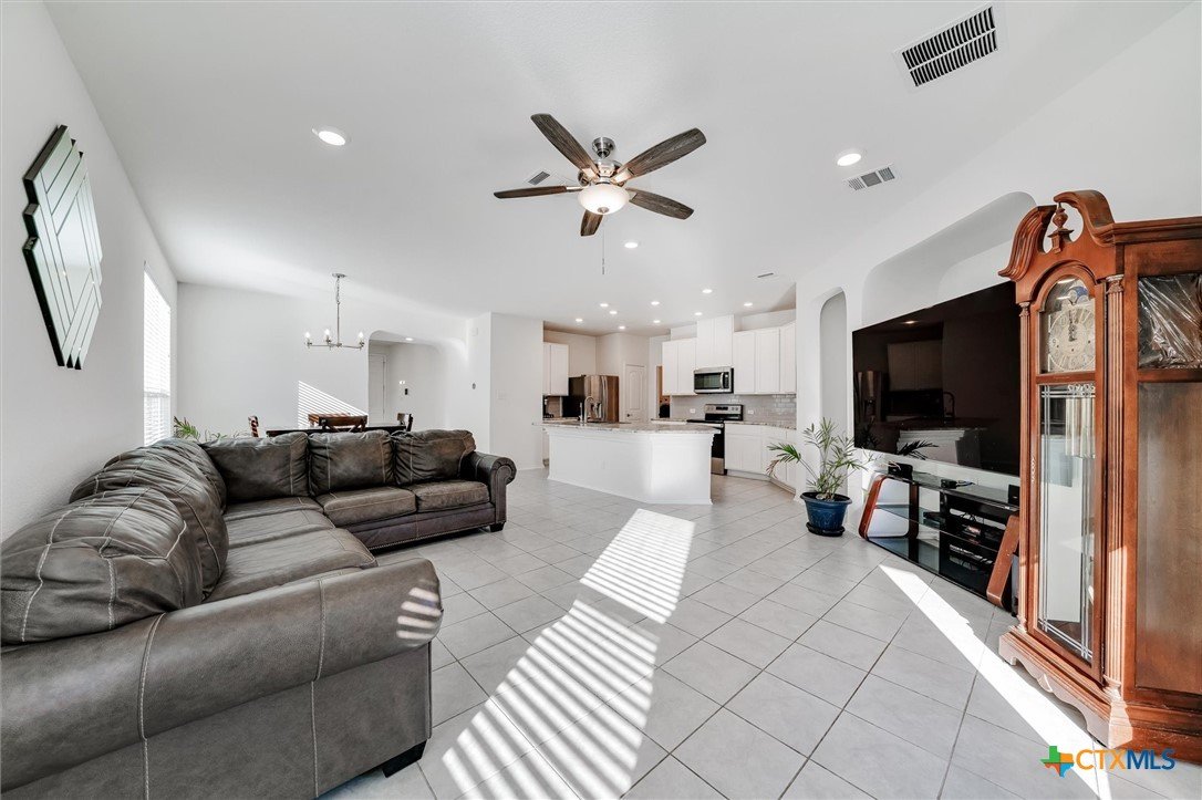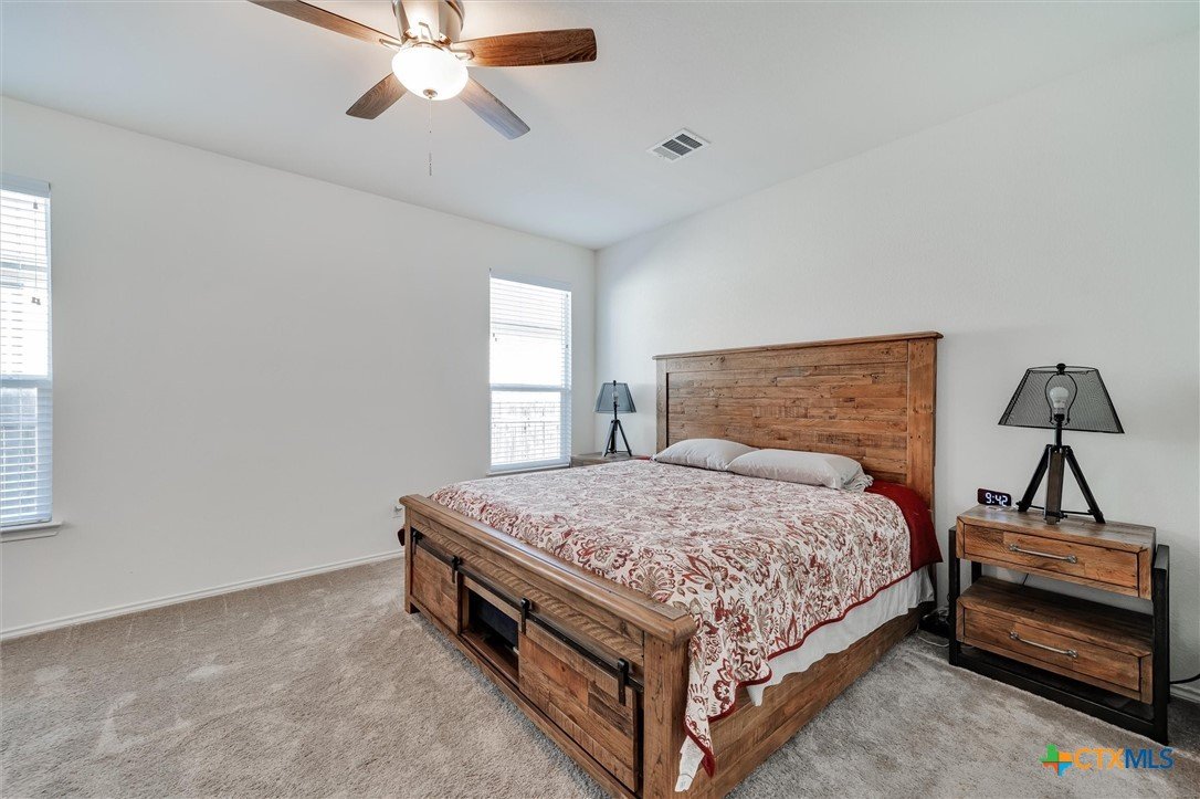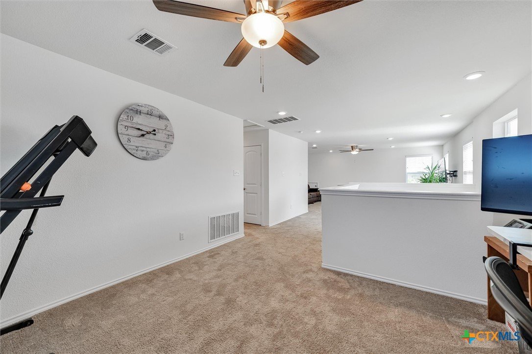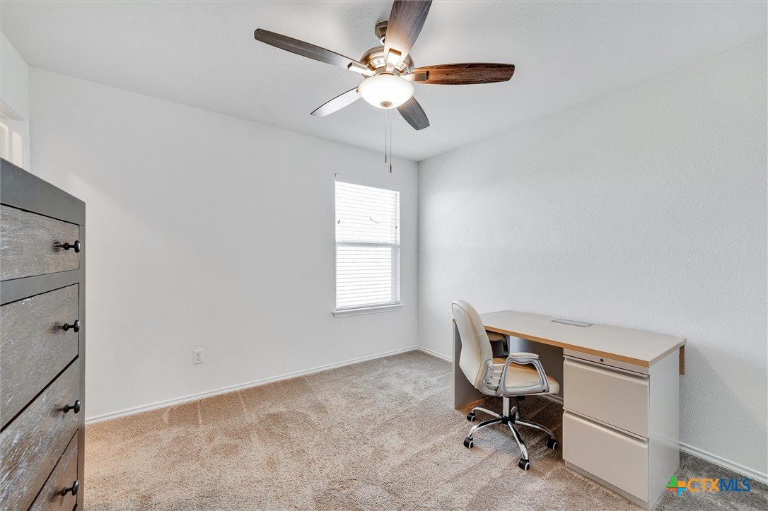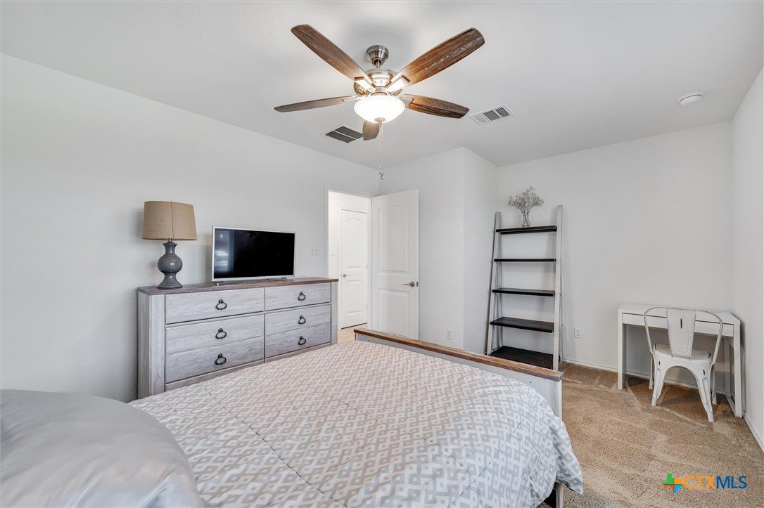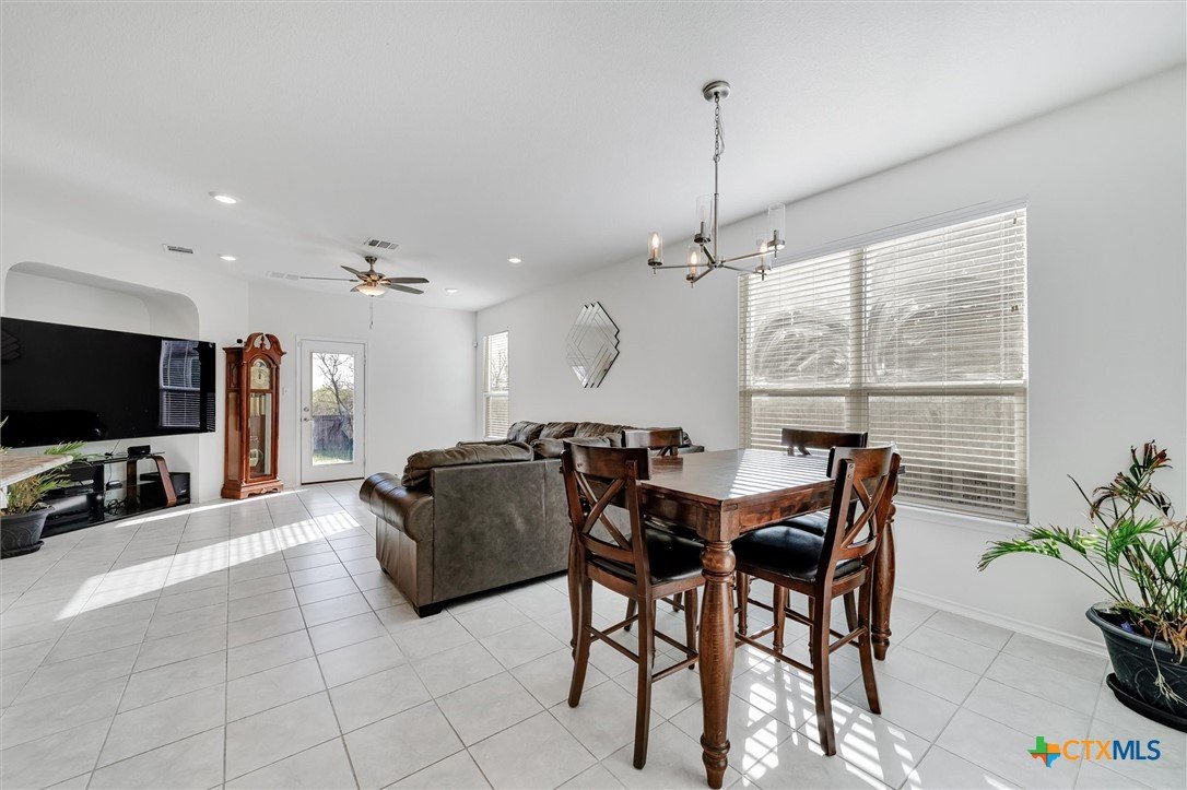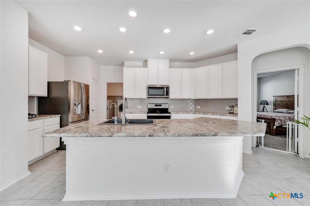 Welcome to 199 Ella Marie, a charming two-story home just outside Kyle, TX, offering a perfect blend of modern comfort and functional design. This spacious residence features 4 bedrooms, 2.5 bathrooms, and a layout designed for both everyday living and entertaining. Step inside to discover a bright and inviting interior with tile flooring throughout the main living areas, creating a durable and stylish foundation for your home. The kitchen is a standout, featuring white cabinets, high-definition laminate countertops, and a subway tile backsplash that adds a touch of timeless elegance. A walk-in pantry provides ample storage, while the open-concept design seamlessly connects the kitchen to the living and dining areas, making it perfect for gatherings. The primary bedroom is conveniently located on the main floor, offering a peaceful retreat with a large en-suite bathroom. The bathroom includes dual vanities with granite counters, a spacious walk-in shower with upgraded tile, and a large walk-in closet for all your storage needs. Additionally, the first floor includes a half bathroom with a pedestal sink, ideal for guests. Upstairs, you’ll find a large game room—perfect for a media lounge, play area, or home office—along with three additional bedrooms and a full bathroom featuring a tub/shower combo. This versatile layout ensures plenty of space for family, guests, or hobbies. Outside, the covered back porch offers a relaxing spot to enjoy your morning coffee or evening breeze, while the large, level backyard provides endless possibilities for outdoor activities, gardening, or future upgrades. Located in a vibrant community, this home is just a short walk from the neighborhood park, sports courts, and playground, making it ideal for families and outdoor enthusiasts. With an easy commute to Austin, Kyle, Buda, Lockhart, and Bastrop, you’ll enjoy the perfect balance of suburban tranquility and urban convenience.