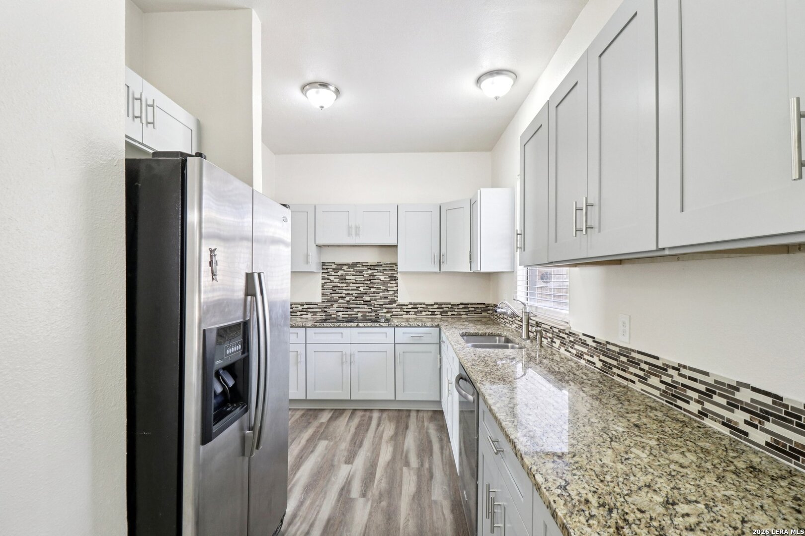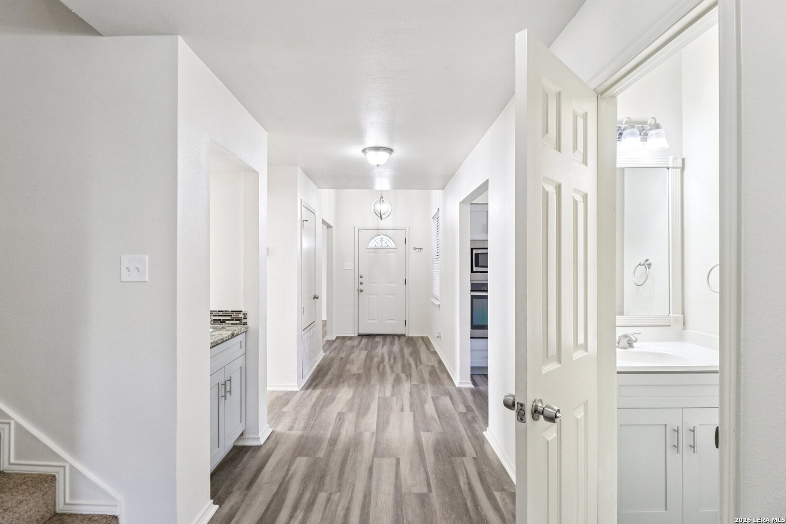 Charming, move-in-ready home in the established Encino Park community offers the perfect space for your family to grow. This home features a family-friendly layout with the primary bedroom downstairs and 3 spacious bedrooms upstairs. The heart of the home is a large living area and dining room joined by a cozy fireplace, ideal for holiday gatherings and movie nights. Newly installed kitchen cabinets with soft-close and stainless steel appliances. New luxury vinyl plank flooring throughout the main areas durable, water-resistant, and easy to clean; newly installed carpet upstairs. Both HVAC units and the water heater are replaced within 2 years. Exterior siding all replaced to include detached garage. Freshly painted. The huge backyard is a private playground shaded by mature trees, featuring a new French drain system and plenty of room for a garden or play set. Beyond your doorstep, the community offers incredible amenities, including a pool, playground, tennis, basketball, and volleyball courts. Centrally located with easy access to Hwy 281 and Loop 1604, you are just minutes from HEB+, Walmart, and family dining. Commutes are a breeze to Randolph AFB, Fort Sam Houston, and local attractions like downtown, Six Flags, or the Riverwalk.