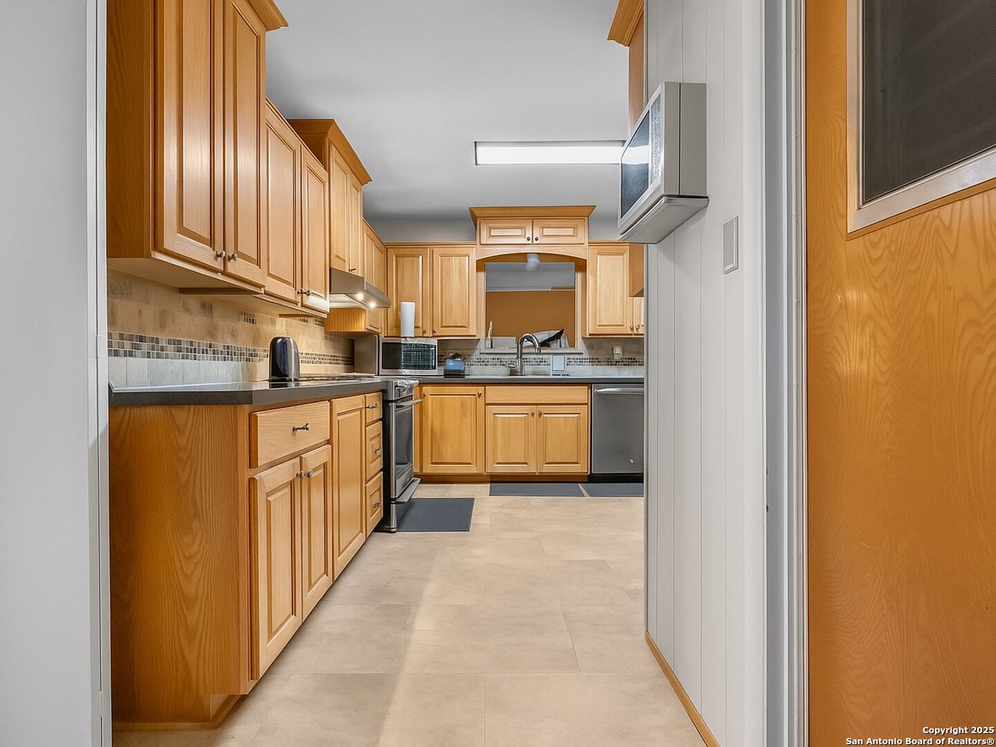Charming Home on "The Hill" - Prime New Braunfels Location. Don't miss this rare opportunity to own a single-story home in a highly sought-after neighborhood. Perfectly positioned on a spacious 0.4 -acre corner lot with mature trees, this 1964 home blends timeless character with modern updates for easy, comfortable living. Newer roof with gutters, updated HVAC system, newer water heater, and tile and vinyl flooring throughout. Kitchen Aid Duel Fuel stove and oven in kitchen. The spacious walk-in laundry room includes utility sink and room for more. Flexible floor plan includes 3 bedrooms, multiple living/dining areas, and a single-level layout for effortless flow. Ample parking and storage with a 2-car attached garage and 2-car carport with separate air-conditioned storage room. Private, fully fenced backyard with covered patio-ideal for relaxing or entertaining. Enjoy easy access to Landa Park, McKenna Children's Museum, Schlitterbahn Waterpark, Comal River, Guadalupe River and Wurstfest. Minutes from HEB and just a short walk to the neighborhood park. Zoned to New Braunfels Independent School District. Convenient to shopping, dining, downtown New Braunfels and the historic district of Gruene. Homes in this area with large lots and extensive updates at this price point are hard to find.