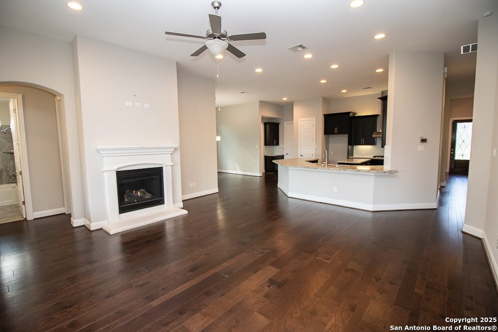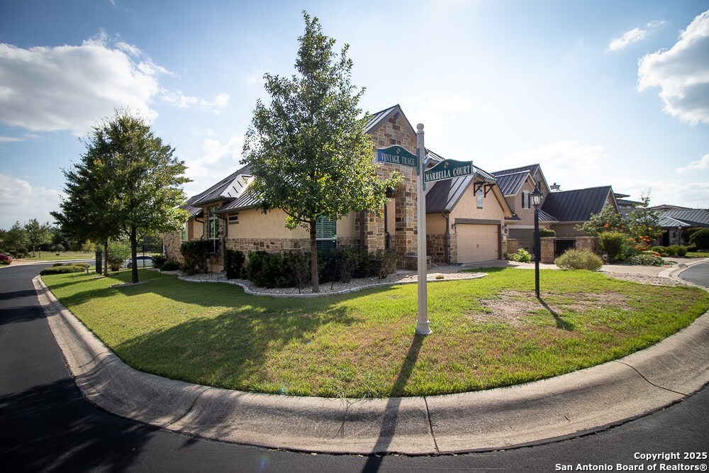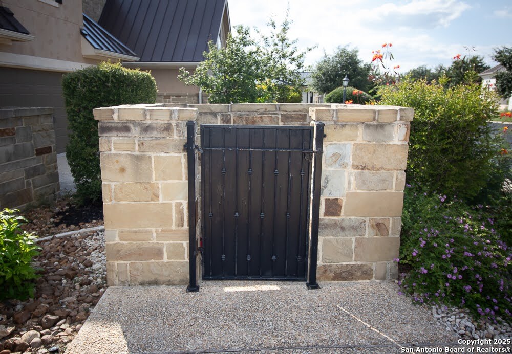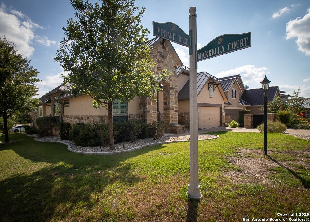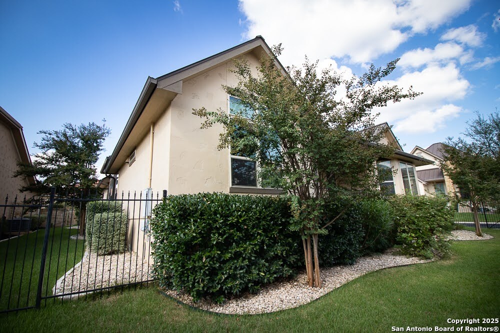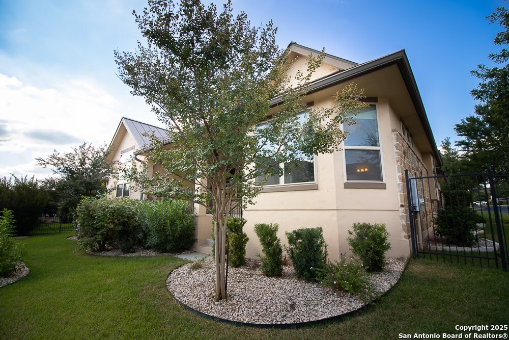 Immaculate family home in THE SANCTUARY of Dominion. Lovely gated community with easy access to IH10 West. Wonderful location. 4 bedroom 3 full bath home with a study. Chefs kitchen with Stainless Kitchen Aid appliance pkg. 6 burner gas cooktop. Beautiful cabinetry and u shaped granite counter tops. Open Concept. Family room has a cantera stone fireplace that has ceramic gas logs for a warm and cozy atmosphere. Lots of Windows. Some have plantation shutters and some have shades. Wood flooring in common areas. Tile in baths. Great covered patio. View of golf course out back. Beautifully landscaped yard with drought tolerant plants. Move in ready. Builders 10 year structural. warranty still in effect. Very energy efficient home.
