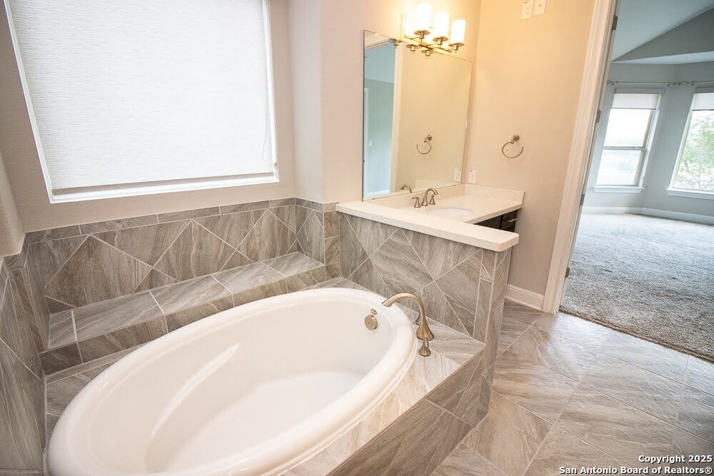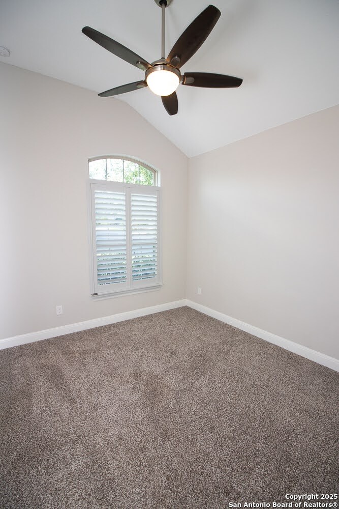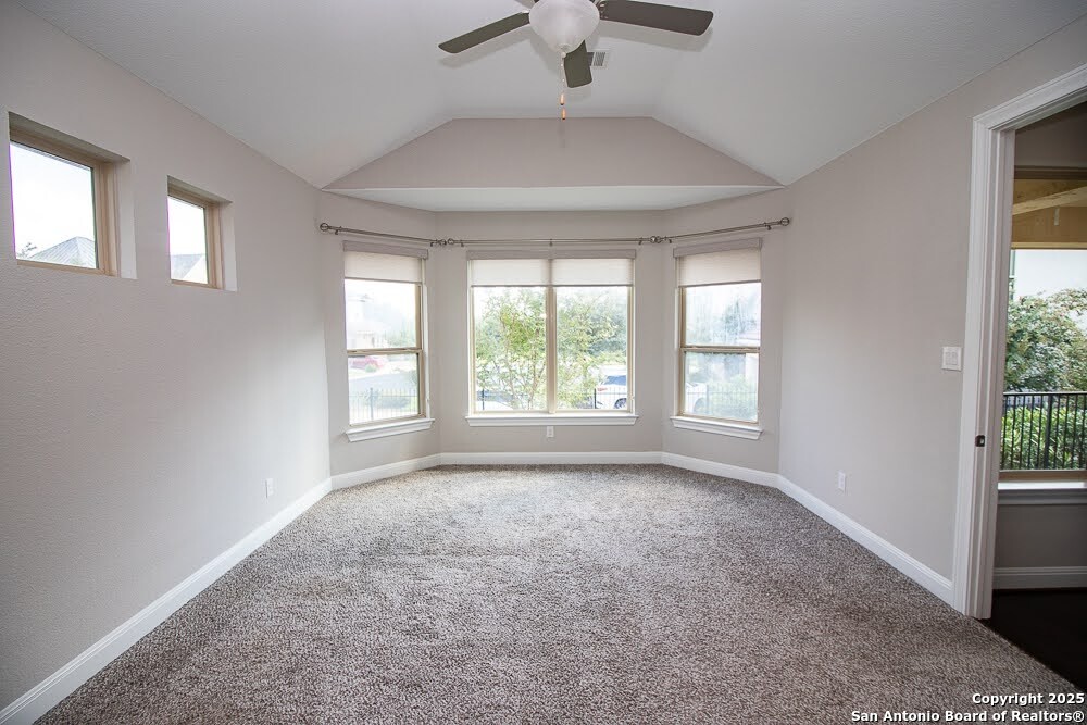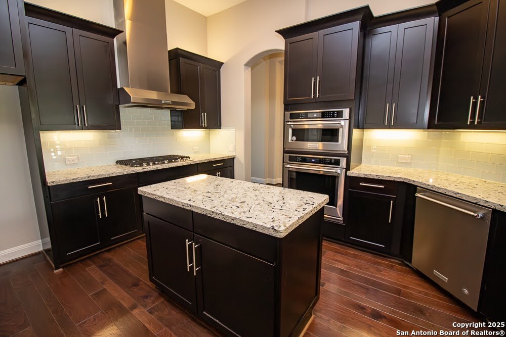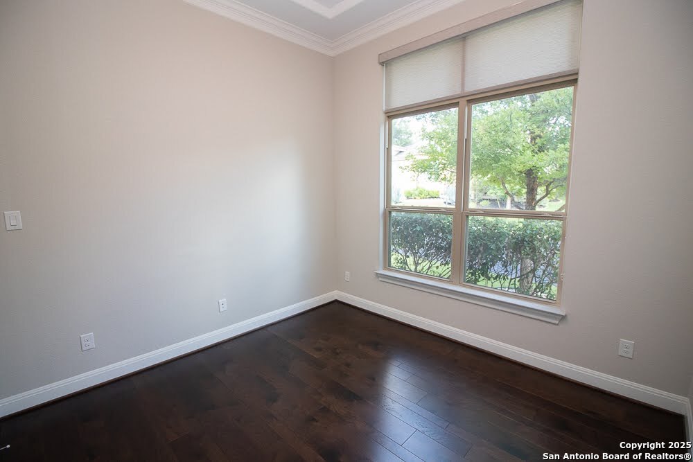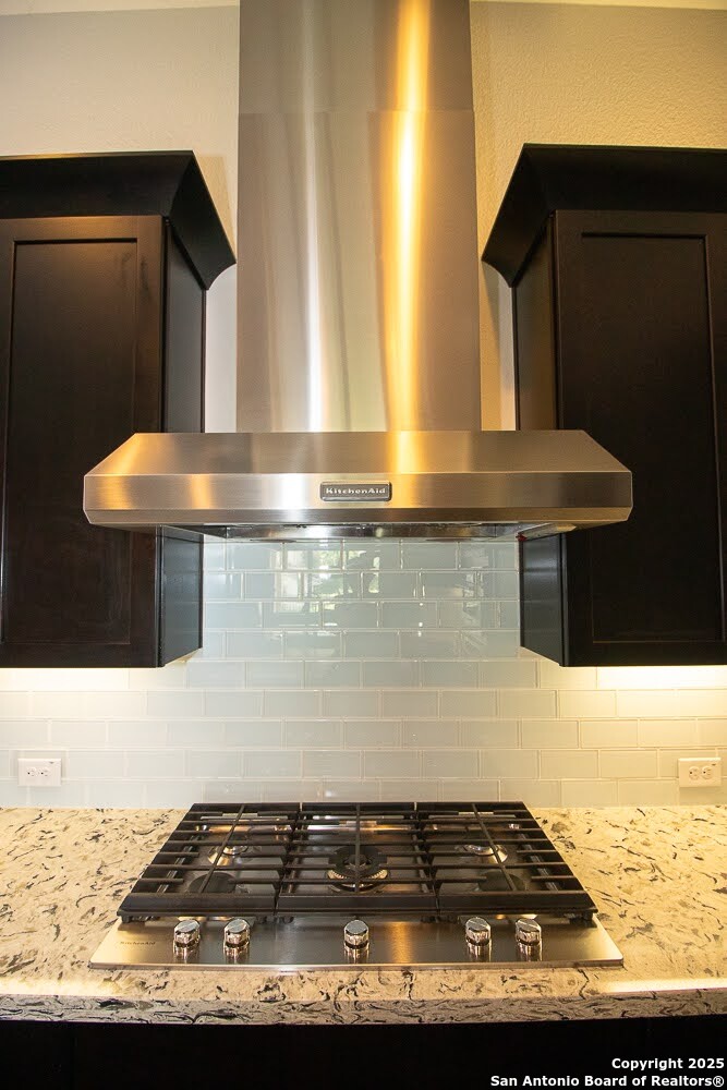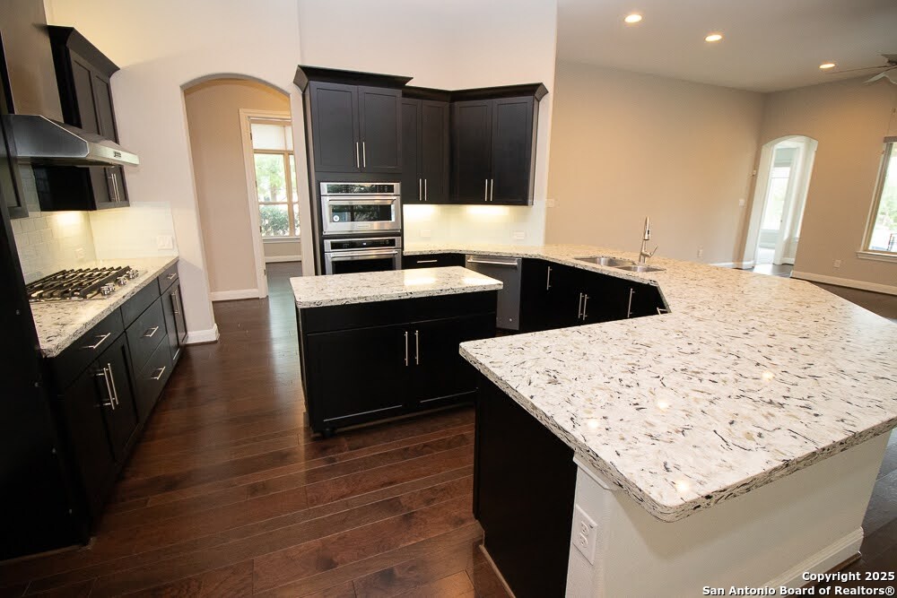 Immaculate family home in THE SANCTUARY of Dominion. Lovely gated community with easy access to IH10 West. Wonderful location. 4 bedroom 3 full bath home with a study. Chefs kitchen with Stainless Kitchen Aid appliance pkg. 6 burner gas cooktop. Beautiful cabinetry and u shaped granite counter tops. Open Concept. Family room has a cantera stone fireplace that has ceramic gas logs for a warm and cozy atmosphere. Lots of Windows. Some have plantation shutters and some have shades. Wood flooring in common areas. Tile in baths. Great covered patio. View of golf course out back. Beautifully landscaped yard with drought tolerant plants. Move in ready. Builders 10 year structural. warranty still in effect. Very energy efficient home.