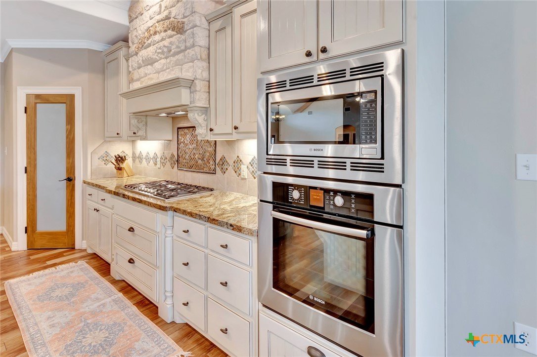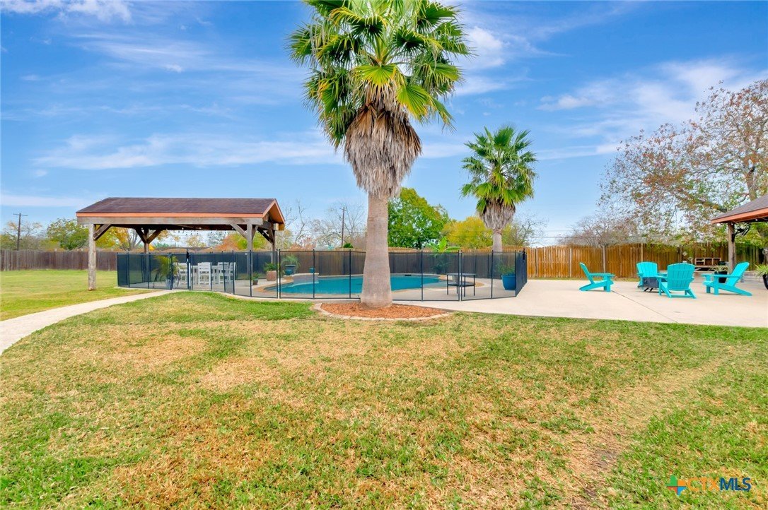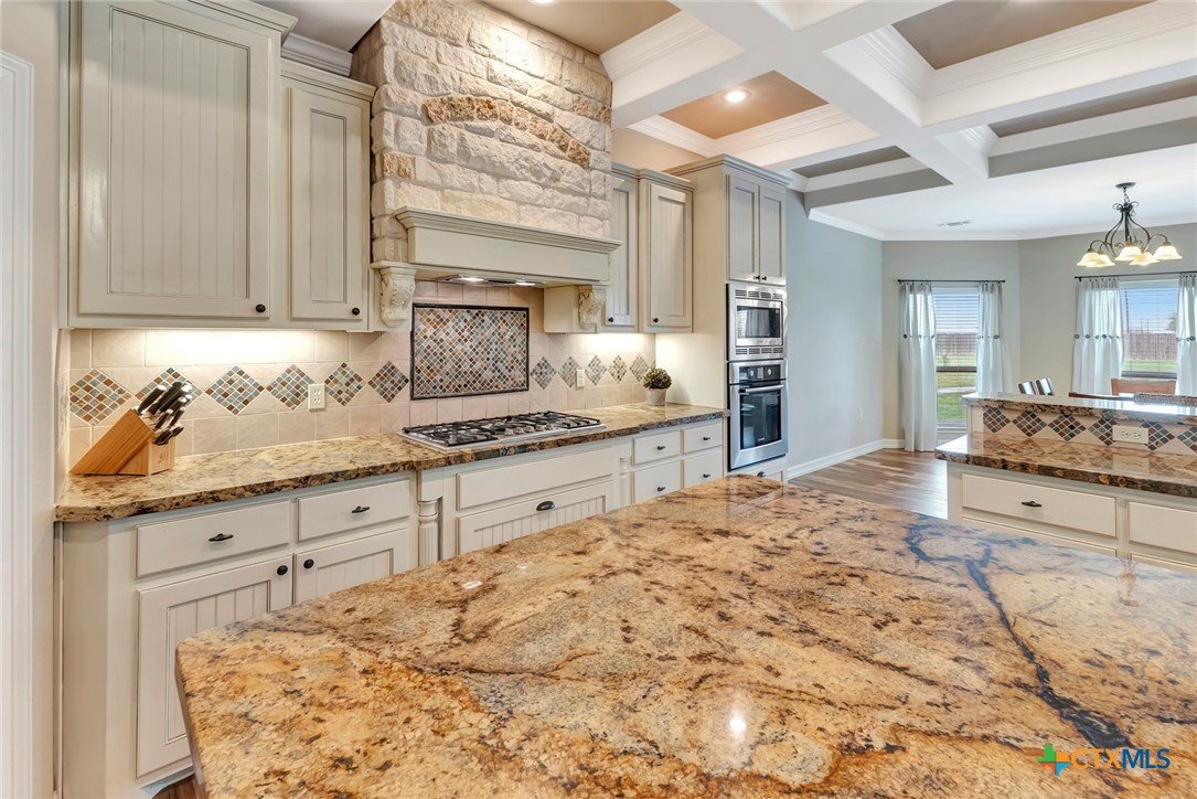Don’t miss this exceptional custom-built ranch-style home, thoughtfully designed for both comfort and entertaining. From the moment you step through the double front doors, you’re welcomed into a spacious open-concept layout that showcases everything this home has to offer. The expansive living area features a stunning beamed ceiling and a stone gas fireplace, creating a warm and inviting focal point. The gourmet island kitchen is a true showstopper, offering custom cabinetry with granite countertops, a wrap-around breakfast bar, gas cooktop, walk-in pantry, and plenty of space for gathering. Beautiful wood-look tile flooring flows throughout the home, adding style and durability. The oversized fourth bedroom offers versatility and can easily serve as a second living area, game room, or flex space, complete with generous closet storage. The primary suite is a relaxing retreat with an ensuite bath featuring double vanities, a tiled walk-in shower, a jetted tub, and a spacious walk-in closet. Additional highlights include a centrally located indoor laundry room with excellent storage, plus a private office with built-in desk and its own exterior entrance—perfect for working from home. The home is also equipped with a Generac whole-home generator, providing peace of mind and uninterrupted comfort. Outside, enjoy covered patios in both the front and back, a fenced yard, an in-ground pool, and a pool house with a convenient half bath. This home truly has it all—schedule your private showing today!