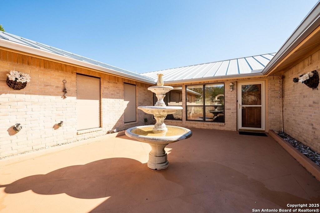 Welcome to 200 Roundabout Lane-a beautifully maintained property offering true Texas charm just minutes from Kerrville. A gated courtyard entry with a peaceful fountain leads you into the home, where warm Saltillo tile floors and a cozy wood-burning fireplace create an inviting atmosphere. This 3BR/2.5BA residence features a durable metal roof (approx. 5 years old), two HVAC systems under warranty (2-ton and 1.6-ton), an aerobic septic system, and impressively low utilities. Enjoy the sun-screened back porch overlooking a variety of fruit trees, all set within a high-fenced property with multiple double-gate access points, perfect for privacy, pets, or hobby use. A 600 sq. ft. additional garage with electricity and a recently replaced roof provides excellent storage, workshop space, or parking flexibility. Don't miss this opportunity to own a serene piece of Texas where the Deer and the Antelope roam just outside the Kerrville city limits. The adjacent lot just under 2 acres is also available for purchase, offering expanded privacy or the option to grow your own Hill Country compound.