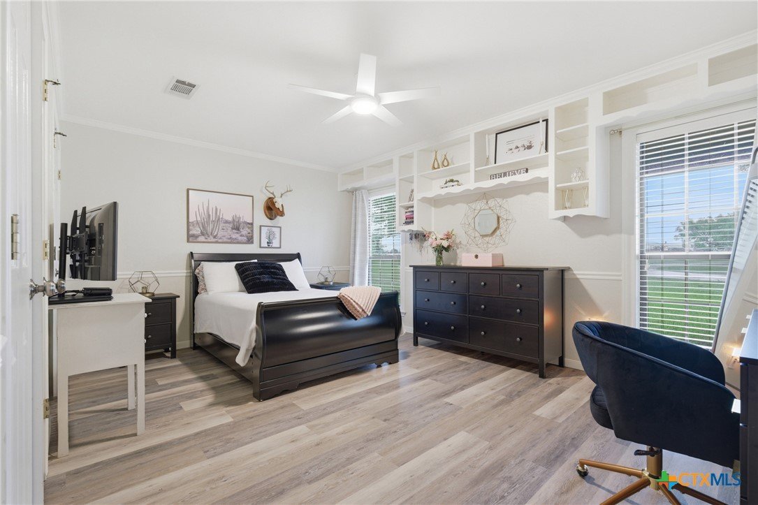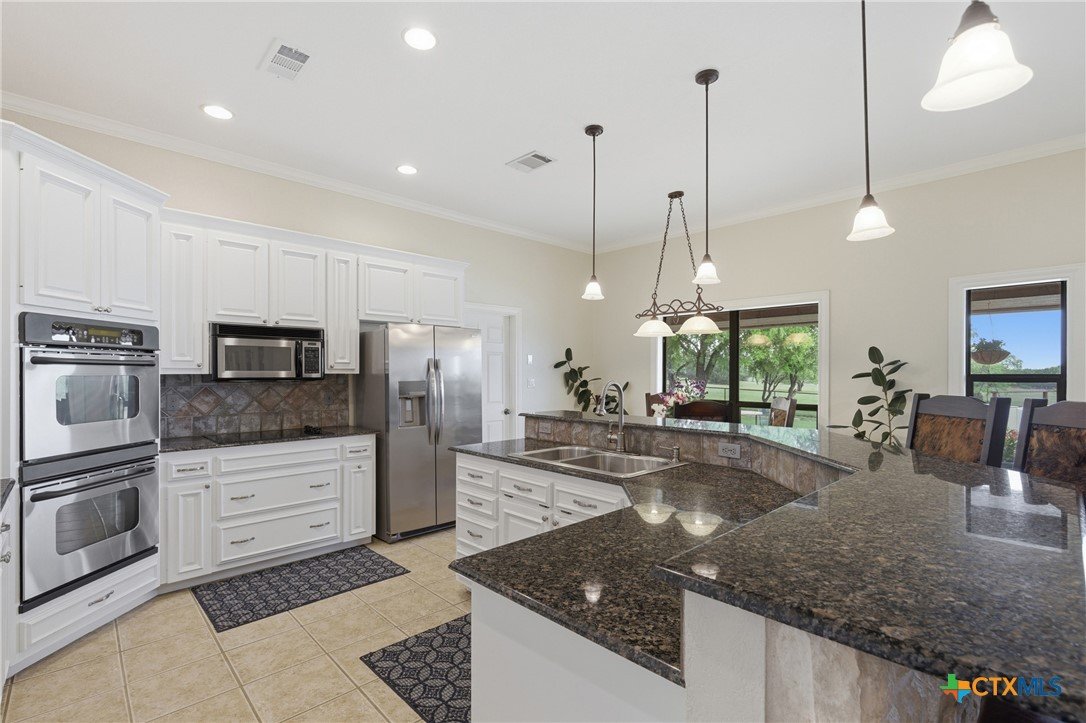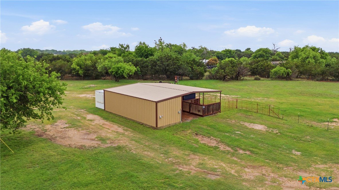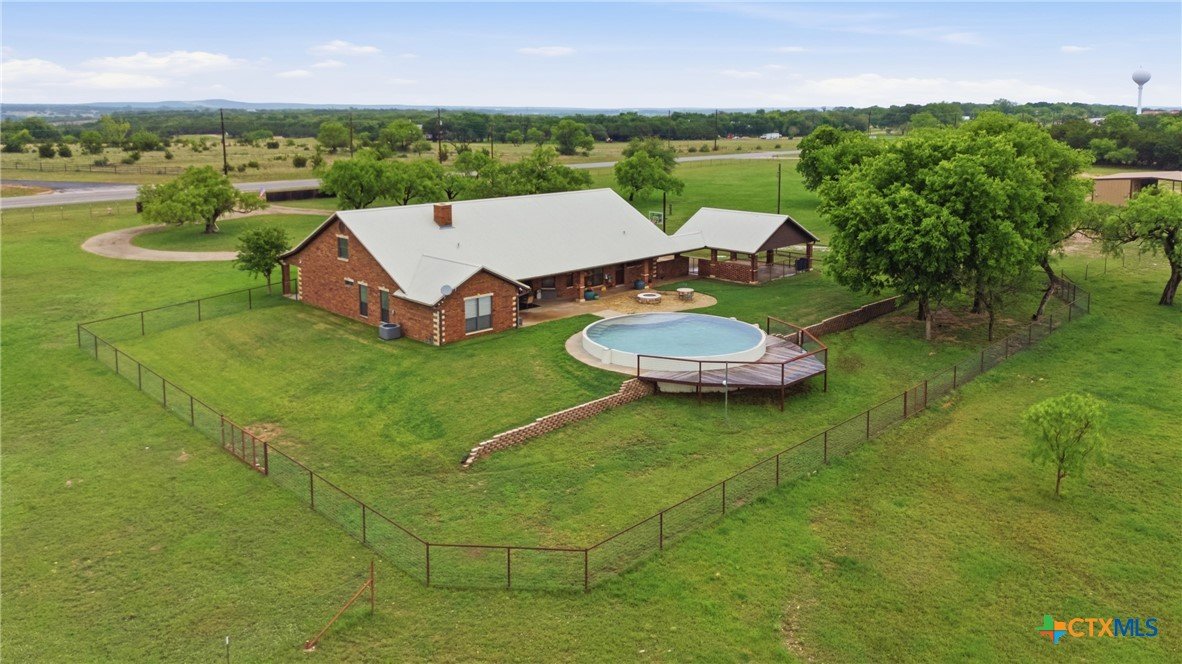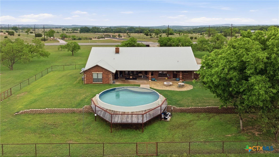 Escape to your own private slice of country living—without sacrificing convenience! On 7.23 acres, this spacious 2,785 sq ft custom home offers a blend of comfort, functionality, and outdoor enjoyment. With 4 bedrooms and 2 full baths, this well-loved home has been maintained and updated over the years. Step inside to find a warm and welcoming layout, where the open-concept kitchen and family room create the ideal space for gathering. The kitchen features a large granite bar (seating 4–6), double ovens, and custom cabinetry designed with everyday living in mind. The dining area is filled with natural light thanks to a charming bay window with built-in seating and storage, offering peaceful views of the backyard and sparkling in-ground pool. The family room makes a statement with its floor-to-ceiling limestone wood-burning fireplace and double doors that lead out to a covered patio—perfect for entertaining or unwinding after a long day. Outside you can enjoy evenings around the firepit, watch the game from the patio, or cool off in the pool while taking in the wide-open Texas skies. The automatic sprinkler system helps keep the yard green with ease. The master bedroom offers a relaxing escape with a large walk-in closet featuring custom cedar storage, plus a full bath complete with double vanities, a soaking tub, and separate shower. Each additional bedroom includes built-in shelving, adding both charm and functionality. Recent updates include fresh interior and exterior paint, luxury vinyl plank flooring, updated water heaters, and one newer HVAC unit. The durable metal roof also has many years of life left. The property is ready to go with a fully fenced backyard for pets,cross fencing for added flexibility, a 30x36 drive-through metal barn with tack room, 3 stalls, water, and electricity, and covered storage for equipment or hobbies. Whether you're looking for room to roam, space for animals, or simply a peaceful place to call home—this property truly has it all.