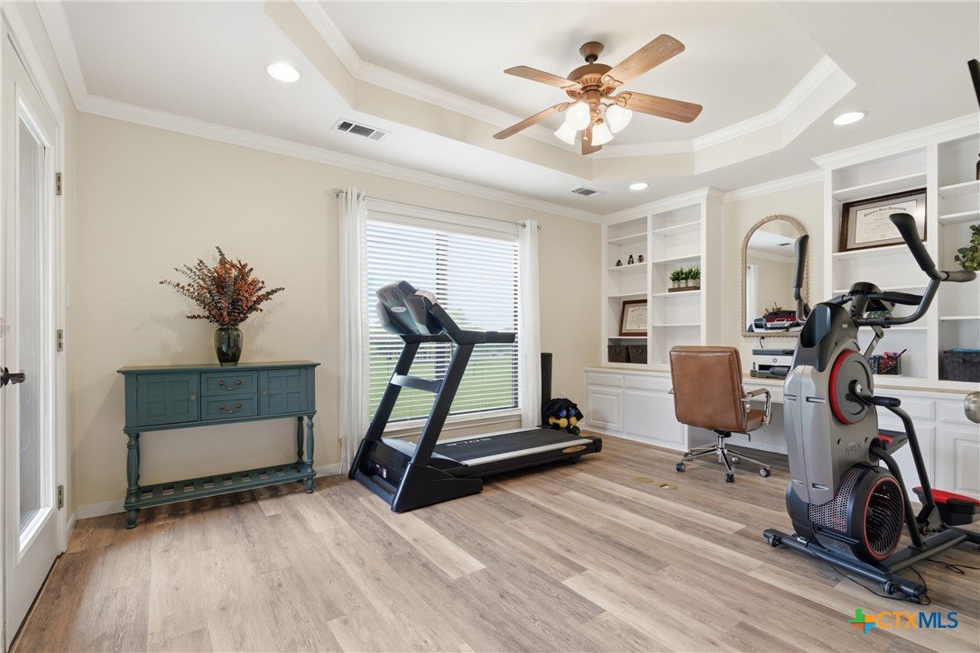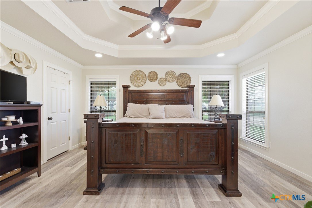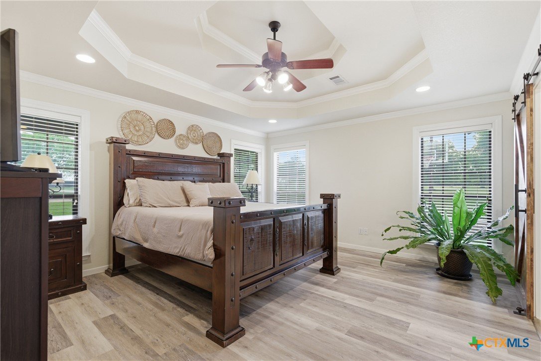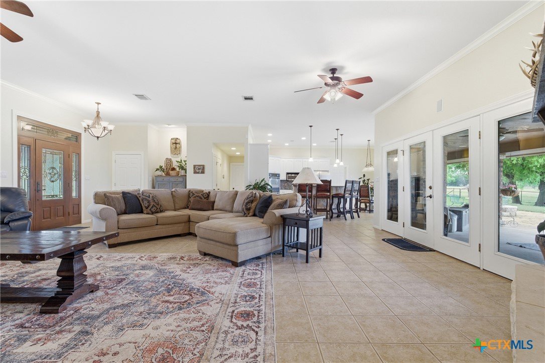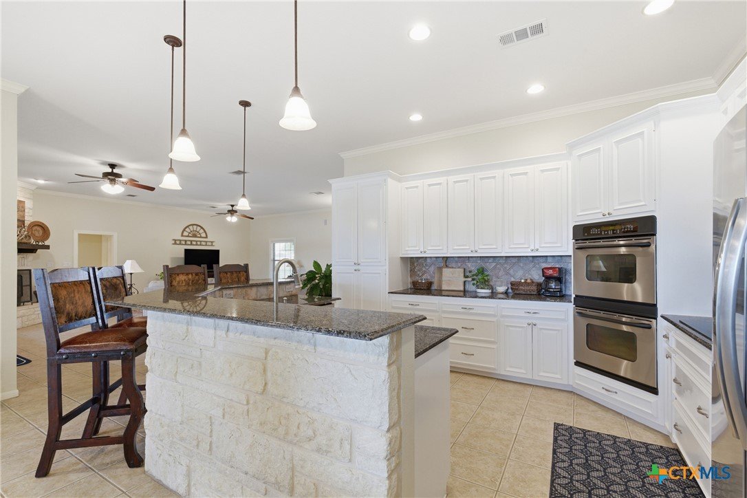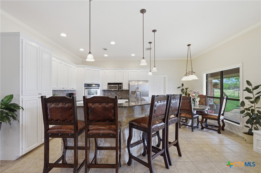 Escape to your own private slice of country living—without sacrificing convenience! On 7.23 acres, this spacious 2,785 sq ft custom home offers a blend of comfort, functionality, and outdoor enjoyment. With 4 bedrooms and 2 full baths, this well-loved home has been maintained and updated over the years. Step inside to find a warm and welcoming layout, where the open-concept kitchen and family room create the ideal space for gathering. The kitchen features a large granite bar (seating 4–6), double ovens, and custom cabinetry designed with everyday living in mind. The dining area is filled with natural light thanks to a charming bay window with built-in seating and storage, offering peaceful views of the backyard and sparkling in-ground pool. The family room makes a statement with its floor-to-ceiling limestone wood-burning fireplace and double doors that lead out to a covered patio—perfect for entertaining or unwinding after a long day. Outside you can enjoy evenings around the firepit, watch the game from the patio, or cool off in the pool while taking in the wide-open Texas skies. The automatic sprinkler system helps keep the yard green with ease. The master bedroom offers a relaxing escape with a large walk-in closet featuring custom cedar storage, plus a full bath complete with double vanities, a soaking tub, and separate shower. Each additional bedroom includes built-in shelving, adding both charm and functionality. Recent updates include fresh interior and exterior paint, luxury vinyl plank flooring, updated water heaters, and one newer HVAC unit. The durable metal roof also has many years of life left. The property is ready to go with a fully fenced backyard for pets,cross fencing for added flexibility, a 30x36 drive-through metal barn with tack room, 3 stalls, water, and electricity, and covered storage for equipment or hobbies. Whether you're looking for room to roam, space for animals, or simply a peaceful place to call home—this property truly has it all.