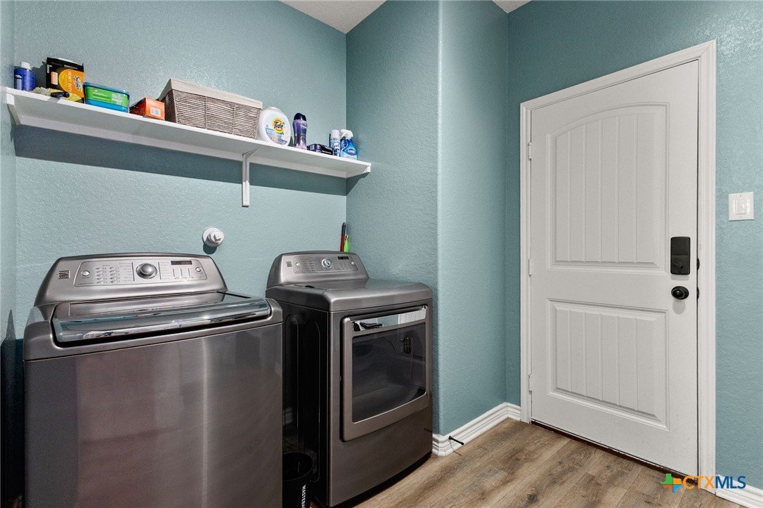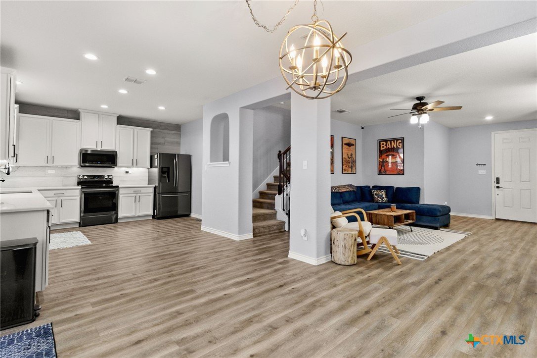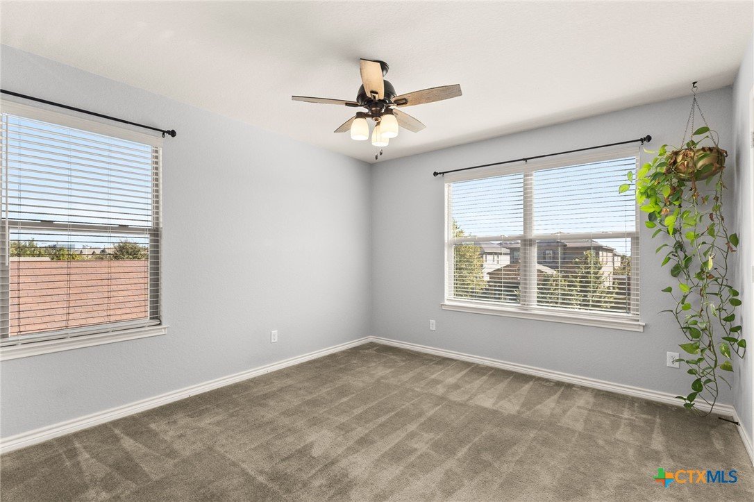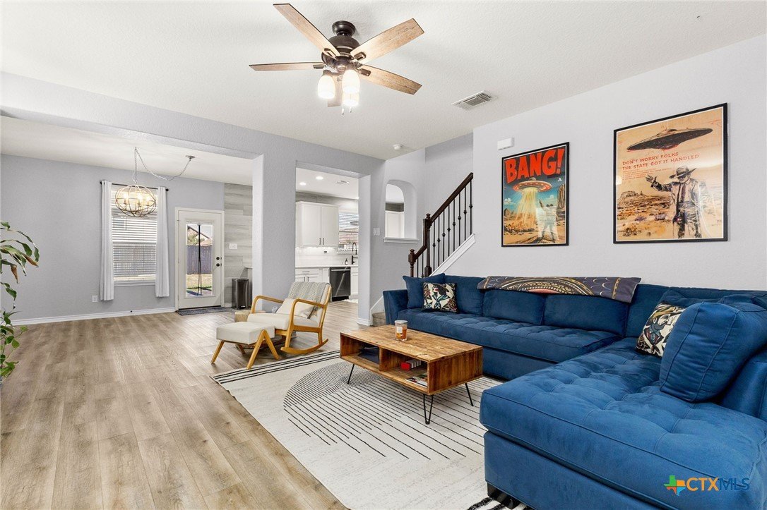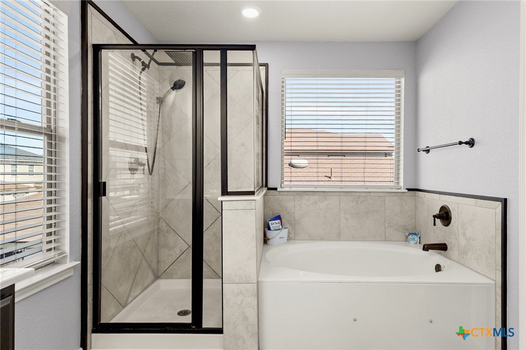 Nestled in the desirable West Village at Creekside, this beautiful two-story home offers a perfect blend of comfort, style, and energy efficiency. Featuring 3 spacious bedrooms, 2.5 bathrooms, and thoughtfully designed living spaces, it’s ideal for both relaxation and entertaining. Downstairs, you’ll find a welcoming living room anchored by a custom handmade mantel on the entertainment wall. The large kitchen includes generous counter space, a tile backsplash and accent wall, plus a seamless flow into the dining area—perfect for everyday living and hosting. A convenient laundry room/pantry completes the downstairs layout. Upstairs, a versatile flex space offers endless possibilities as a game room, additional living area, or home office. All three bedrooms are generously sized, with the primary suite featuring a spacious bathroom complete with double vanity, separate shower, garden tub, and an expansive walk-in closet. Step outside to enjoy a freshly painted backyard fence, extended patio with pergola, and a charming stone flower box. The large backyard provides plenty of room for outdoor entertaining or gardening. The stucco exterior gives the home timeless curb appeal, while owned solar panels provide valuable energy savings for the new owners. A wonderful opportunity in a sought-after New Braunfels location—close to shopping, dining, and easy access to I-35.