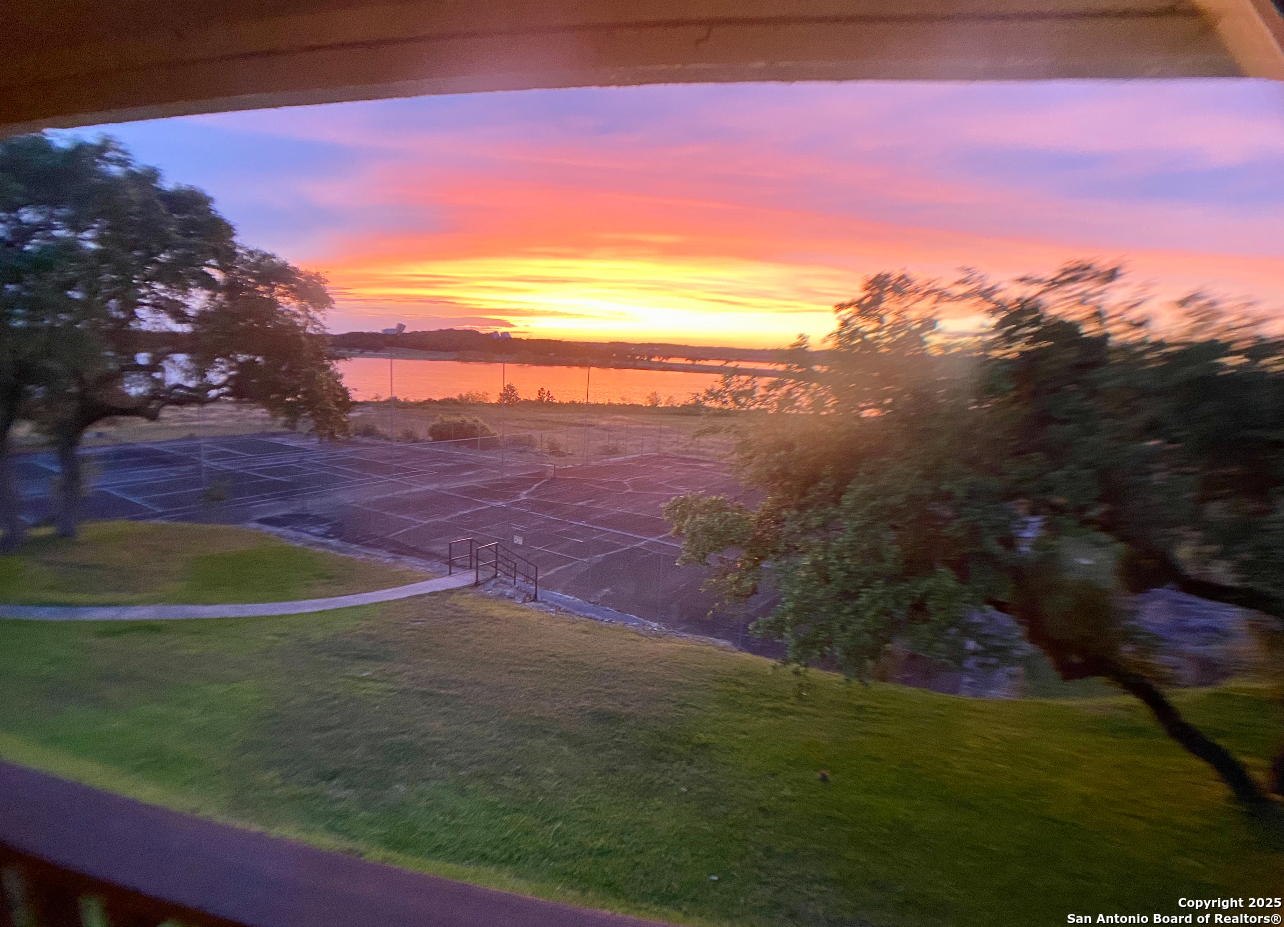 Stunning Canyon Lake Beauty! Enjoy nightly sunsets, roaming deer, year round pool, and nature. Beautiful 1120 sq ft, 3 bedroom 2 bath waterfront condo with amazing sunset views and lake views (when at normal levels.) Gorgeous, updated kitchen & baths, and elegant floor-to-ceiling wood-burning fireplace. This was an income-producing vacation rental property, with 4.89 star rating & plenty of niceties. Condo complex has over 10 acres of space & only 9 units in this sought-after lakeside waterfront "Building A" location. Rare find! Located just 1 block away from the Canyon Lake Marina, Brookshire Brothers grocery store, popular restaurants and bars, & just 2 miles away is the Guadalupe River, Canyon Lake Damn, Whitewater amphitheater with some of the best concerts around! Complex has 3-day boat parking, pool, laundry room, tennis courts, deer feeding area, and ample room to wander & enjoy nature. Easy drive to other renowned Hill Country TX towns like Wimberley, New Braunfels, San Marcos, Luchenbach, Frederickberg, Gruene, and more. Schedule a showing today. This one won't last!