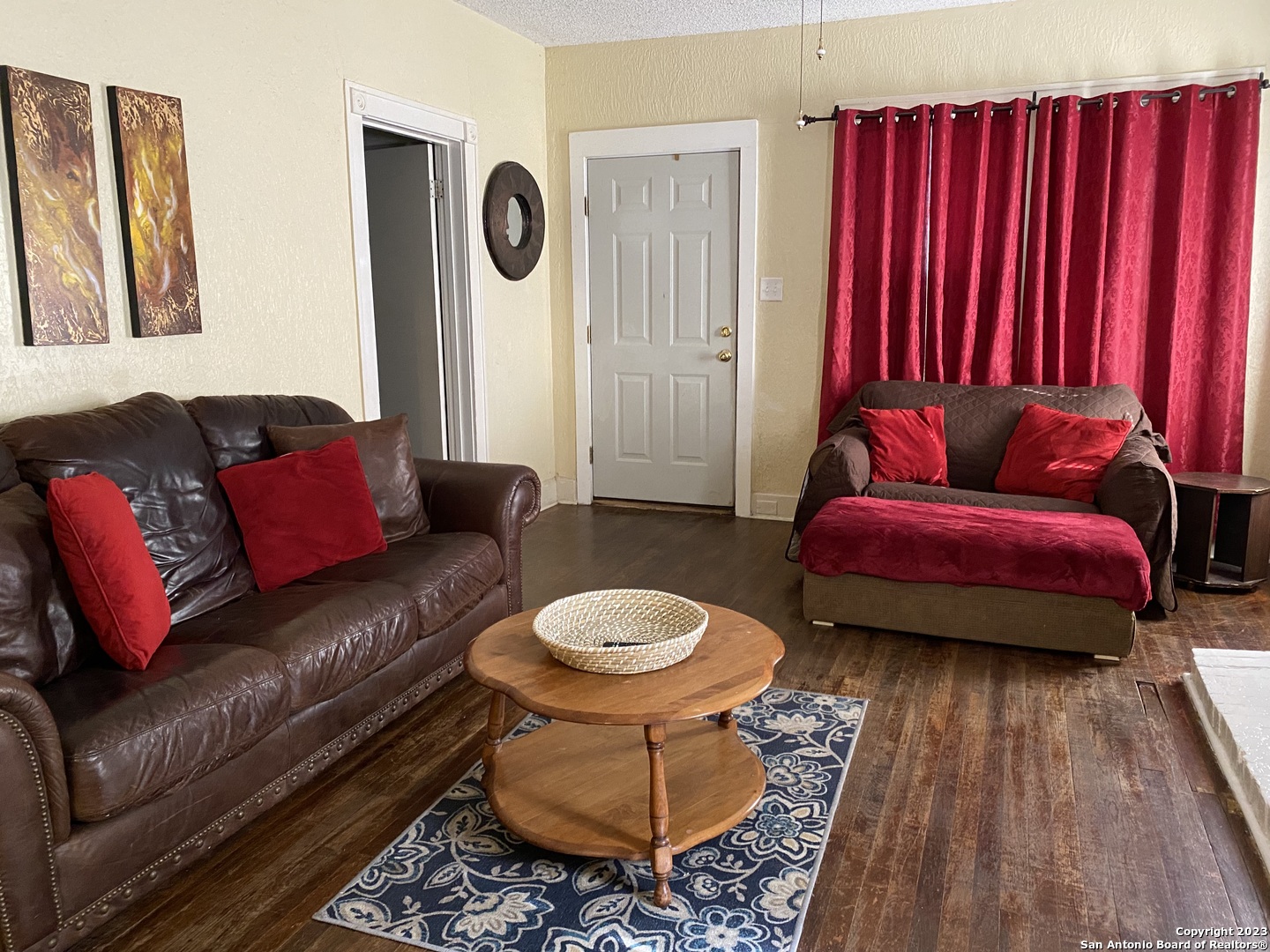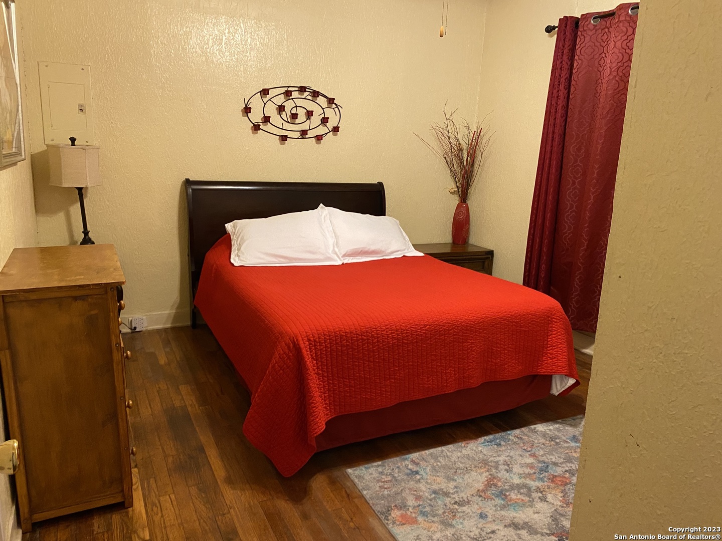 Super cute Gingerbread style home! This is a fully furnished 2 bedroom/1 bath split bedroom home with original hardwood floors. Price includes water, internet and quarterly exterminating. This home is 1000 square feet with hardwood floors and high ceilings. It has an open floor plan with a living room, dining room plus breakfast nook. Enjoy cooking on a gas stove and doing your laundry in your own private laundry room with a full size washer/dryer. You'll also have your own designated covered parking spot. This is a duplex located in an older eclectic neighborhood which is very centrally located. It is only 5.5 miles from downtown and the Riverwalk, only 12 minutes to Medical Center and only 5.5 miles from popular Pearl Brewery District. Dogs allowed with non-refundable pet fee. No cats. Sorry!