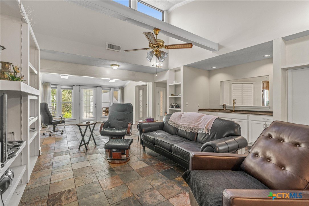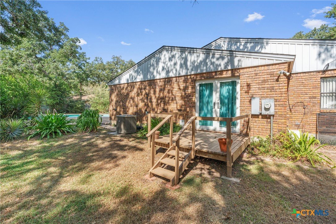 Nestled at 2007 Okelley RD, Rockdale, TX 76567 in the heart of Rockdale, this beautifully maintained home is situated on a heavily wooded lot with native plants and privately fenced backyard with in-ground swimming pool. Kitchen has been updated which includes custom cabinetry, a farmhouse sink, a two-drawer dishwasher, tile flooring and mirrored backsplash with Anderson windows and shutters. Master suite has 4 closets, a large bath and French doors leading to a wooden deck overlooking backyard from the master bedroom. The guest suite has a sitting room/bedroom, bedroom, bath with a "Safe Step" walk-in tub and outside entry. The 4th bedroom could be an excellent home office/study with extensive bookcases and storage. The family room has custom bookcases, wet bar and refrigerator. Dining room opens to den with a large stone faced fireplace and gas logs. The oversized 2 car garage has a large workbench and extensive storage and shelving. Water heaters on each side of house. This Rockdale property offers a canvas for creating a lifetime of memories.
