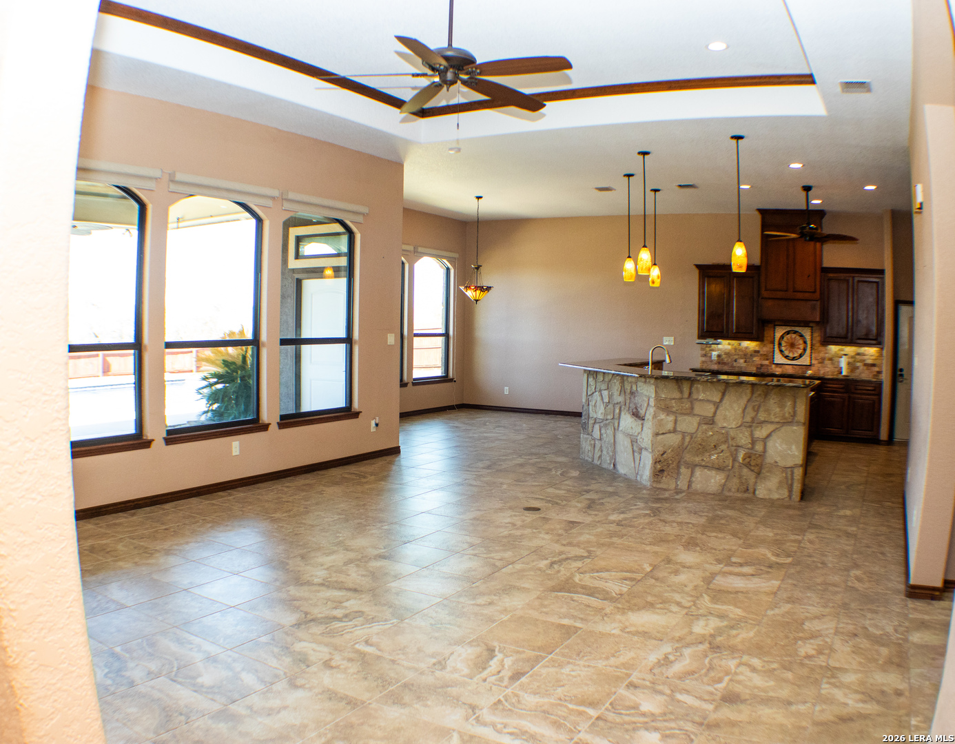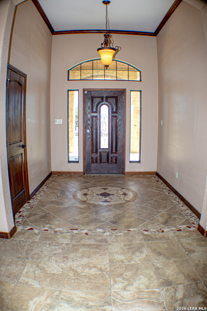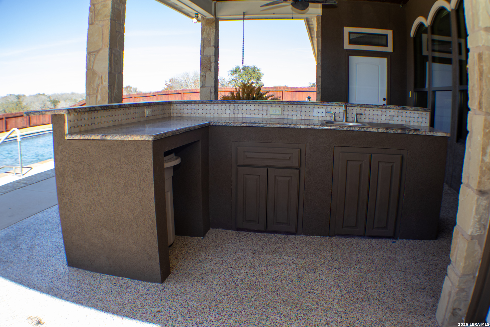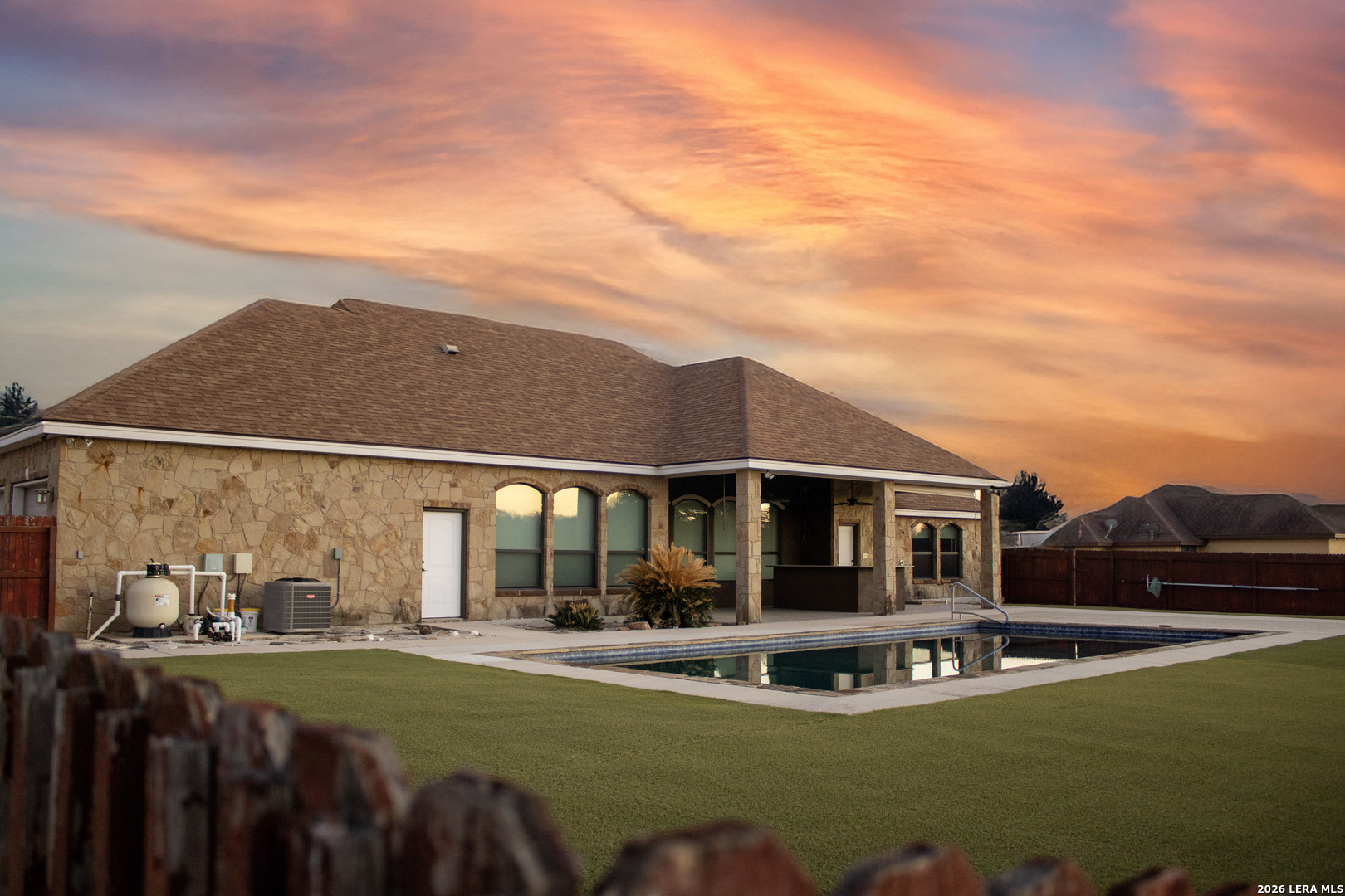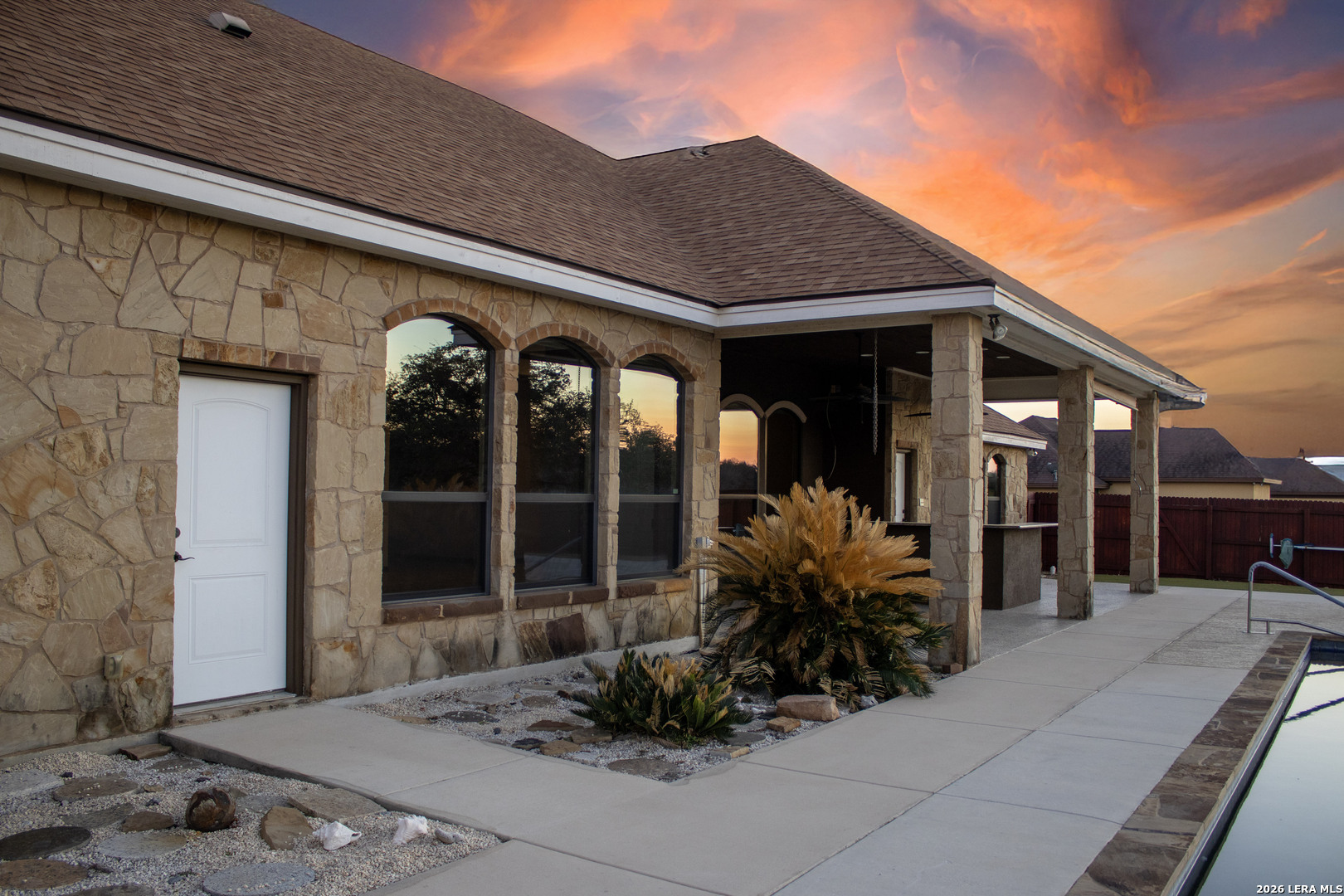 Stunning custom built home in the prestigious Abrego Lake subdivision! This captivating 4-bedroom, 3-bath custom home offers 2,753 sq. ft. of refined comfort on 1.6 scenic acres-where peaceful panoramas and polished design come together in perfect harmony. Step inside to soaring ceilings and a spectacular wall of windows framing shimmering pool views, complete with an electric sunshade for effortless comfort. Travertine tile, granite countertops, solid wood doors and trim, and custom-crafted cabinetry create a rich blend of warmth and sophistication. A spacious laundry room and closets with built-in dressers, shelving, and automatic lighting add convenience to everyday living. The chef's kitchen is designed for connection and celebration, featuring gleaming granite counters, a butcher-block island, generous walk-in pantry, and bar seating for up to 12-perfect for lively gatherings and memorable moments. Retreat to the tranquil primary suite with dual vanities, his-and-her closets, and a spa-inspired walk-in shower with built-in bench. Large bedrooms with a Jack-and-Jill bath with a luxurious Jacuzzi soaking tub offers comfort and charm. Built with strength and sustainability in mind, this home includes an engineered foundation, 81/2" spray foam insulation with radiant barrier, and premium Don Young windows for efficiency and enduring quality. Outdoors, enjoy a fenced yard with lush AstroTurf, a breathtaking 40 x 20 Bode Custom pool with swim out and platform, as well as outdoor shower and a patio bar with roll-down sunshade-an entertainer's oasis designed for sunset soirees and serene summer nights. Epoxy-coated garage and patio floors, a 850 square foot 3-car garage, expansive 20-foot driveway, and 5-foot sidewalks complete this remarkable retreat. Sophisticated, serene, and simply stunning-this house is more than a home; it's a lifestyle.