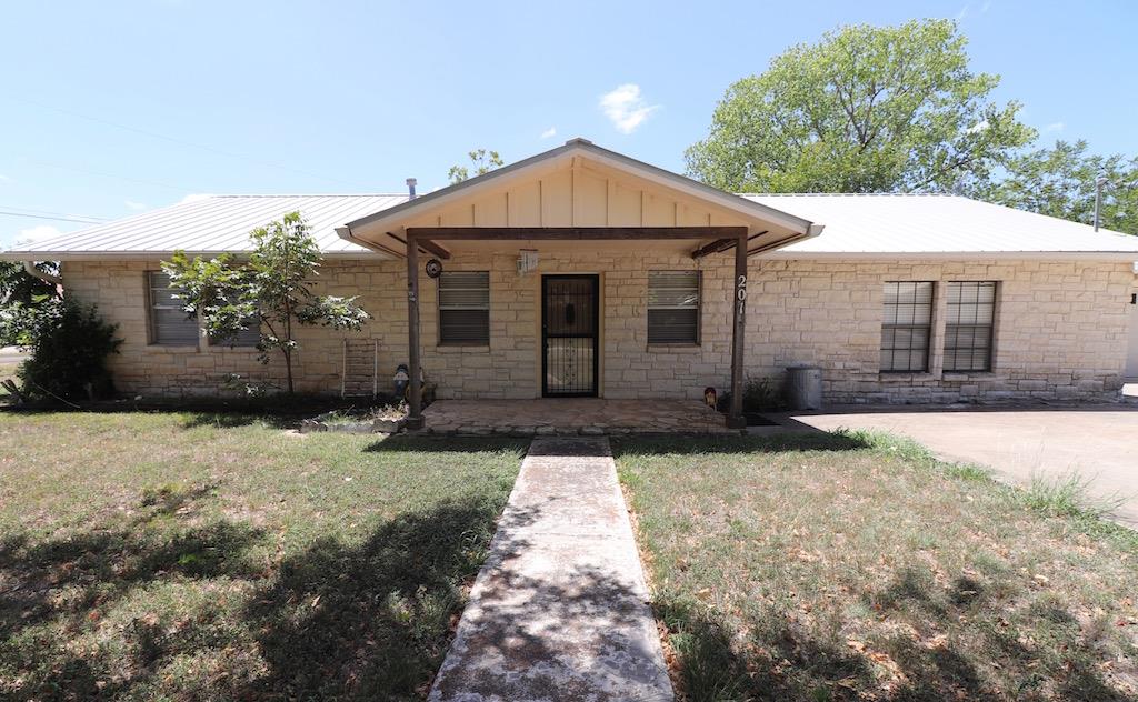 Spacious 3 bedroom, 2 bath home, with attached 2 car garage. The home sits on 2 lots, approximately 0.80 acre. Exterior is fully rocked with a metal roof. Covered patio extends along the back of the house. Kitchen includes electric range, dishwasher and large bar for entertaining. Large laundry room right off the kitchen. Master bedroom has a roomy walk-in closet. Room behind garage could be utilized as a workshop or for extra storage. Located right in town. Close to shopping, schools and parks.