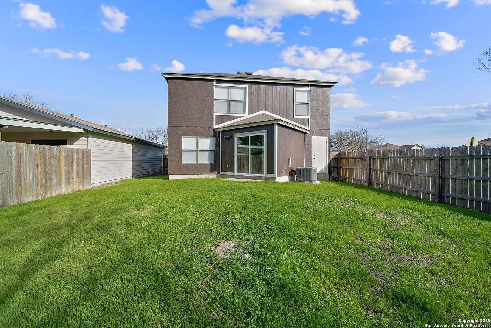 Spacious 4 bedroom and 2.5 bathroom home located in Big Country. This 2 story home offers and open floorplan with a living/dining combo. The kitchen has white cabinets with black appliances. Upstairs you will find all bedrooms. Primary room has a walk in closet and ensuite bathroom. The backyard is fenced in and spacious. Near Lackland. Quick access to 90 and 1604.