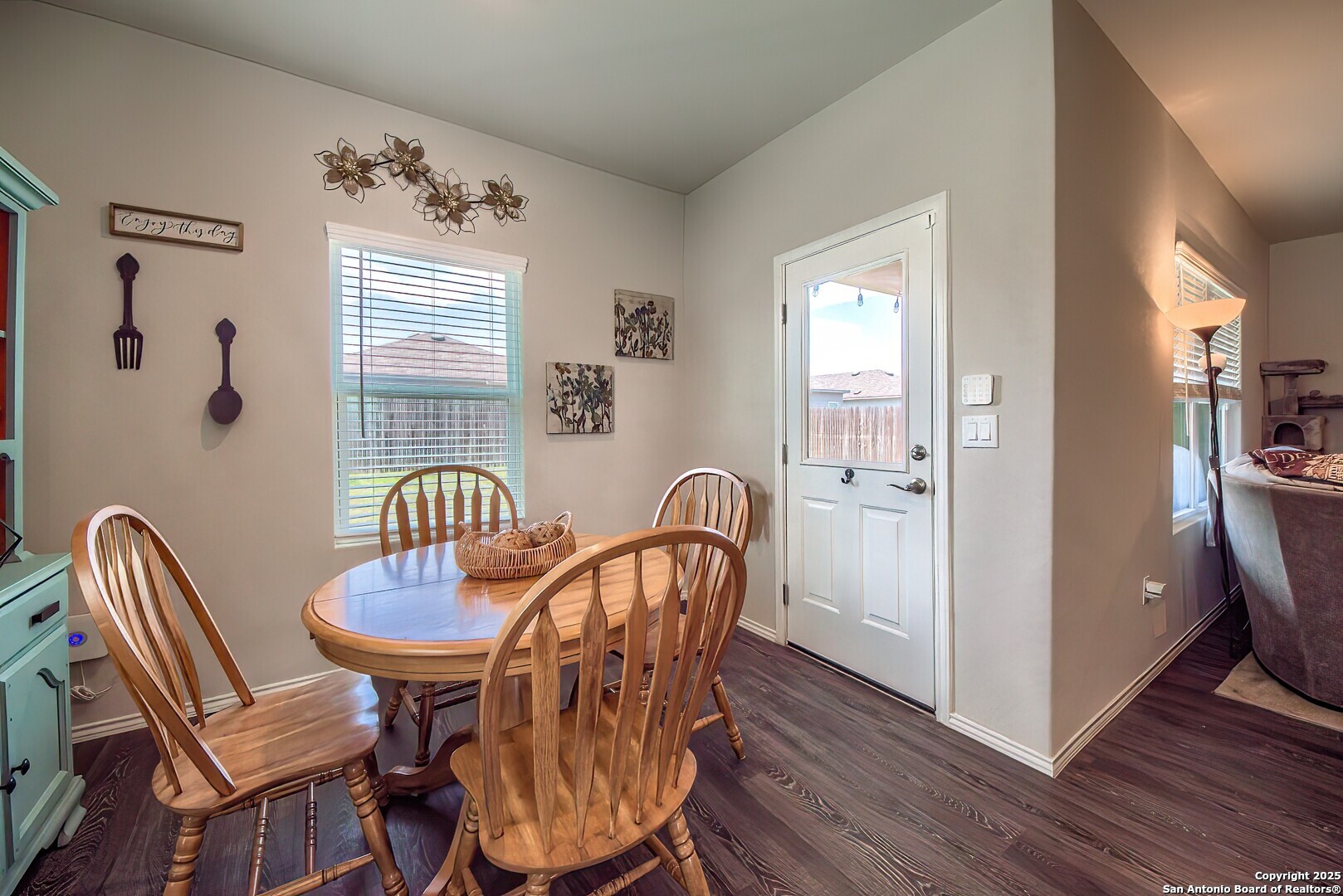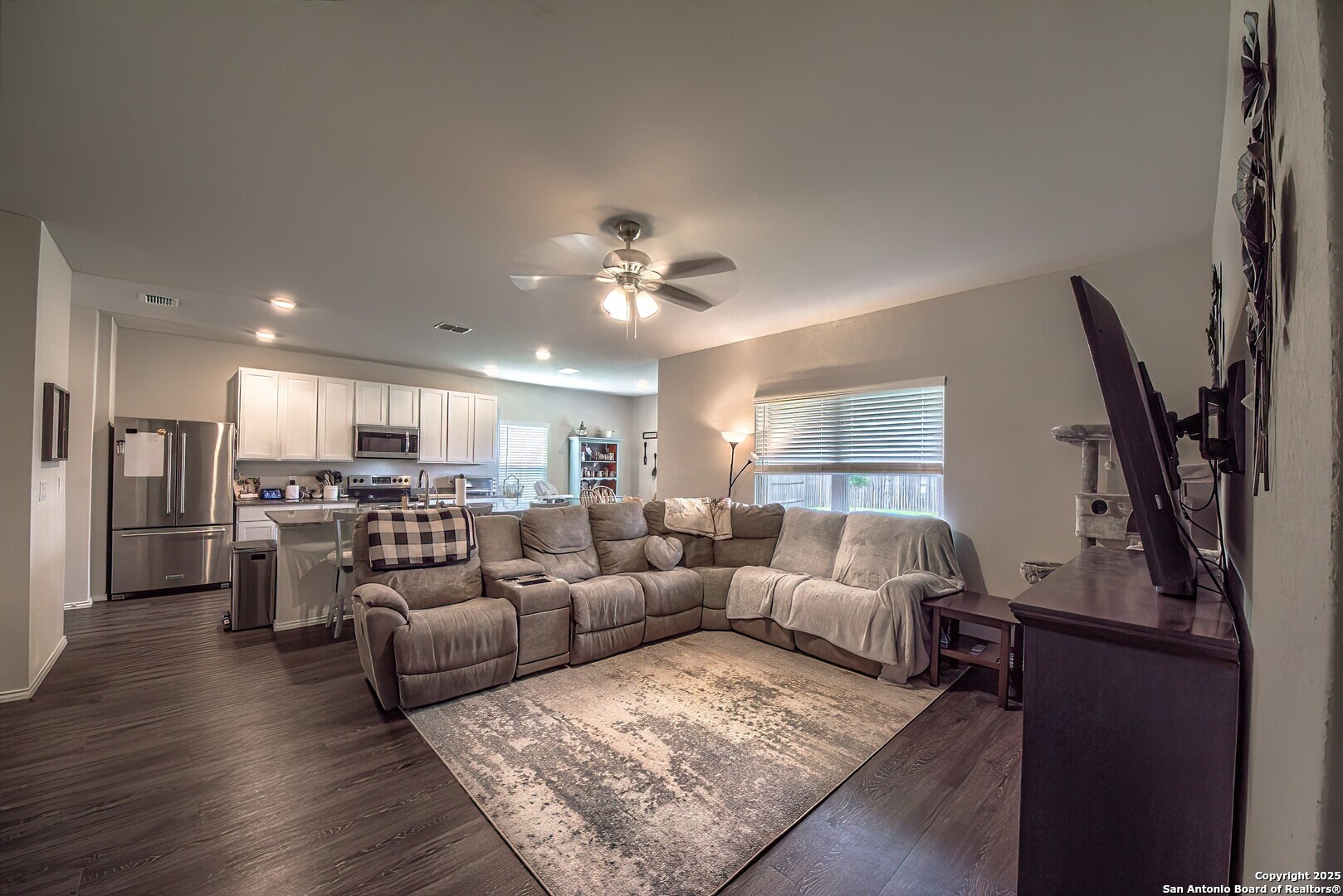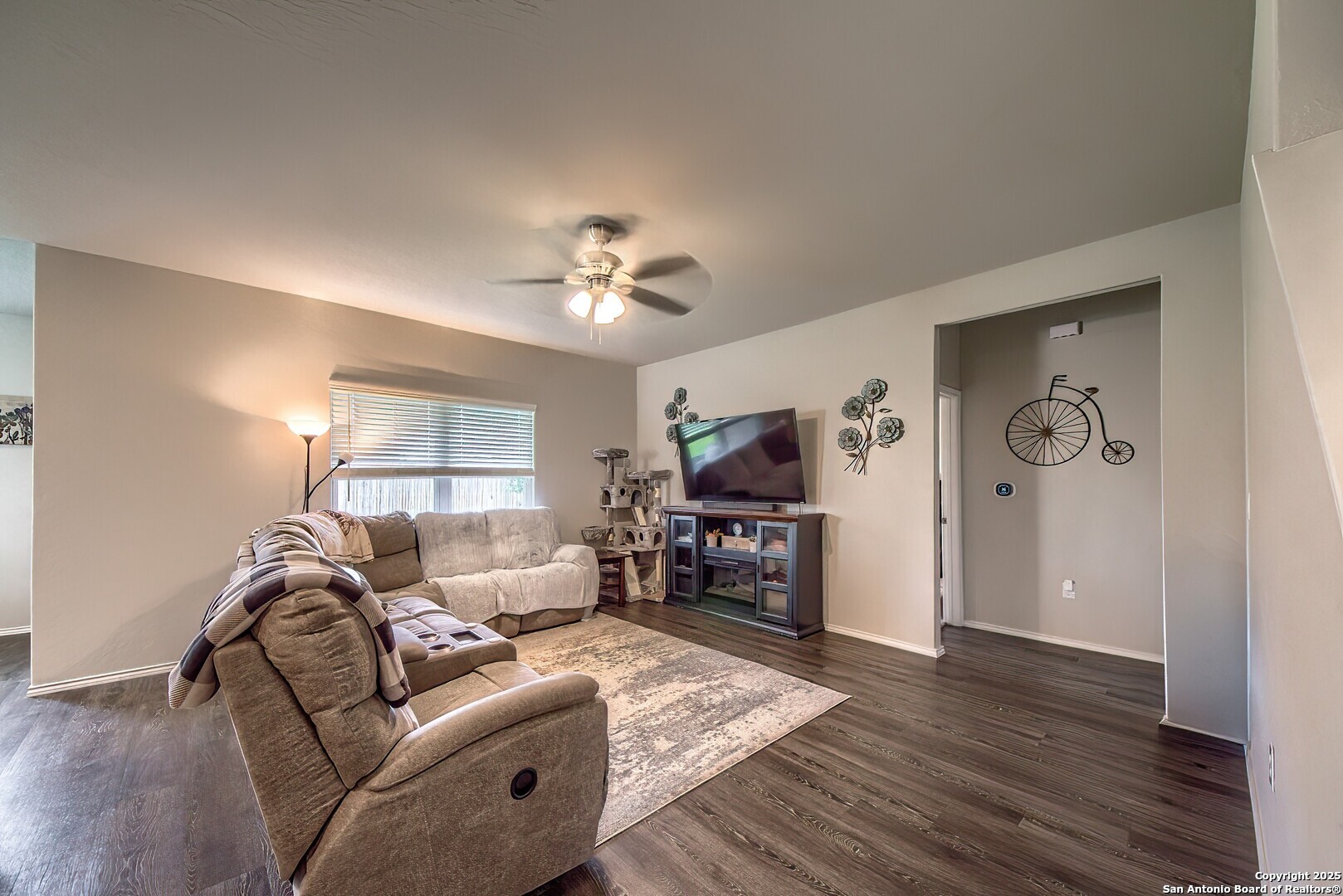 Welcome to this beautiful and versatile two-story home featuring four bedrooms, two and a half bathrooms, and plenty of living space designed for comfort and flexibility. The open-concept floor plan connects the living, dining, and kitchen areas, creating an inviting atmosphere perfect for everyday living or entertaining. The primary suite is conveniently located downstairs for added privacy, while three additional bedrooms and a large game room upstairs provide ample space for family or guests. A flex room on the main floor offers the perfect spot for a home office, playroom, or guest suite. Enjoy outdoor living with a charming covered front porch and a spacious covered patio overlooking a nicely sized backyard, ideal for relaxing or hosting gatherings. Located near Highway 35 and Loop 410, this home offers quick access to major employers and attractions, including Toyota Manufacturing, Palo Alto College, Texas A&M University-San Antonio, and Brooke City Base, and is just a short drive to Braunig Lake Park. Don't miss the opportunity to make this well-located, family-friendly home yours-schedule your showing today!
