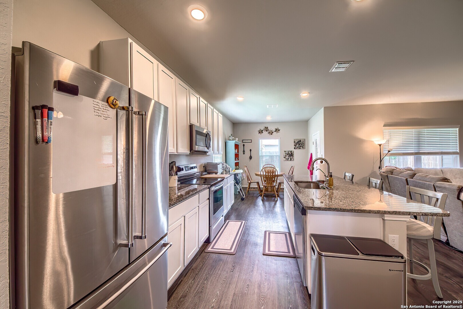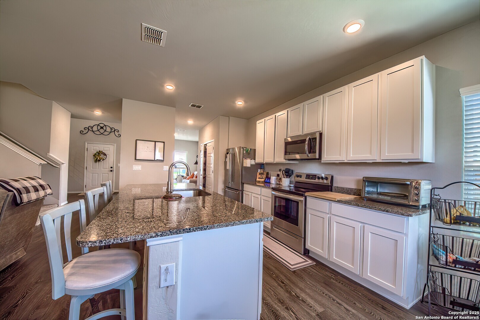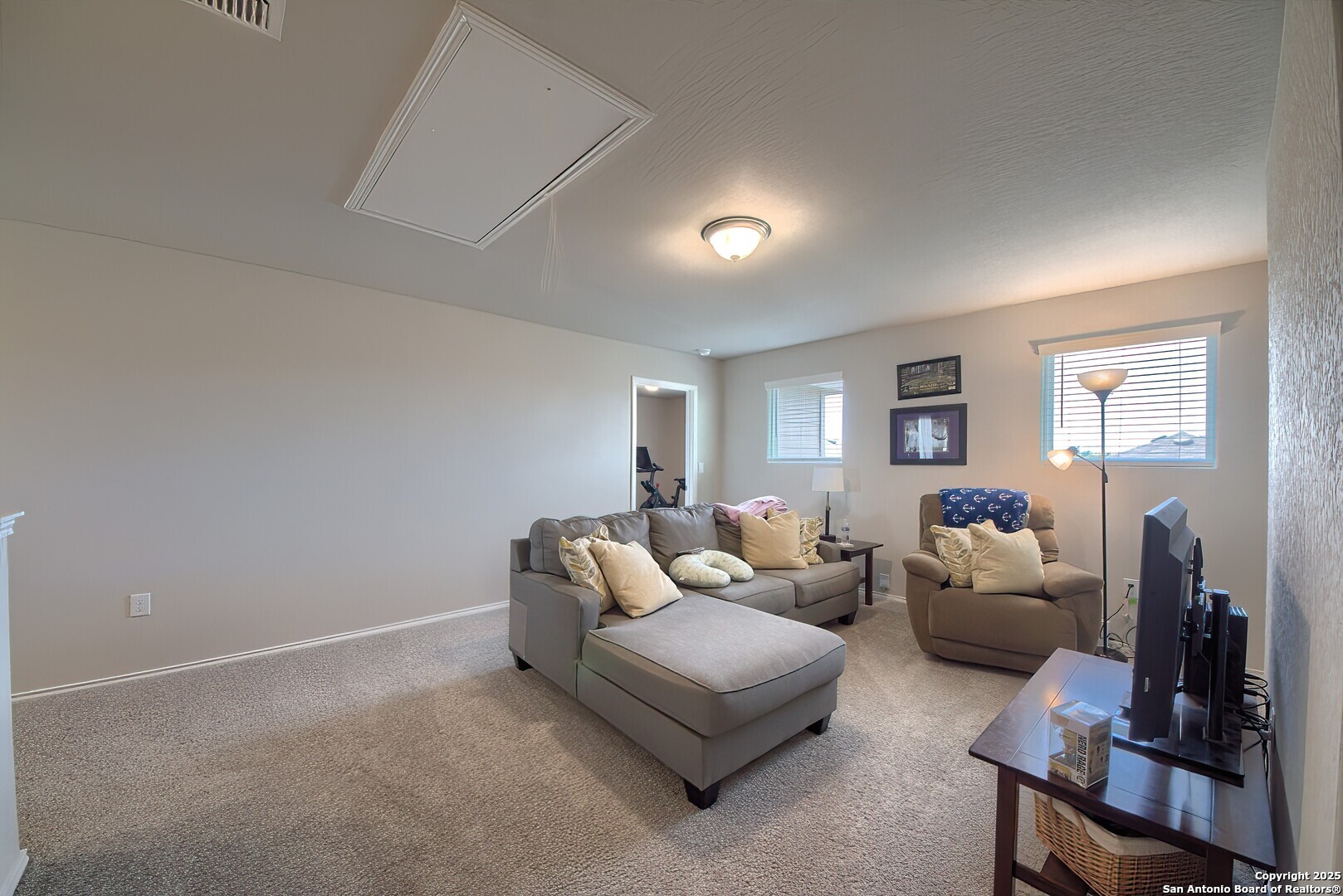 Welcome to this beautiful and versatile two-story home featuring four bedrooms, two and a half bathrooms, and plenty of living space designed for comfort and flexibility. The open-concept floor plan connects the living, dining, and kitchen areas, creating an inviting atmosphere perfect for everyday living or entertaining. The primary suite is conveniently located downstairs for added privacy, while three additional bedrooms and a large game room upstairs provide ample space for family or guests. A flex room on the main floor offers the perfect spot for a home office, playroom, or guest suite. Enjoy outdoor living with a charming covered front porch and a spacious covered patio overlooking a nicely sized backyard, ideal for relaxing or hosting gatherings. Located near Highway 35 and Loop 410, this home offers quick access to major employers and attractions, including Toyota Manufacturing, Palo Alto College, Texas A&M University-San Antonio, and Brooke City Base, and is just a short drive to Braunig Lake Park. Don't miss the opportunity to make this well-located, family-friendly home yours-schedule your showing today!