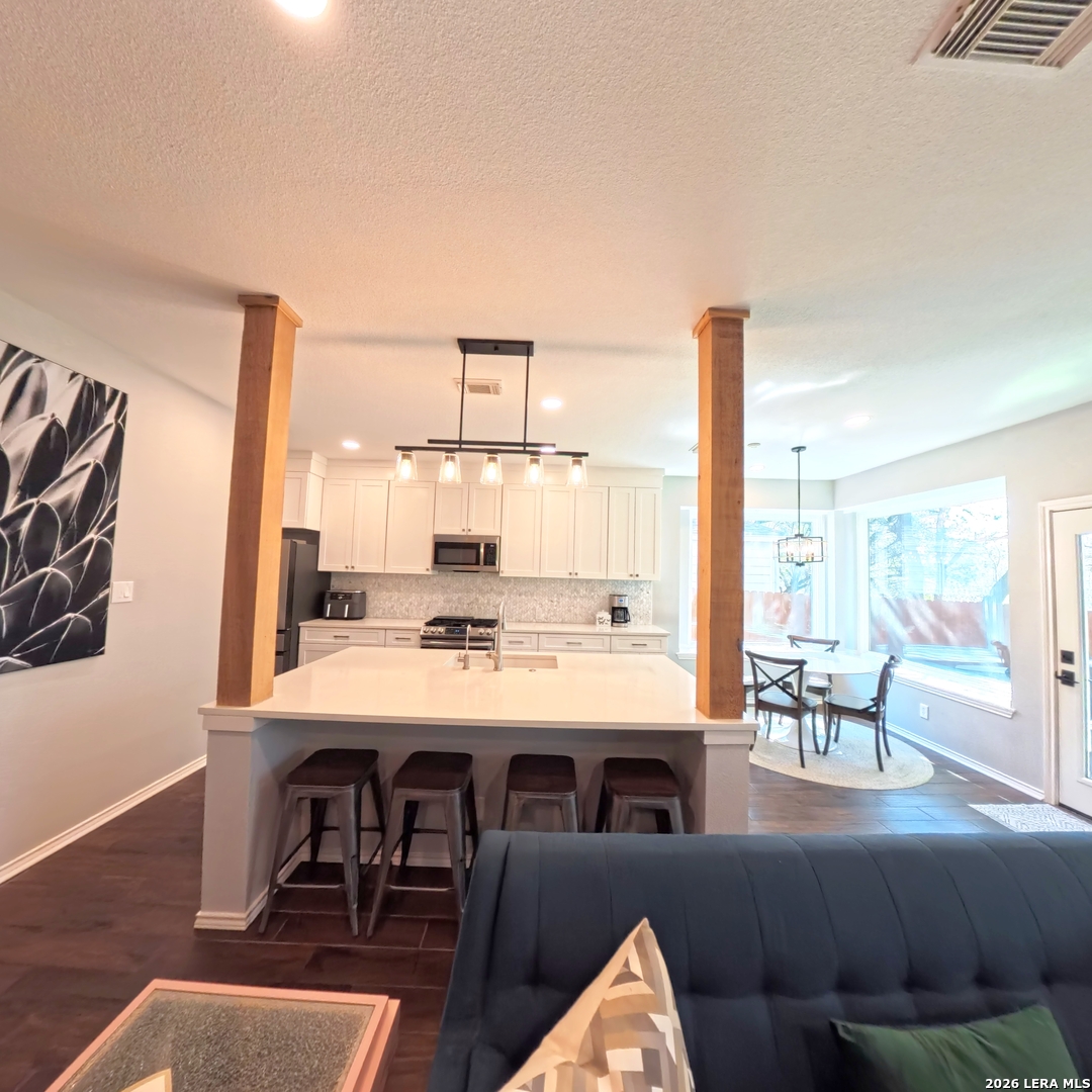 The gold standard of Stone Oak - custom designer transformation Prepare to be captivated by this master-class renovation in one of Stone Oak's most exclusive gated enclaves. With extensive precision-engineered upgrades throughout, this 4-bedroom, 2.5-bath retreat transcends the standard resale, offering a "better than new" experience in the prestigious neisd (reagan hs) district. Artisanal craftsmanship & unrivaled privacy Commanding a rare premium lot with absolute privacy, this home backs to a lush, tranquil greenbelt with no rear neighbors, only nature and quiet views. The interior is a showcase of high-end millwork, featuring true custom-built cabinetry (not pre-fabricated or refaced) in the chef's kitchen and every bathroom. The primary suite serves as an oversized spa-inspired sanctuary, complete with a custom-organized walk-in closet and designer built-ins. Storage & space advantage Universal walk-in closets: a rare and highly functional floor plan where every single bedroom and the bonus room features its own spacious walk-in closet. The primary sanctuary takes storage to the next level with high-end, custom-built shelving creating a perfectly zoned, dual-sided space for maximum efficiency. The infrastructure advantage This is a residence where every surface has been enhanced for longevity and efficiency: Thermal envelope: every window and exterior door has been replaced with high-performance, energy-efficient window world systems (lifetime warranty). Pure-air wellness: the hvac system has been fully sanitized and upgraded with a blue light uv purification system for hospital-grade indoor air quality. Gallery lighting: professional recessed led lighting thoughtfully placed throughout the main living areas and primary suite, paired with new designer ceiling fans. Elite community lifestyle Enjoy the security of a gated entrance and resort-style neighborhood amenities, including a sparkling community pool, playground, and basketball court, all located just steps from your front door. Rarely does a home combine this level of custom detail, energy efficiency, and a premium greenbelt location.