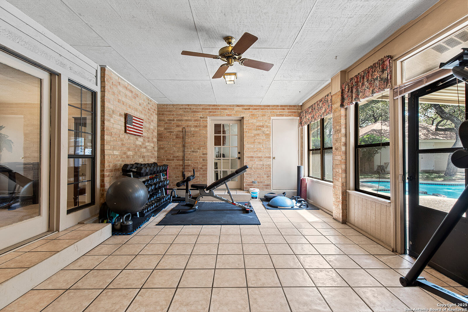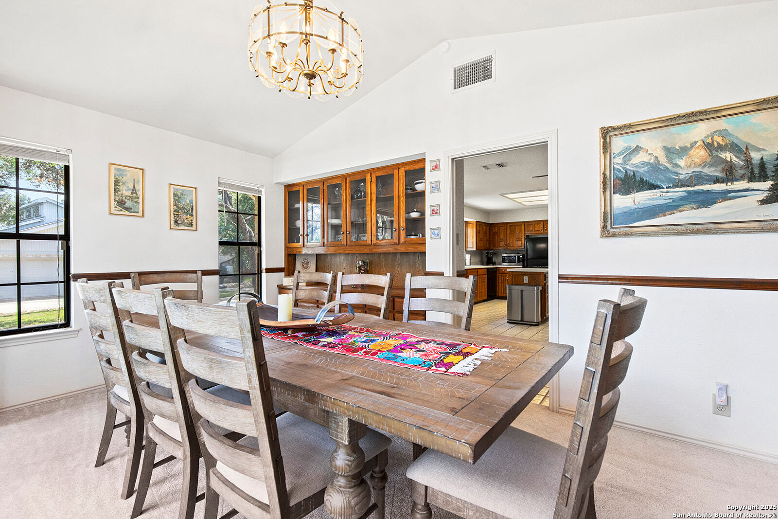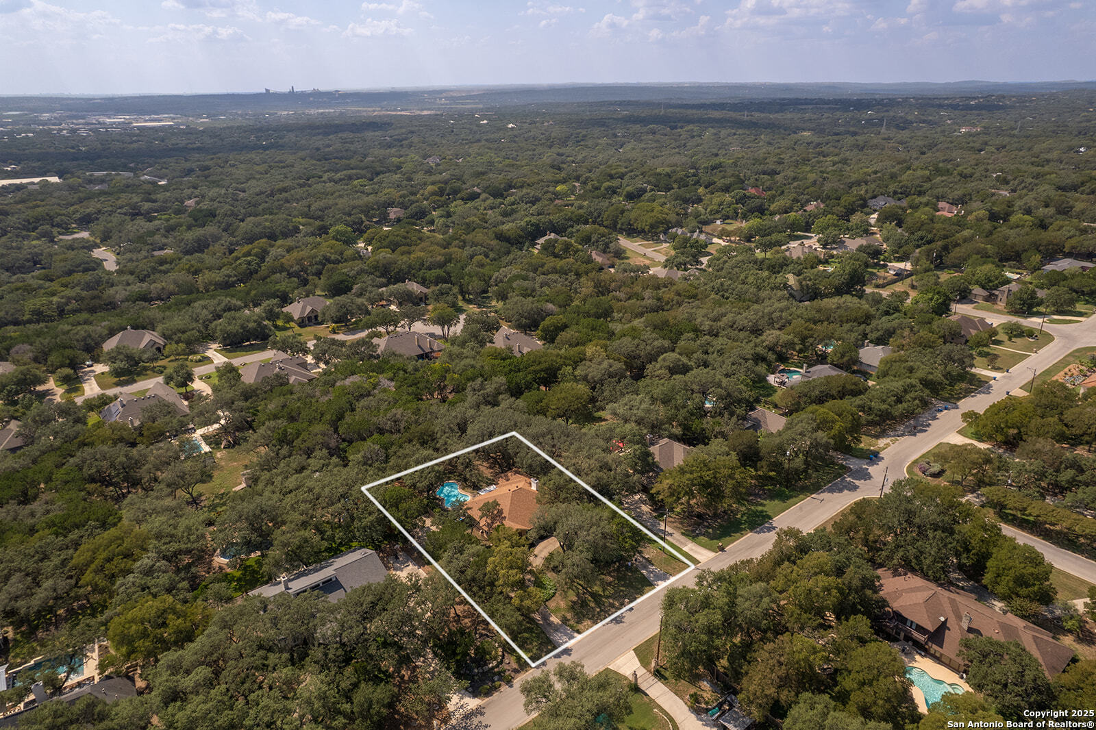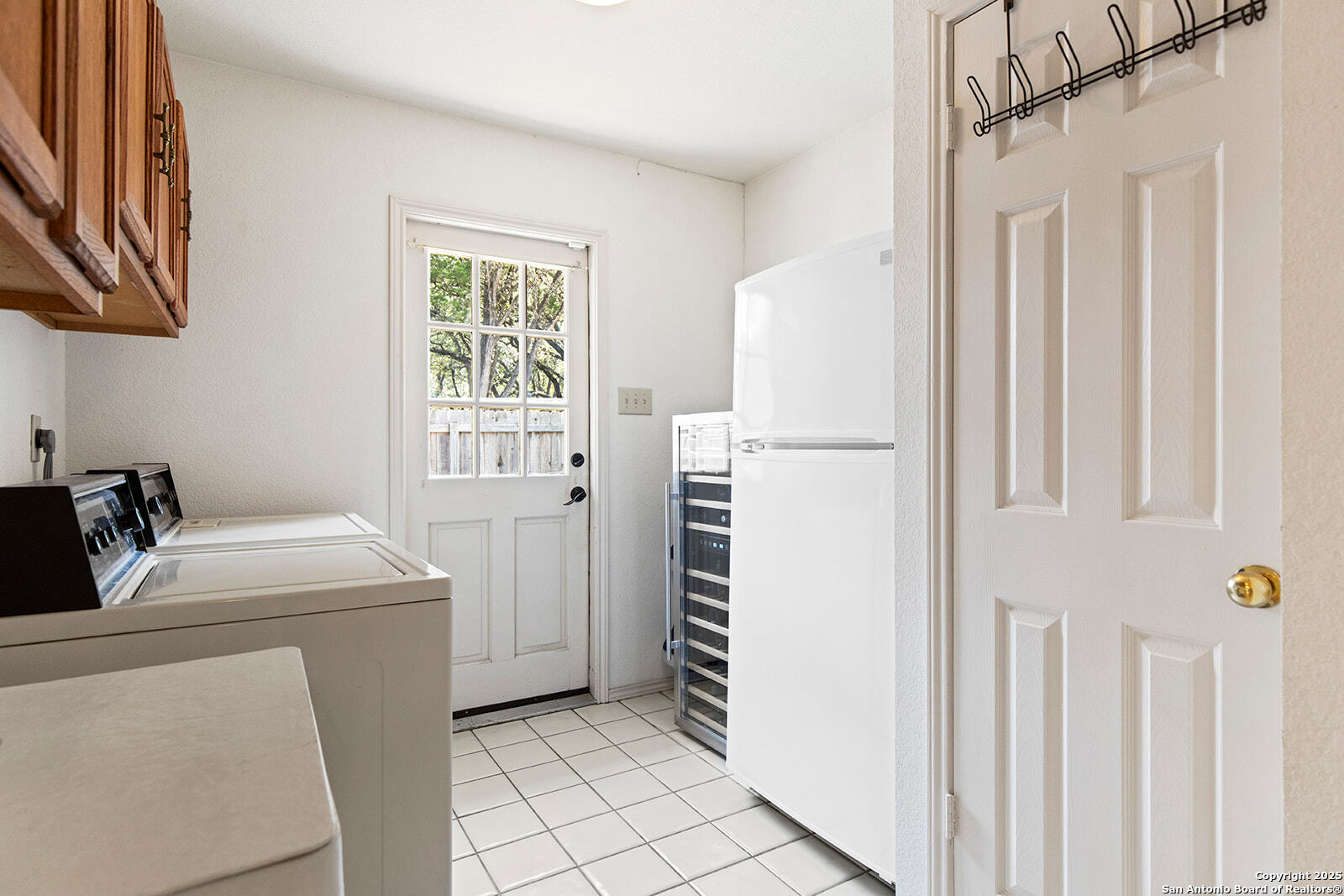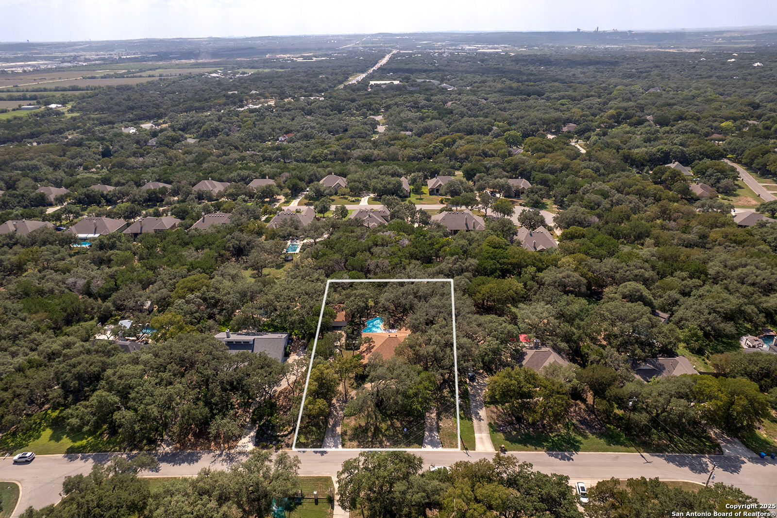 Enjoy country-style living with an easy reach to shopping and all the city conveniences offered by San Antonio and New Braunfels. The community is filled with large, tree-studded lots that provide a calm and relaxed environment. The home is very well maintained with an inviting oversized living room accented by a wood-burning fireplace. There is a wet-bar area for entertaining situated between the living room, enclosed back porch and the primary lounge area. There is a private office/4th bedroom with French doors and built-ins adjacent to the living area. The custom book cases add a library feel to the space but also remains entirely appropriate as an add'l bedroom. A spacious primary bath offers double vanities, jetted tub, shower and large walk-in closet. A large sitting area completes the primary suite. Outside has a covered patio, a NEWLY resurfaced in-ground pool for you to enjoy in a truly park-like setting. The roof was installed in 2022. The oversized detached garage has large storage areas plus a partially floored attic. The home also has a high-end water softener system in place. This property has a pre-paid home warranty that will be transferred to the new owner upon closing and funding THAT IS IN PLACE UNTIL OCTOBER 2029!!!!! NO WORRIES!
