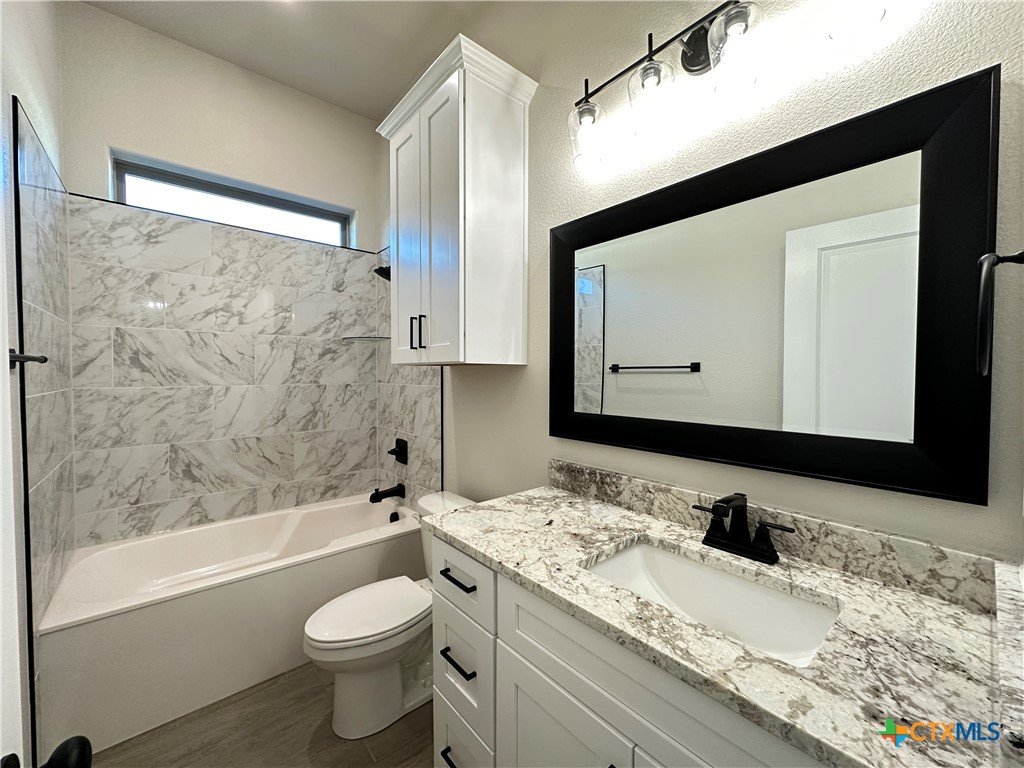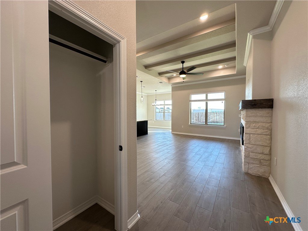 Welcome to the Bandera Plan – a stylish 3-bedroom, 2-bath home in Mesa Ridge, a popular West Temple neighborhood zoned to highly regarded Belton ISD and just minutes from beautiful Lake Belton. This thoughtfully designed home features an open-concept layout with beamed ceilings, an electric fireplace, and a chef’s kitchen with granite countertops, soft-close cabinetry, and a walk-in pantry. The spacious master suite offers a spa-like bathroom and large walk-in closet, while crown molding, wood-look tile, ceiling fans, and spray foam insulation add comfort and efficiency. Outside, enjoy a landscaped yard with sprinklers. Conveniently located near schools, shopping, dining, and Hwy 317—this home blends luxury, comfort, and an unbeatable location.