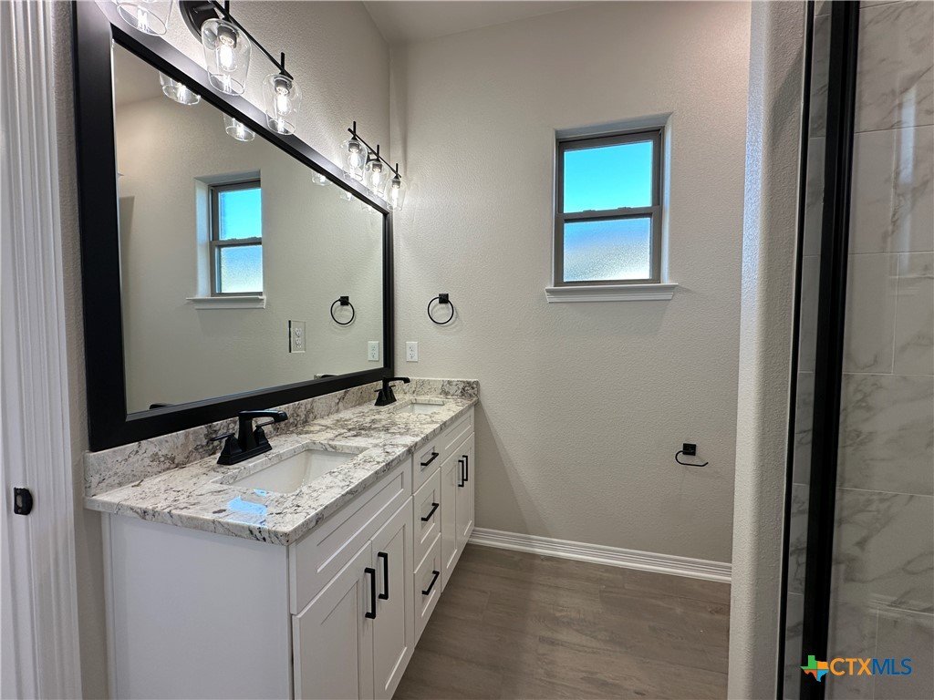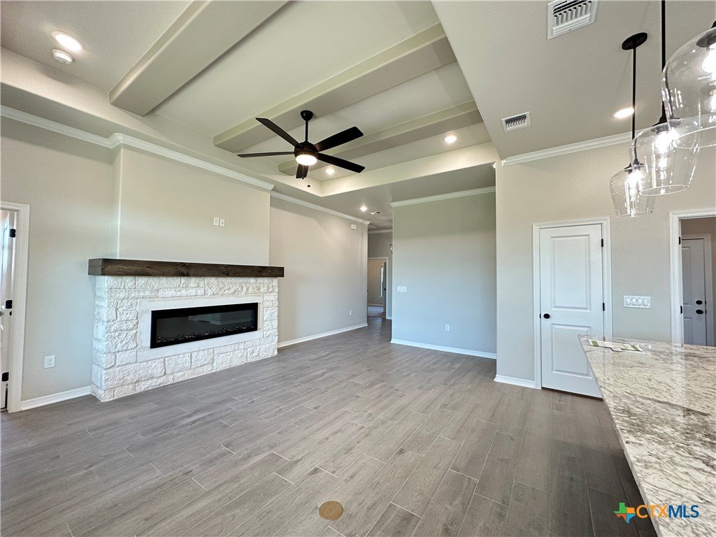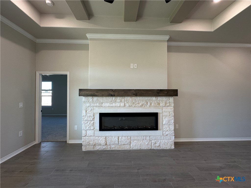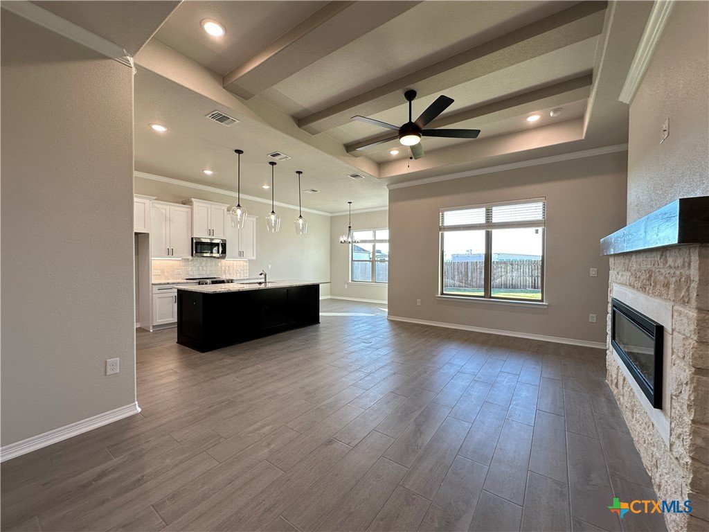 Welcome to the Bandera Plan – a stylish 3-bedroom, 2-bath home in Mesa Ridge, a popular West Temple neighborhood zoned to highly regarded Belton ISD and just minutes from beautiful Lake Belton. This thoughtfully designed home features an open-concept layout with beamed ceilings, an electric fireplace, and a chef’s kitchen with granite countertops, soft-close cabinetry, and a walk-in pantry. The spacious master suite offers a spa-like bathroom and large walk-in closet, while crown molding, wood-look tile, ceiling fans, and spray foam insulation add comfort and efficiency. Outside, enjoy a landscaped yard with sprinklers. Conveniently located near schools, shopping, dining, and Hwy 317—this home blends luxury, comfort, and an unbeatable location.