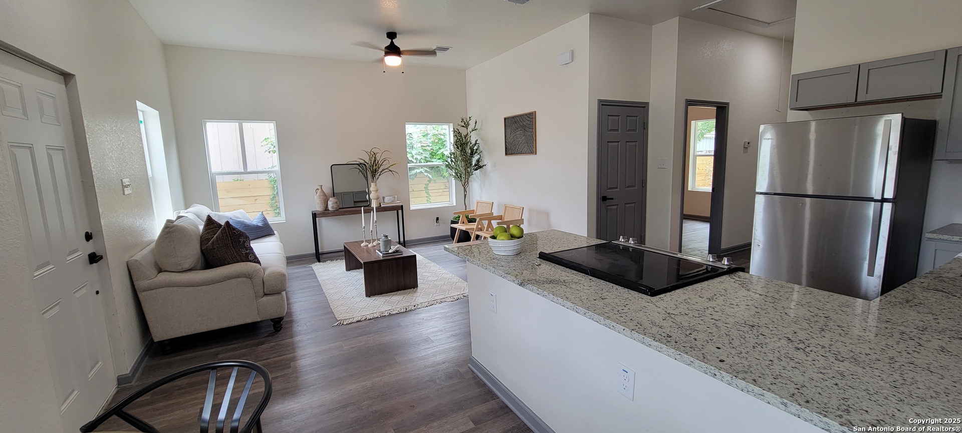 Welcome to your new home in the rapidly developing westside of San Antonio, just minutes away from downtown, Elmendorf Lake, and Our Lady of the Lake University. This stunning new construction property offers an array of modern amenities, a prime location, and spacious living spaces. The stainless steel appliances are included as well as the modern, black finishes. This property does not disappoint!