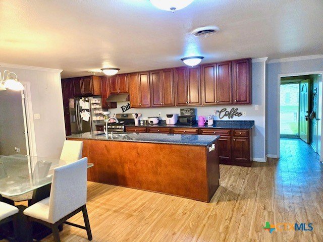 Located off of Sam Houston Drive, this 3/2 home features a chef's kitchen and large entertaining spaces. The front living room could easily be a home office. A split floor plan offers privacy between the master suite and the secondary bedrooms. A large family room at the back of the home opens into the dining area and kitchen. The home is nestled on .17 acre at the rear of this quiet family neighborhood. A covered patio off of the family room offers access to the fenced backyard. The home is being sold "as is, where is" and is priced accordingly.