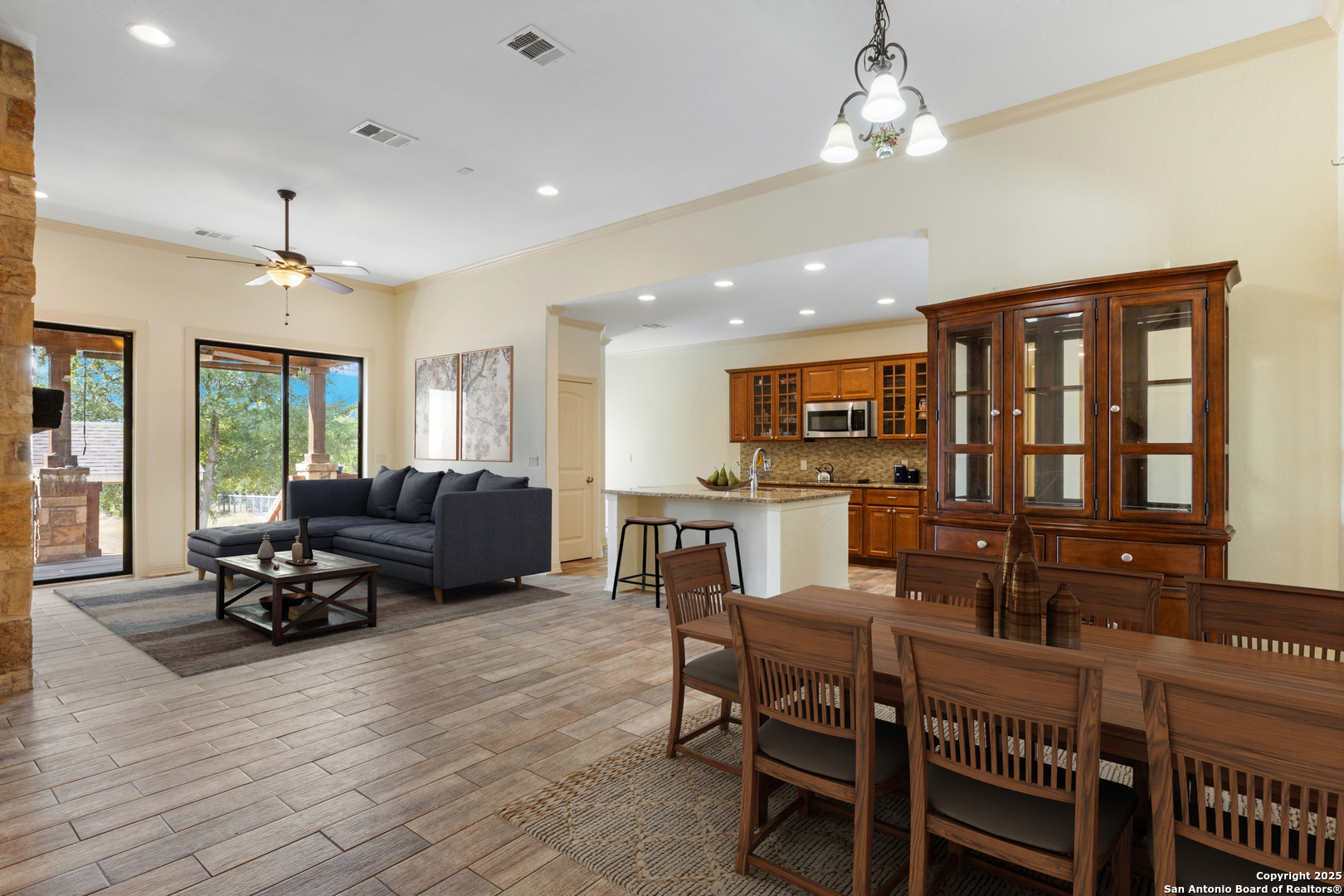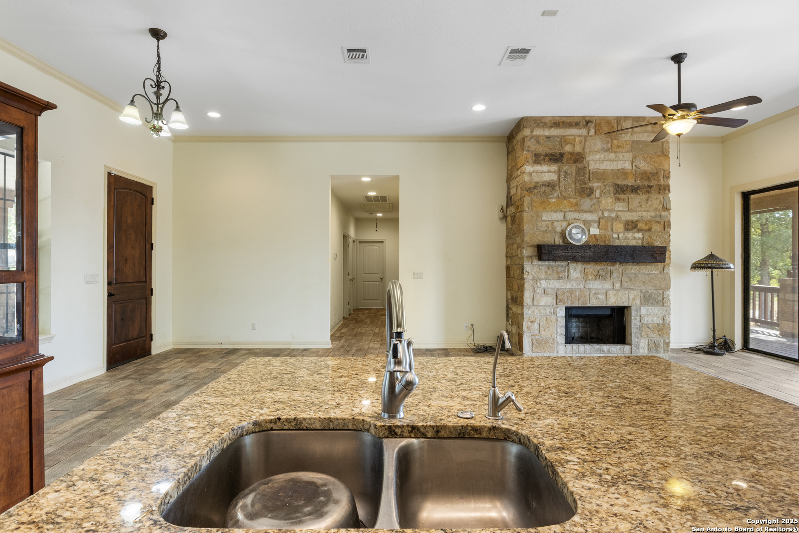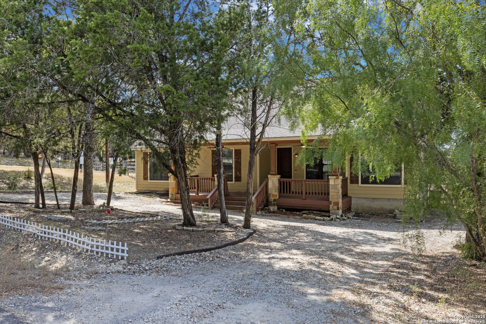Charming One story nestled among the trees on a peaceful 3/4-acre lot, this inviting 1,840 sq. ft. home offers the perfect balance of country tranquility and modern comfort. A spacious front porch welcomes you in, while the large back porch invites you to unwind and enjoy the natural beauty and visiting wildlife. The open-concept design connects the living, dining, and kitchen areas, making it ideal for everyday living or entertaining. The kitchen features granite countertops, stainless steel appliances, and plenty of workspace. Generously sized bedrooms and abundant natural light add to the home's comfortable feel. Conveniently located next to the community's amenity center, this property combines privacy and convenience in one beautiful package. Whether you're looking for a full-time residence, weekend getaway, or place to downsize, this Canyon Lake retreat fits the bill perfectly.