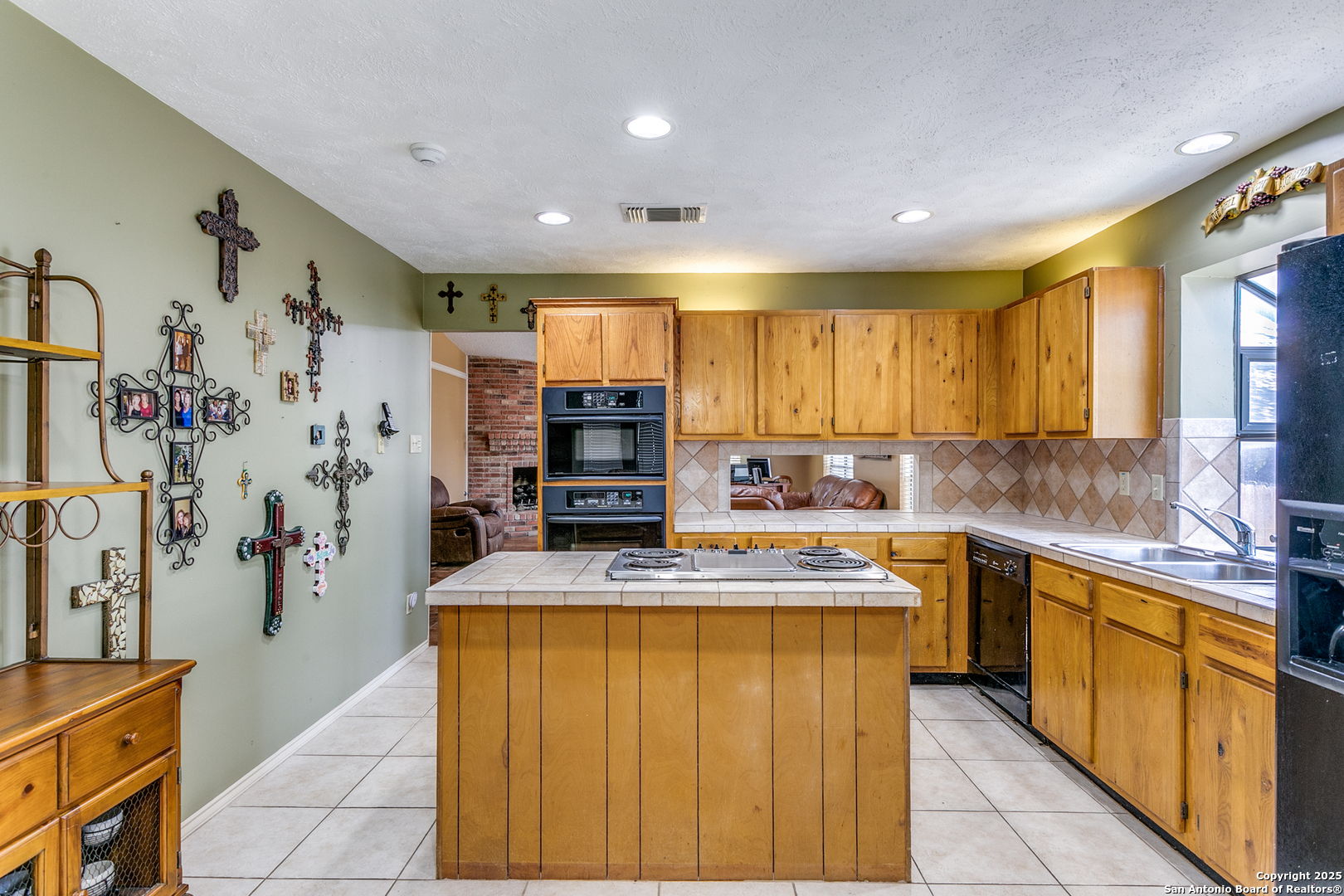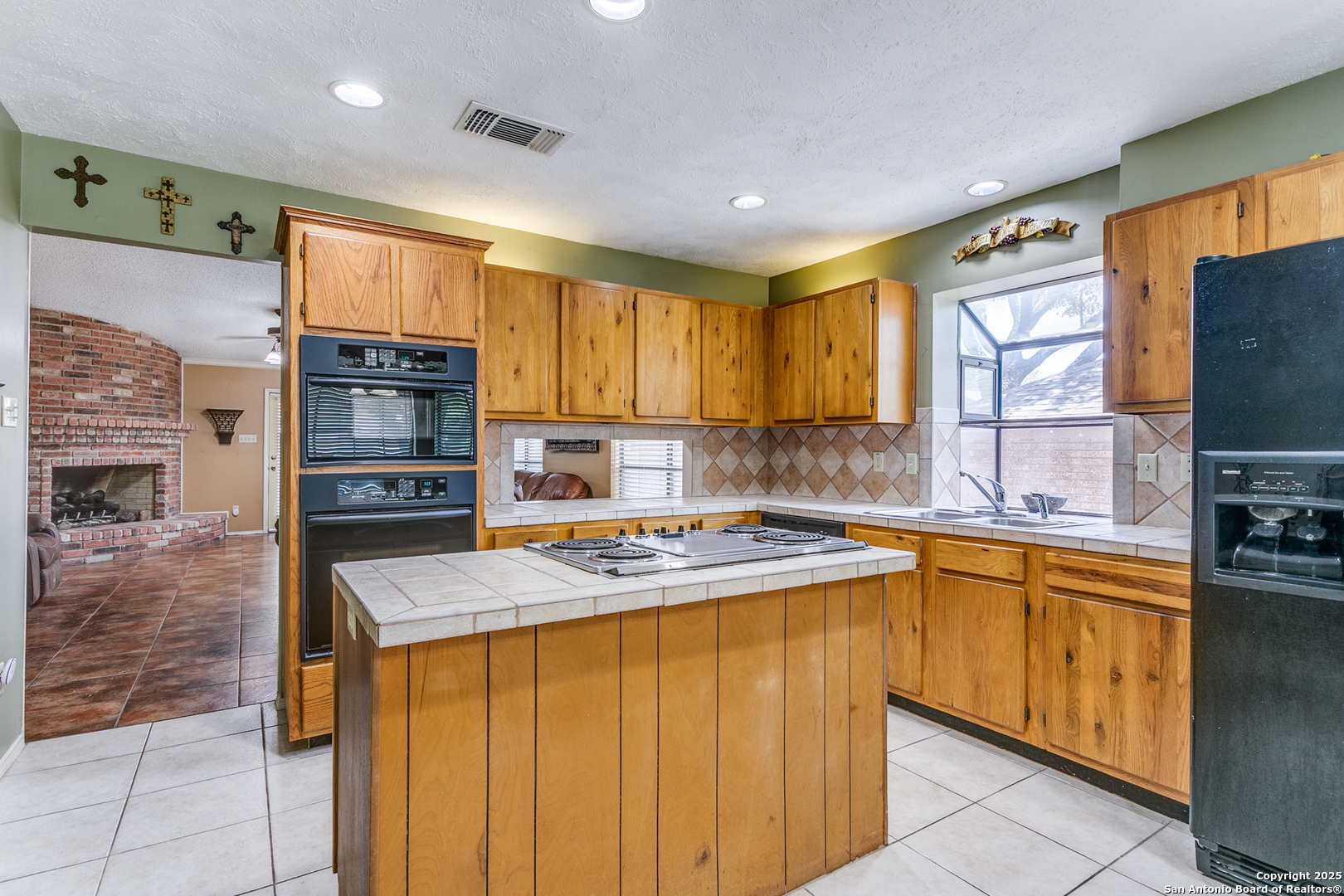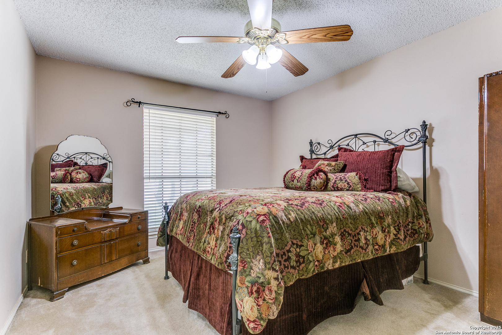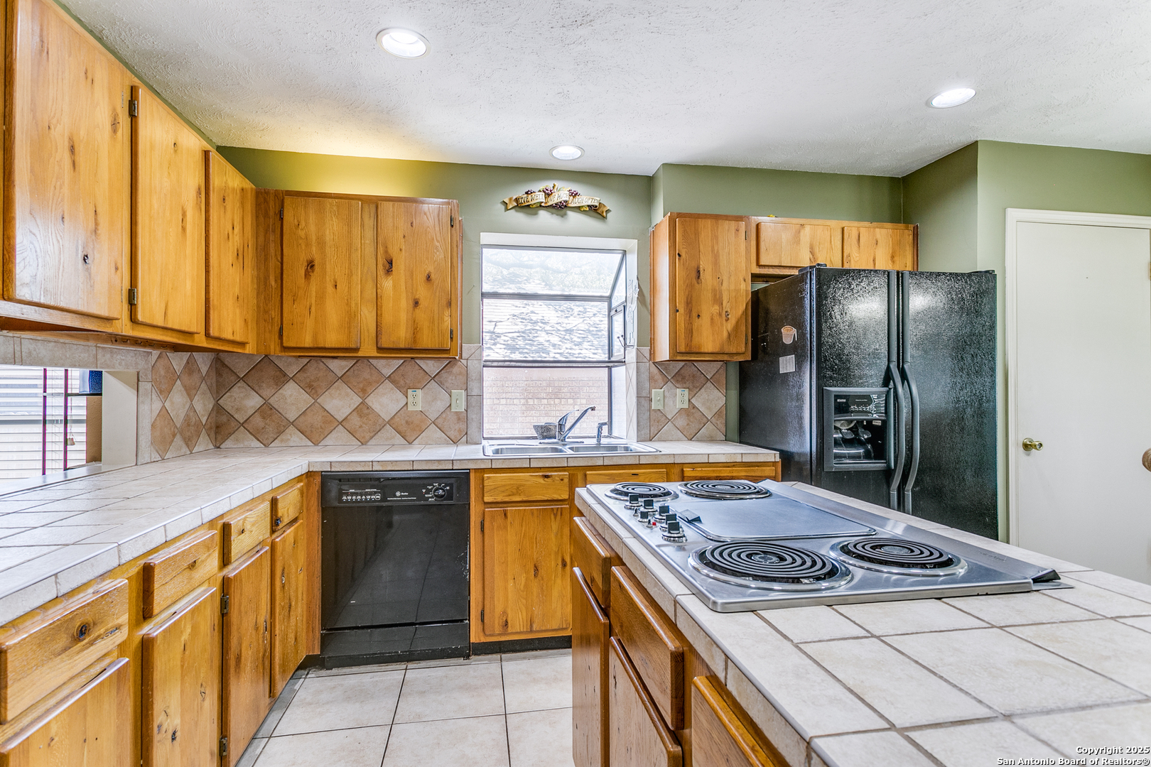 Well maintained home in desirable neighborhood - close to Wurzbach Pkwy and 281, in between 1604 and 410. 3 bedrooms, 2 full baths. New hot water heater, tile flooring throughout with carpet in bedrooms. Primary bath has double sinks and a huge area to get ready for any event! Walk-in closets in primary and secondary bedrooms. Huge living area which has space for additional dining. Kitchen is very large with a large breakfast area. Island has cooktop. Double ovens - one convection and one regular electric. Tons of cabinet space and storage. Large pantry. Fridge, washer and dryer all convey with house. Large newer storage shed in the back yard. Lots of space for kids and puppies to run around in! Double detached garage with covered walkway to house.