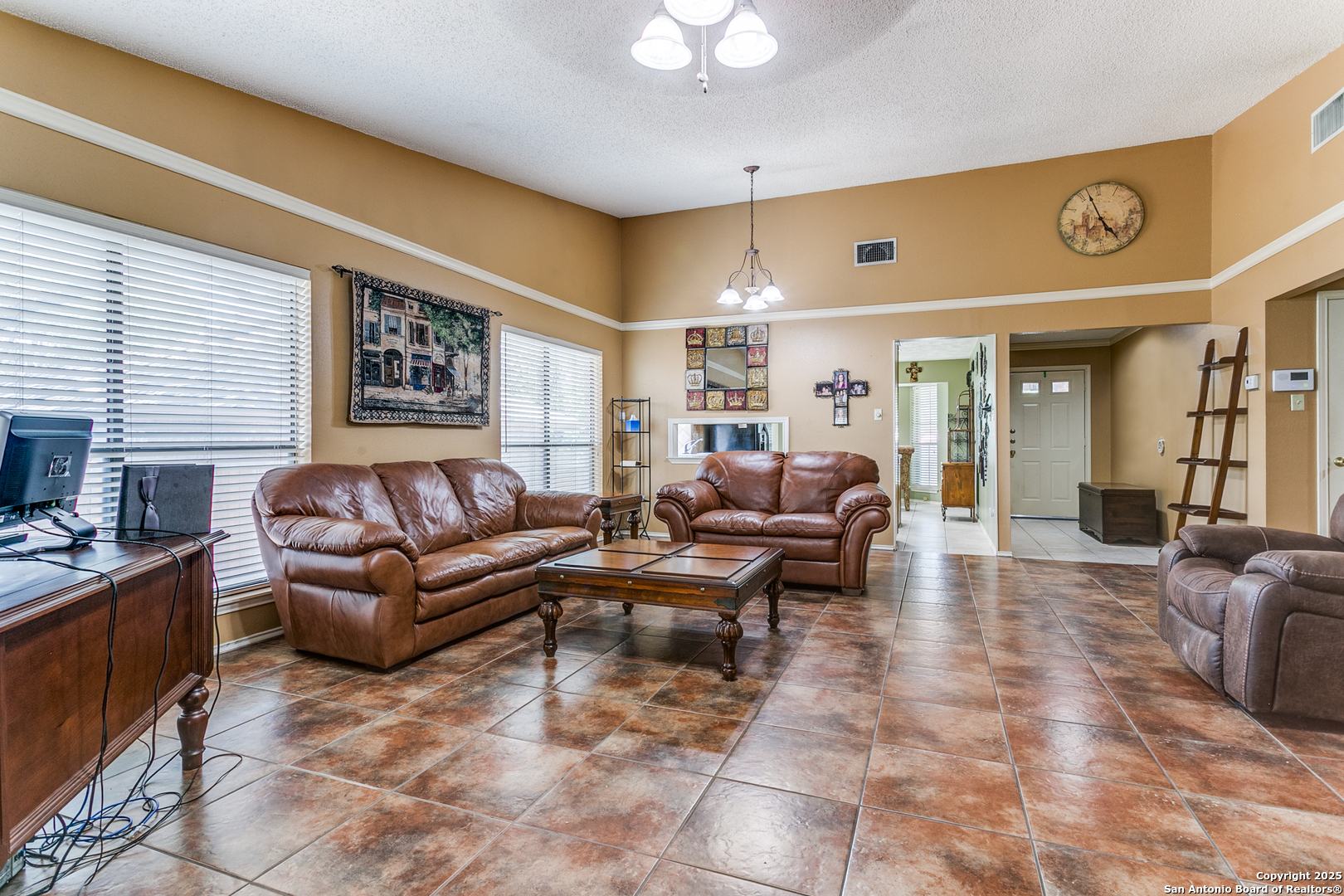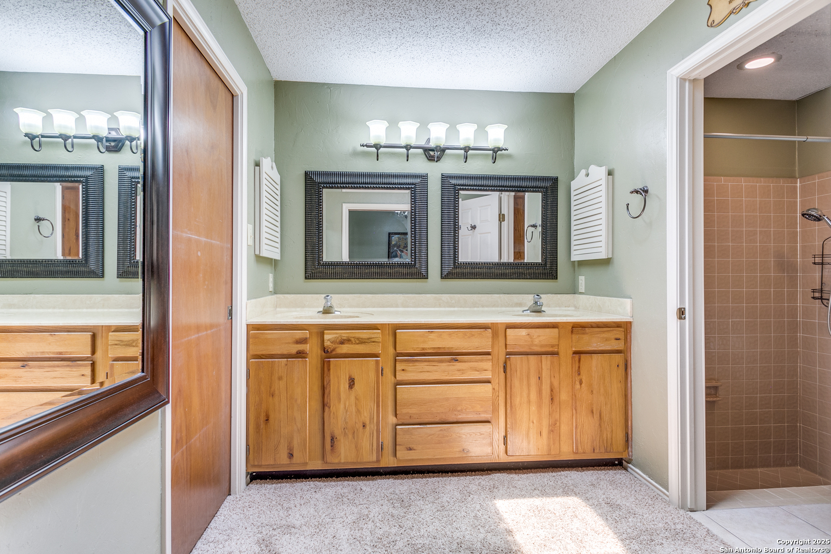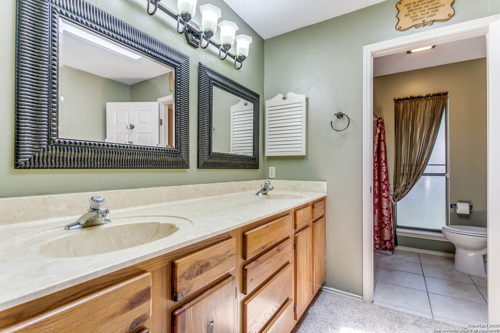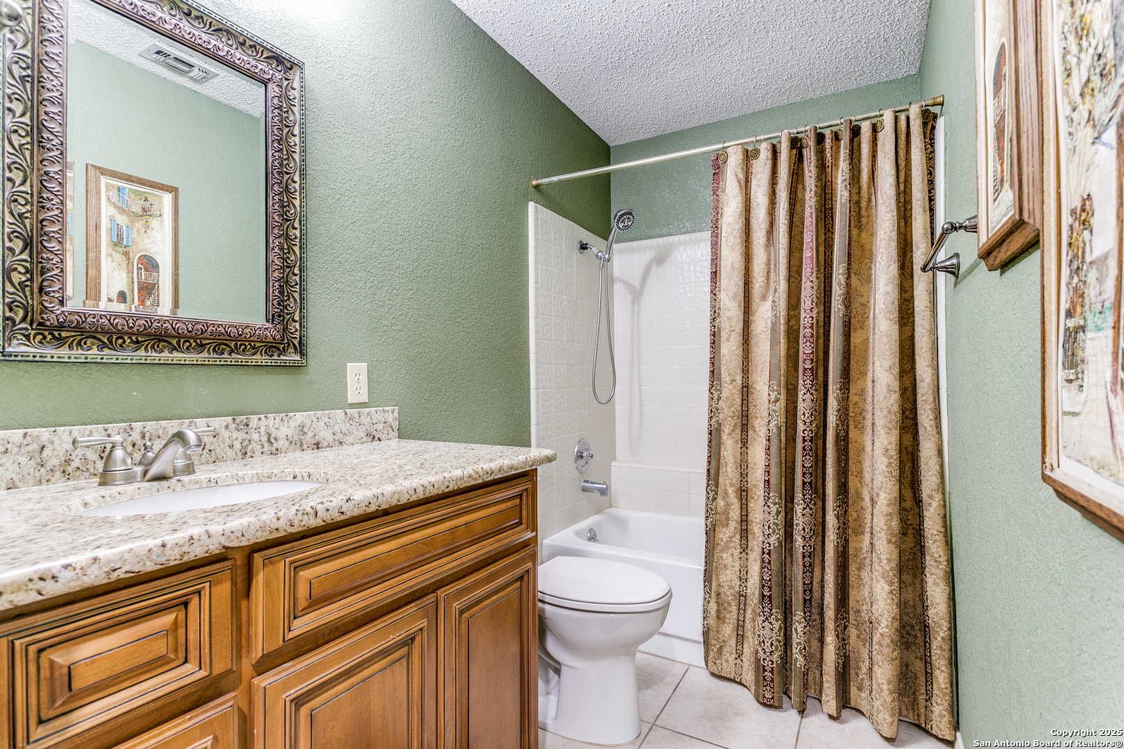 Well maintained home in desirable neighborhood - close to Wurzbach Pkwy and 281, in between 1604 and 410. 3 bedrooms, 2 full baths. New hot water heater, tile flooring throughout with carpet in bedrooms. Primary bath has double sinks and a huge area to get ready for any event! Walk-in closets in primary and secondary bedrooms. Huge living area which has space for additional dining. Kitchen is very large with a large breakfast area. Island has cooktop. Double ovens - one convection and one regular electric. Tons of cabinet space and storage. Large pantry. Fridge, washer and dryer all convey with house. Large newer storage shed in the back yard. Lots of space for kids and puppies to run around in! Double detached garage with covered walkway to house.